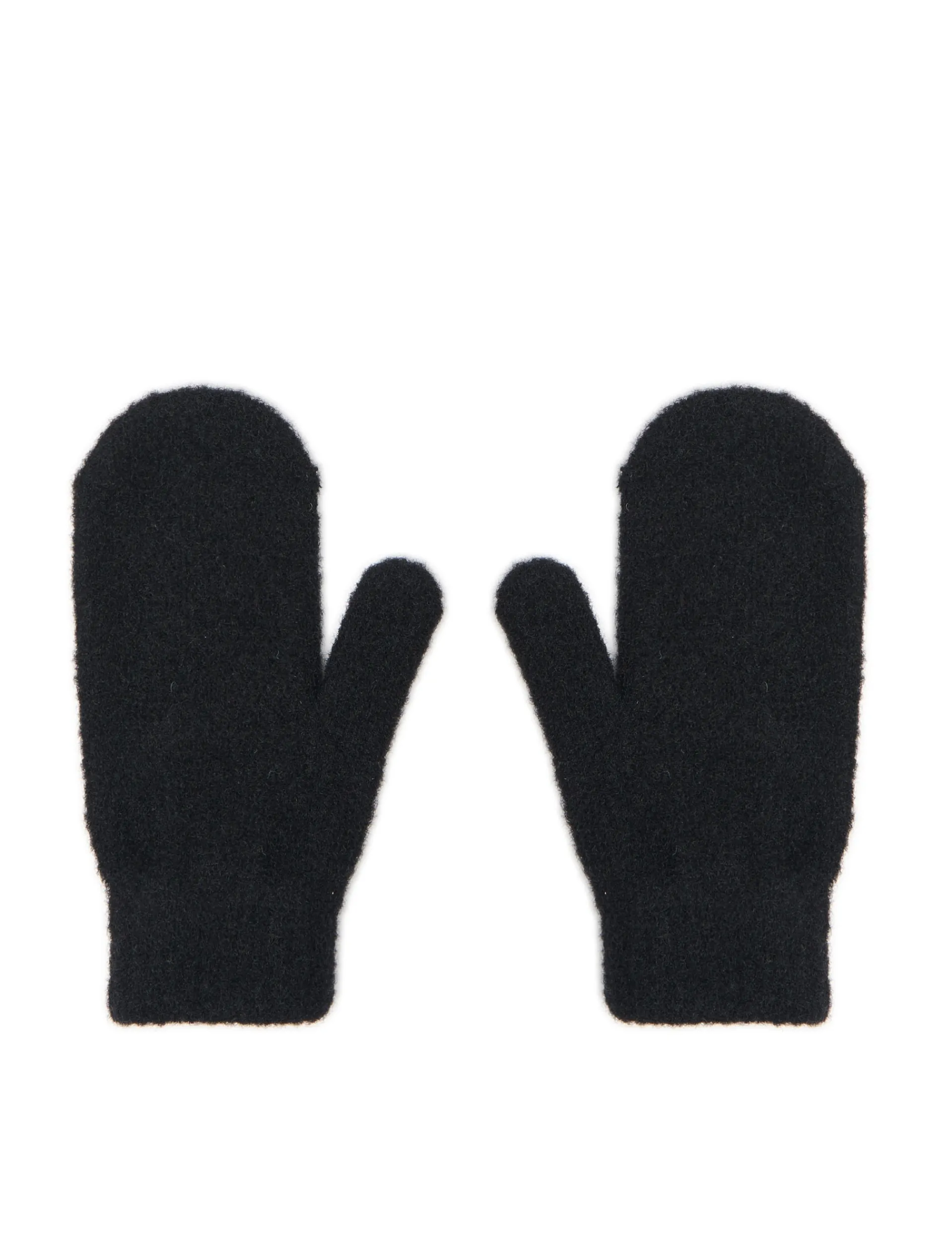 Czarne rękawiczki damskie z jednym palcem, uszyte z puszystej, miękkiej w dotyku dzianiny. Dostępne w innej wersji kolorystycznej.