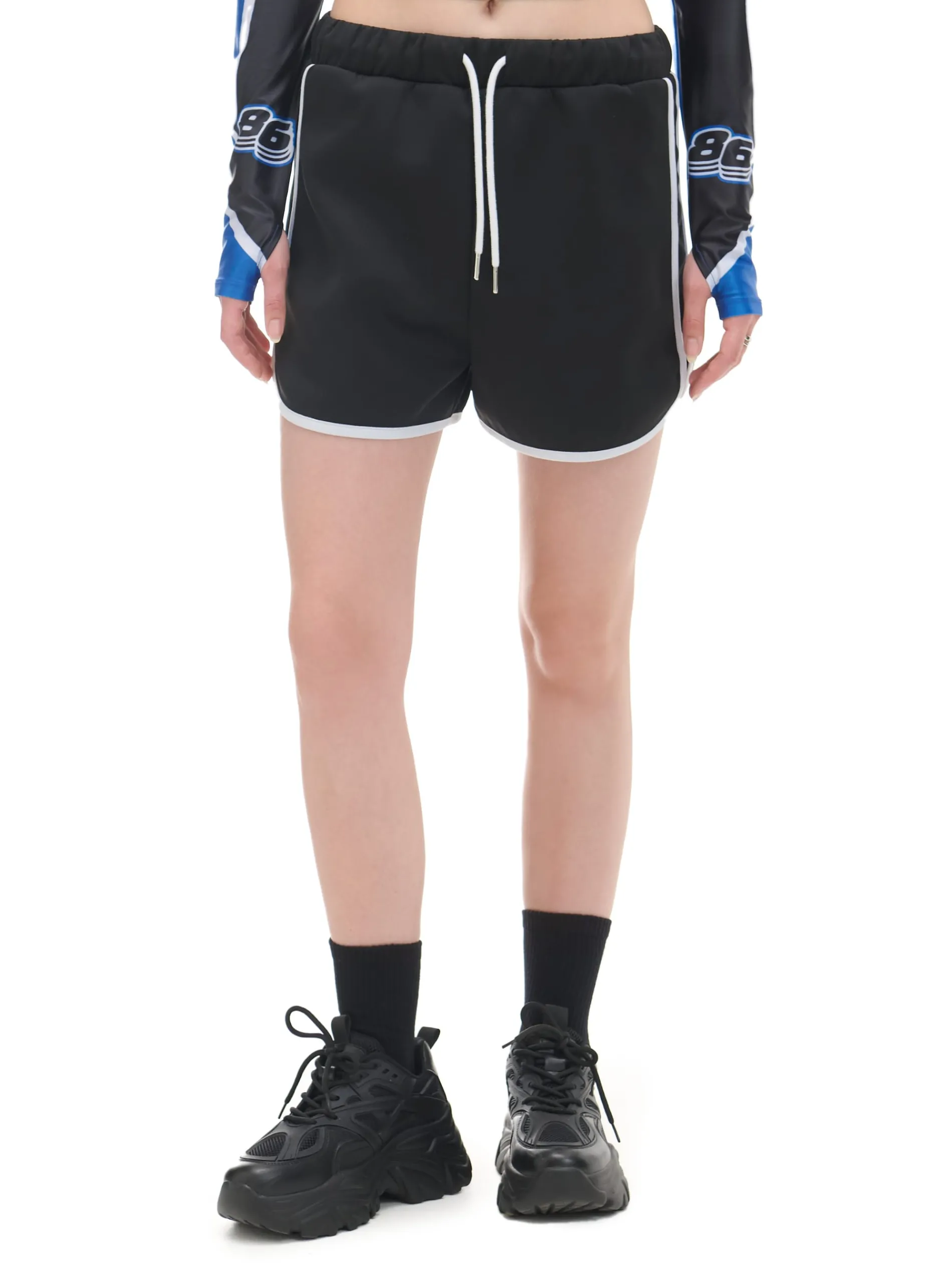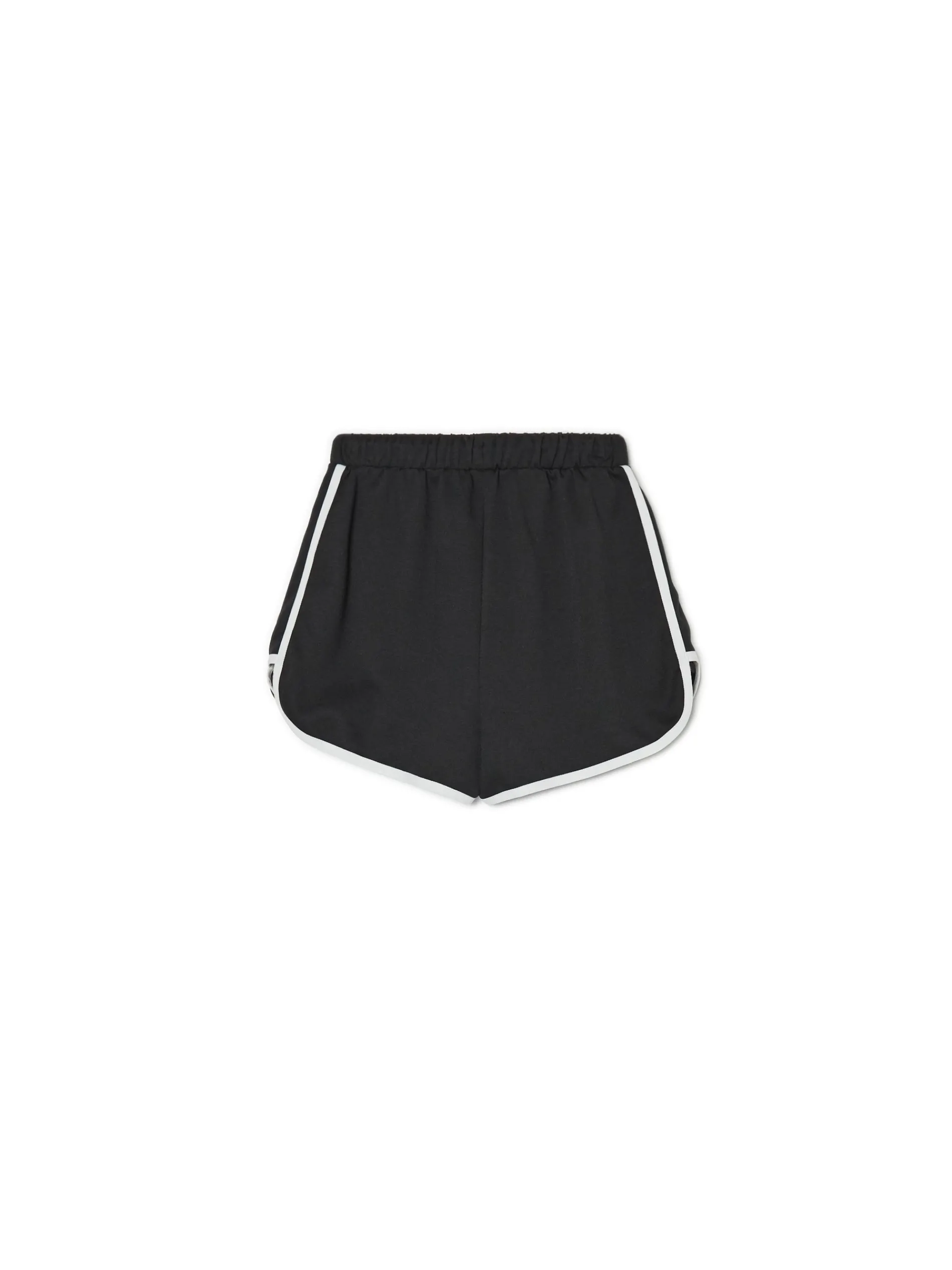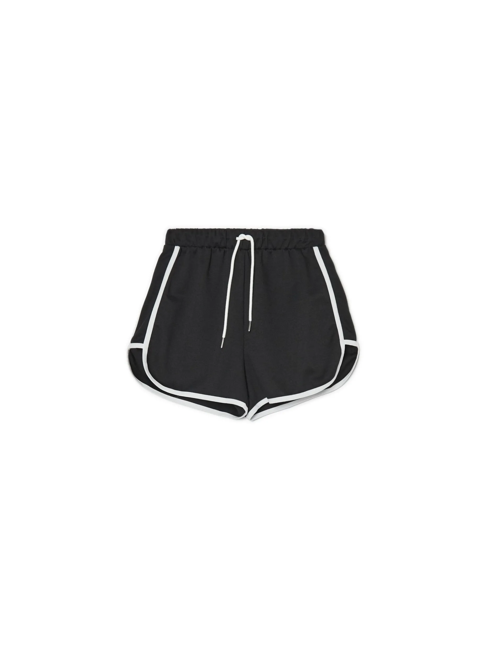 Dresowe szorty damskie, uszyte z dzianiny zawierającej bawełnę. W pasie gumka i sznurek do regulacji, po bokach ozdobne lampasy. Dostępny inny wariant kolorystyczny. Wzrost modelki: 172 cm
