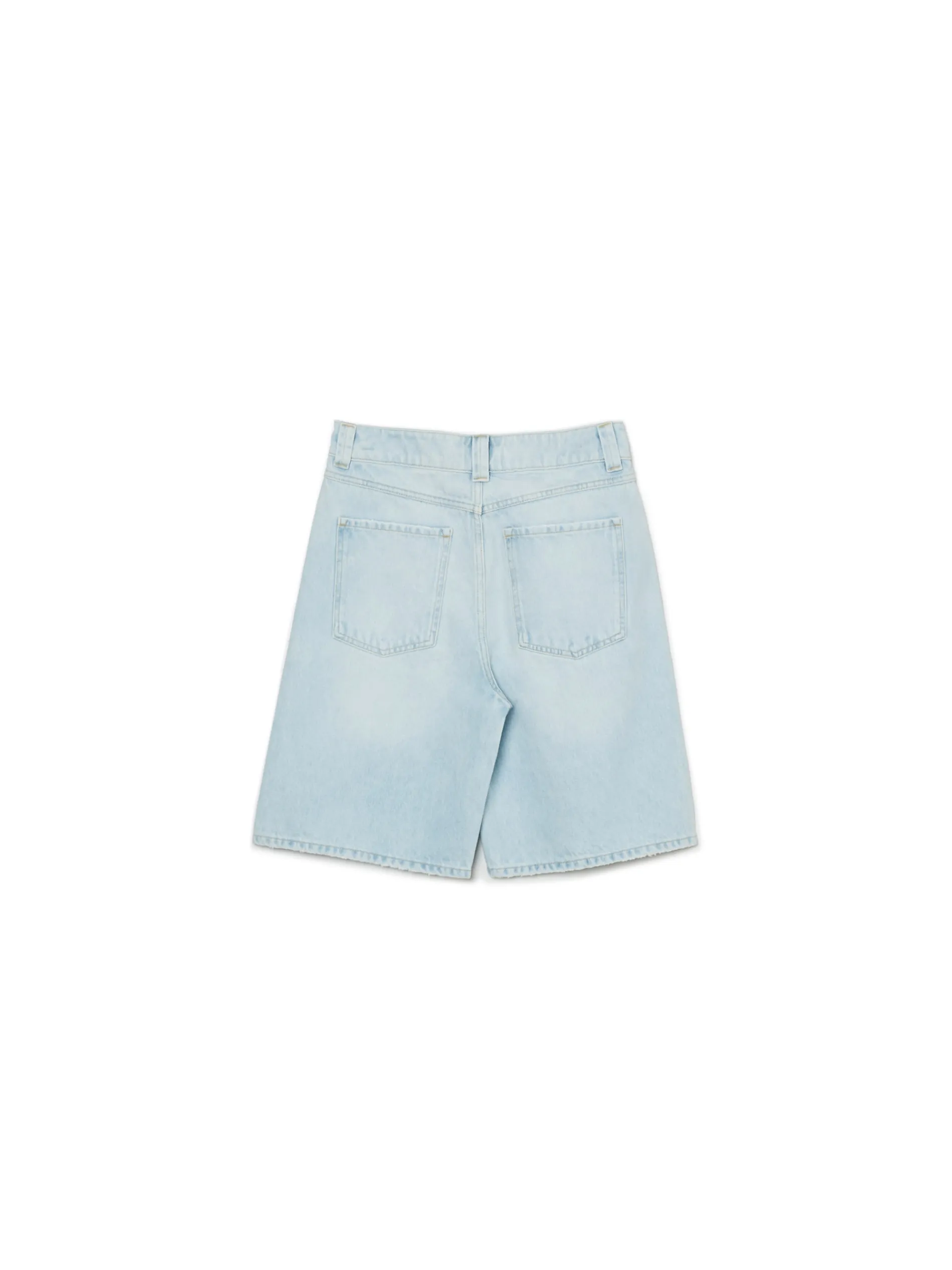 Damskie bermudy w jasnym odcieniu jeansowego materiału idealne na letnie dni. Dla balansu denim jest niezbędny… check it! 100% bawełny w składzie jeansowe bermudy o kroju baggy zapinane na zamek i guzik dwie pary kieszeni z przodu i z tyłu modny efekt sprania Wzrost modelki: 172 cm