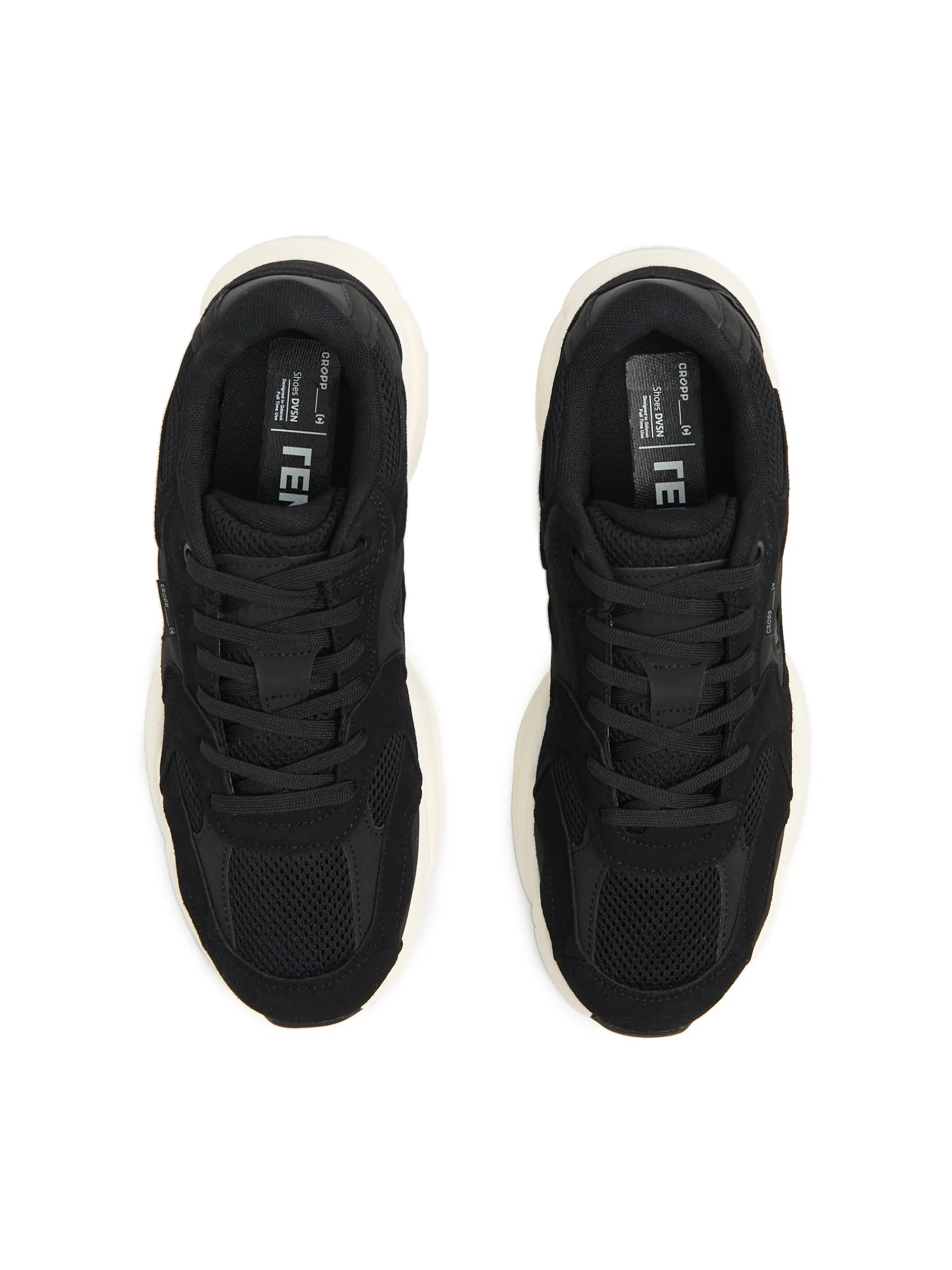 Męskie sportowe sneakersy na płaskiej, kontrastowej podeszwie. Elastyczna cholewka, płaskie sznurowadła i oddychająca siateczka zapewnią Ci komfort podczas każdej aktywności. Wypróbuj ten item! niskie sneakersy w sportowym stylu elastyczna cholewka z łączonych materiałów ozdobna siateczka typu mesh podeszwa wykonana z mieszanki phylonu i gumy termoplastycznej wiązane na płaskie, czarne sznurowadła naszywka z napisem Cropp