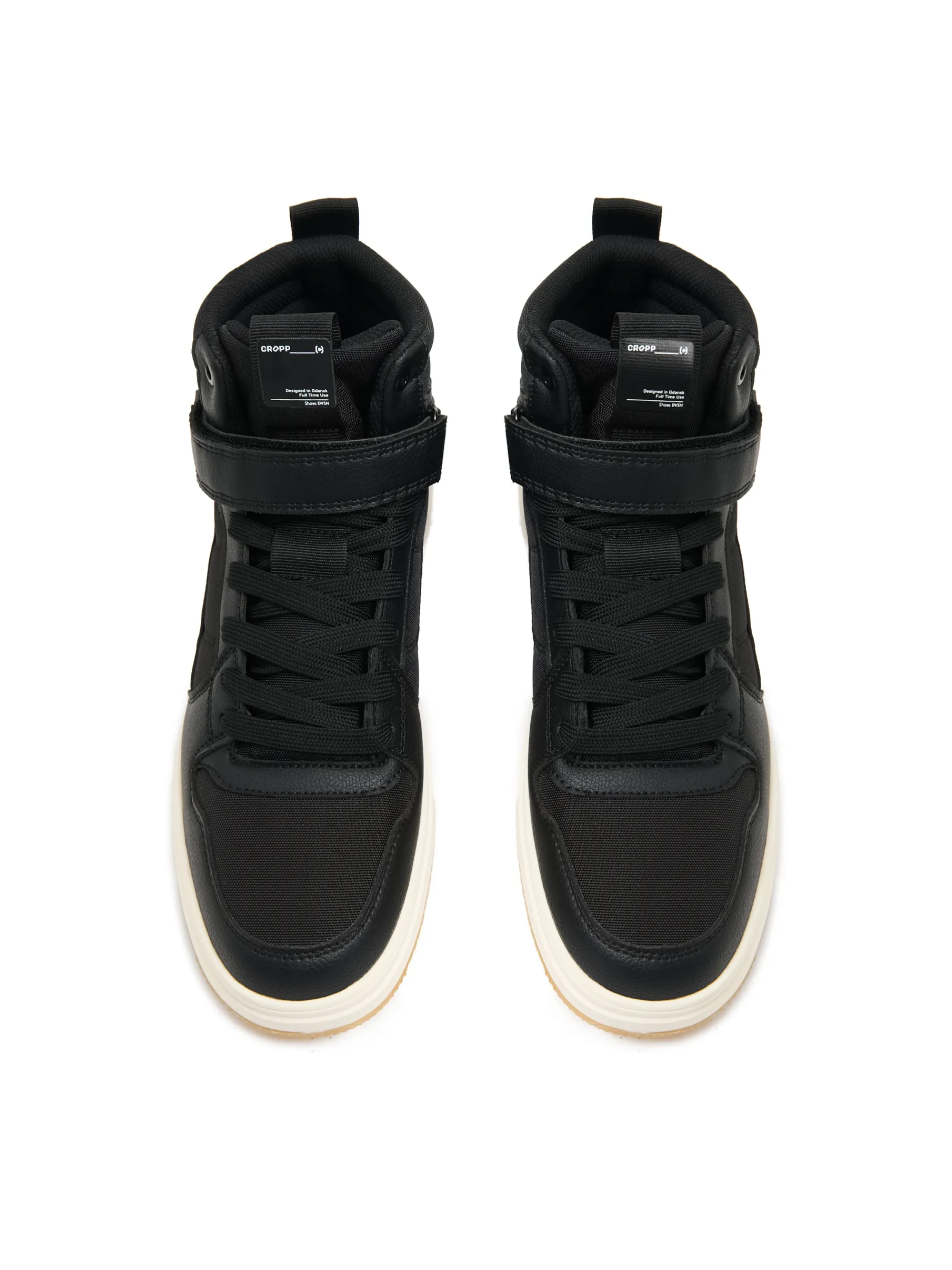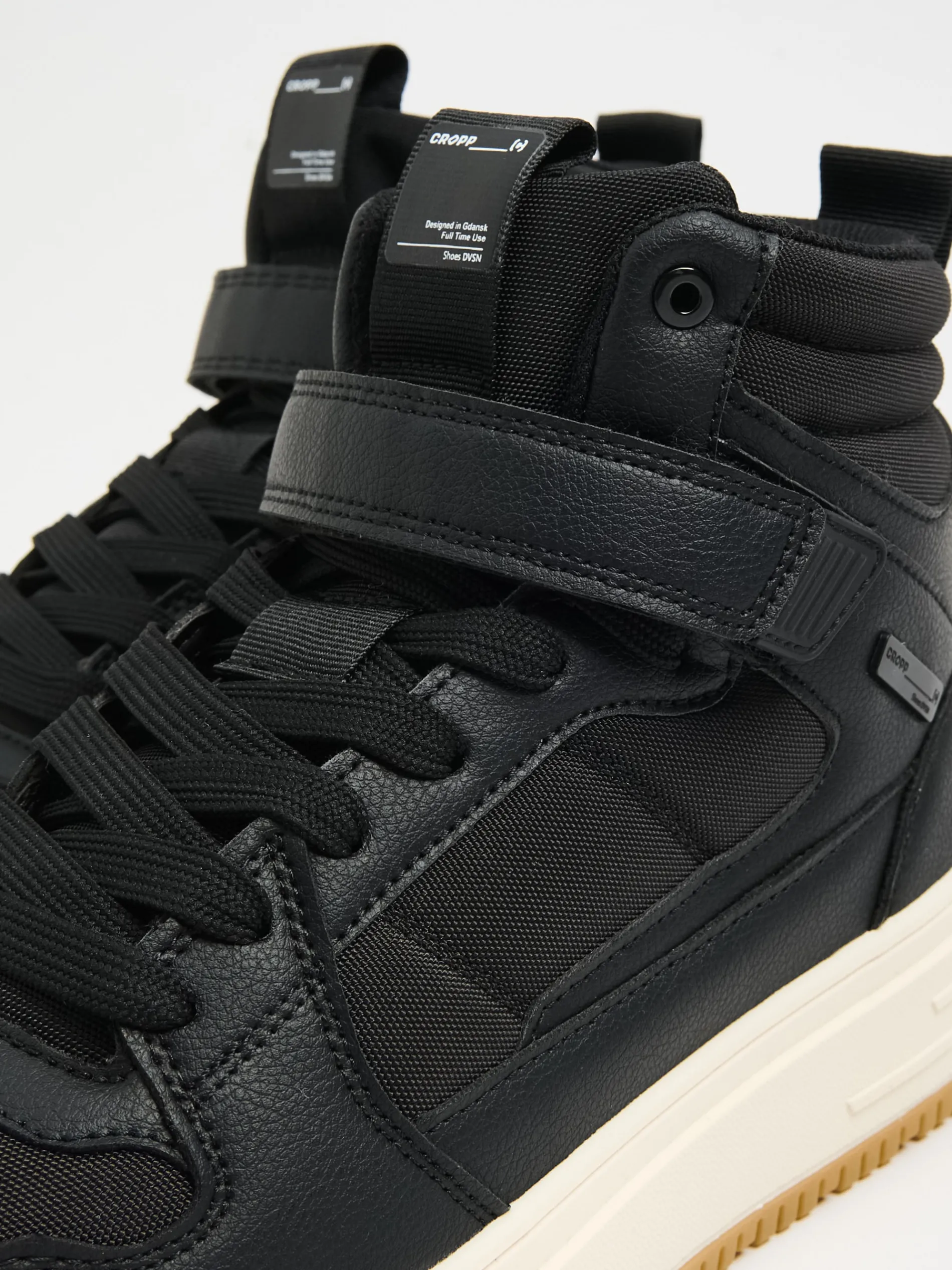 Męskie sneakersy casual cieszą się niesłabnącą popularnością wśród streetowych stylówek. Wysoka cholewka wykonana z łączonych materiałów i wytrzymała, solidna podeszwa zapewniają wygodę i komfort noszenia. Nowoczesny design w klasycznym wydaniu! cholewka ze wstawkami ze sztucznej skóry lekkie gąbkowanie wokół kostki sznurowanie i zapięcie na rzep wiązane na płaskie, czarne sznurowadła dwukolorowa podeszwa z termoplastycznej gumy dodatkowe uchwyty – ułatwiają zakładanie i zdejmowanie butów ozdobne przelotki przy kostce naszywka Cropp