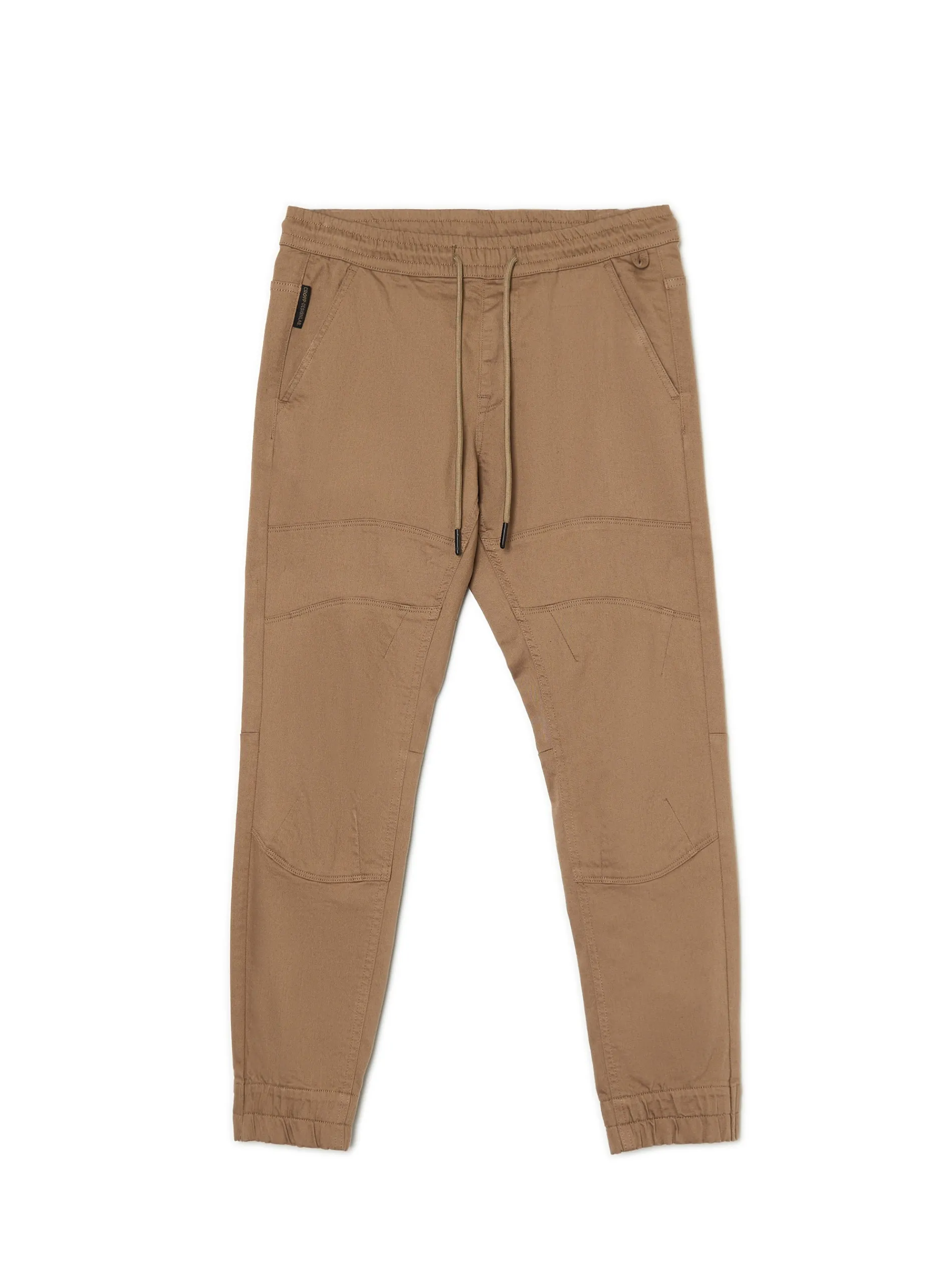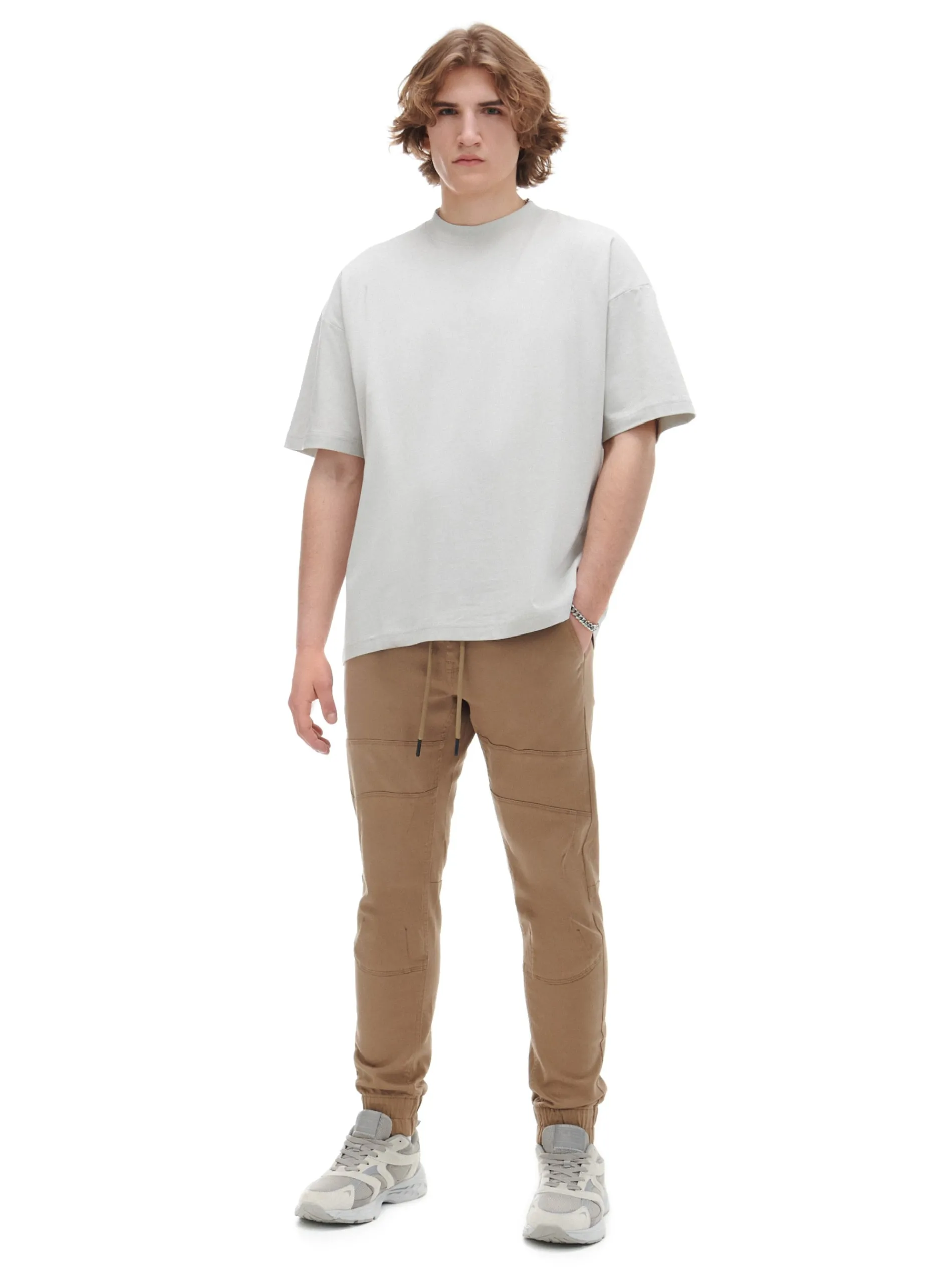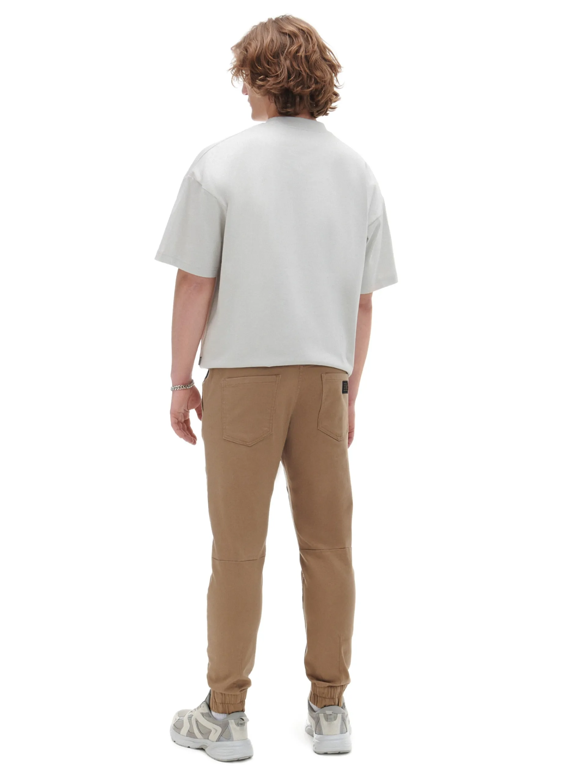Męskie spodnie o sportowym kroju typu jogger, uszyte z bawełnianej tkaniny z dodatkiem elastycznych włókien. Model dostępny w różnych kolorach. regularny stan w pasie elastyczna gumka i sznurek do regulacji nogawka zakończona ściągaczem z wszytą elastyczną gumką cztery kieszenie poziome przeszycia Wzrost modela: 184 cm