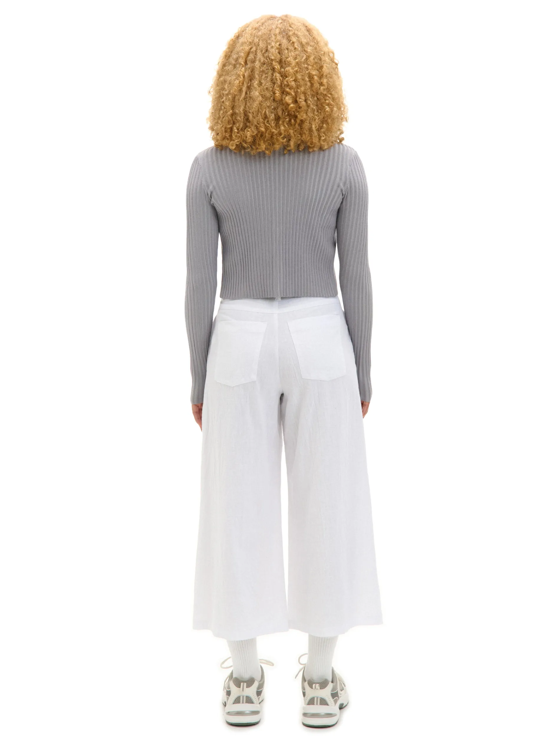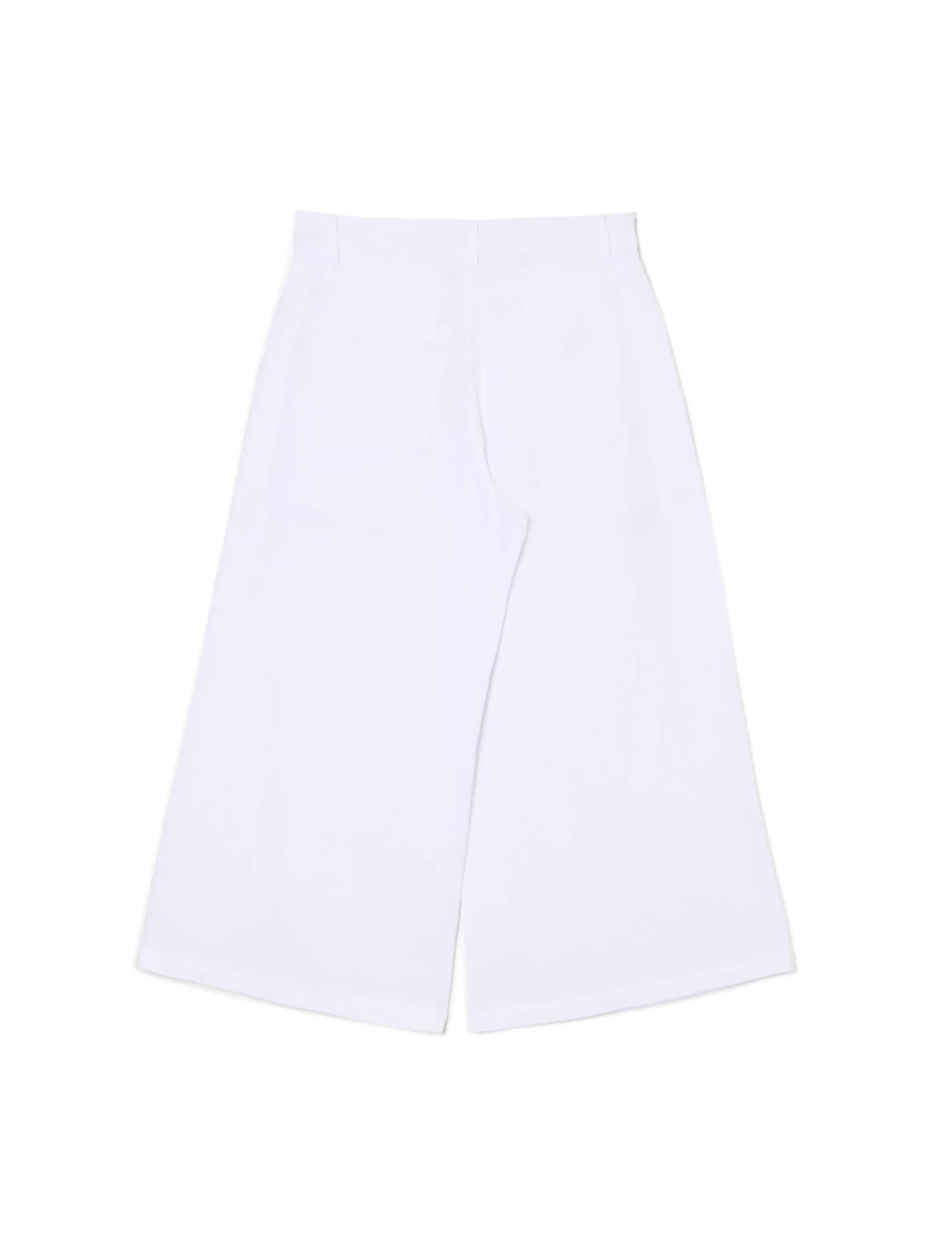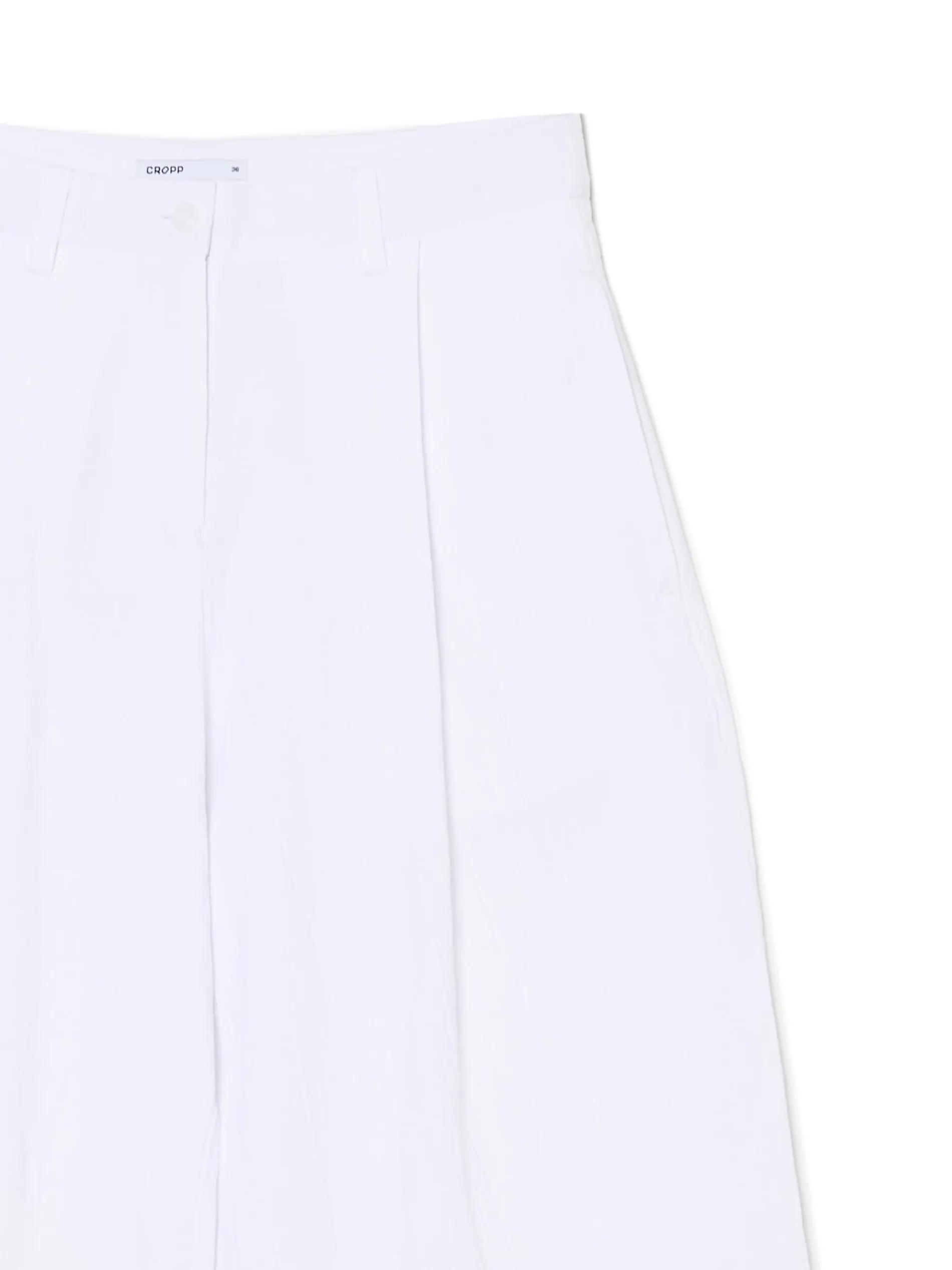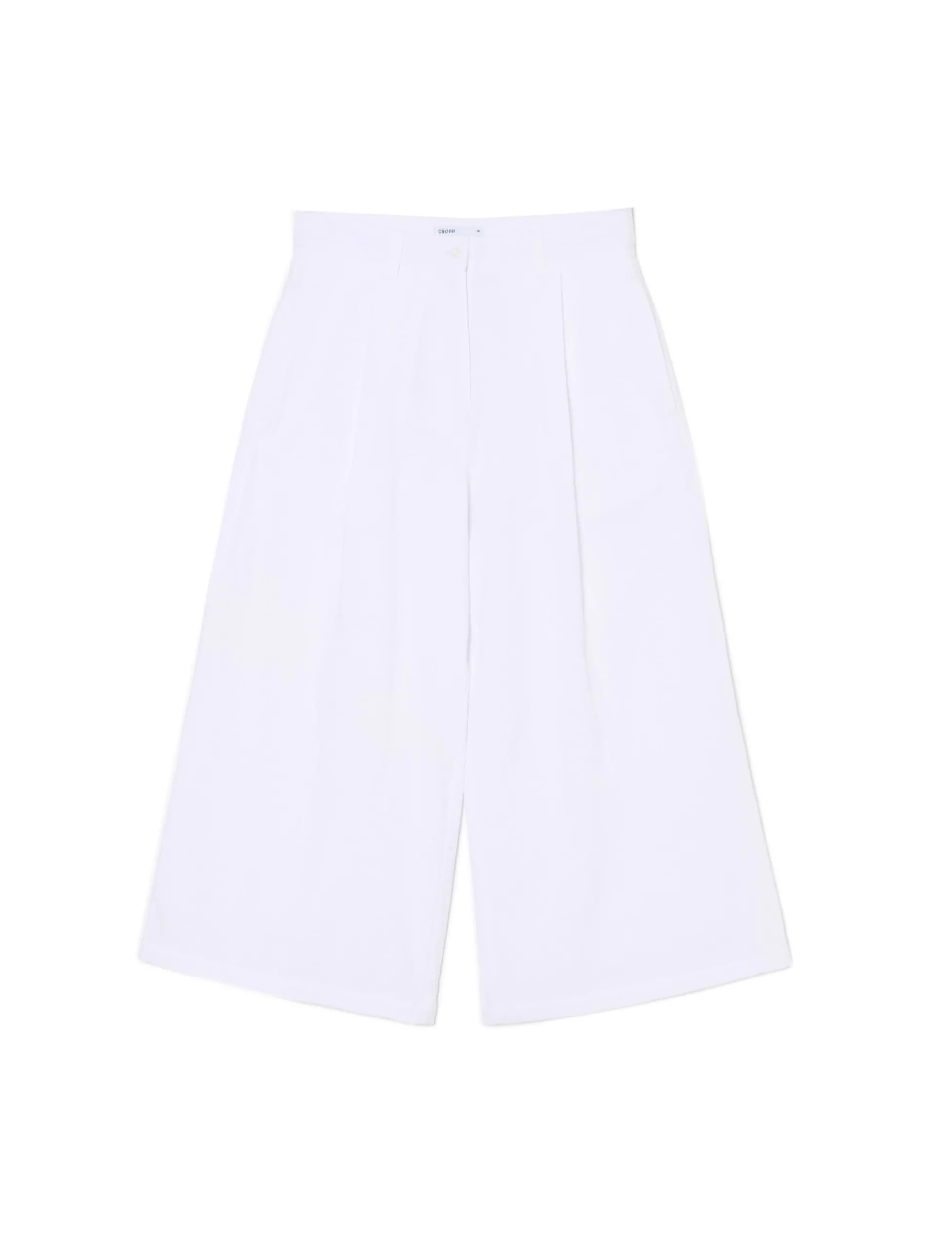 Tkaninowe damskie spodnie w kolorze białym, uszyte z bawełny. Kuloty są idealnym dodatkiem zarówno do eleganckich stylizacji, jak i casualowych. 100% bawełny spodnie typu kuloty zapięcie na zamek i guzik modelujące zakładki z przodu szerokie nogawki dwie kieszenie po bokach szlufki blisko siebie