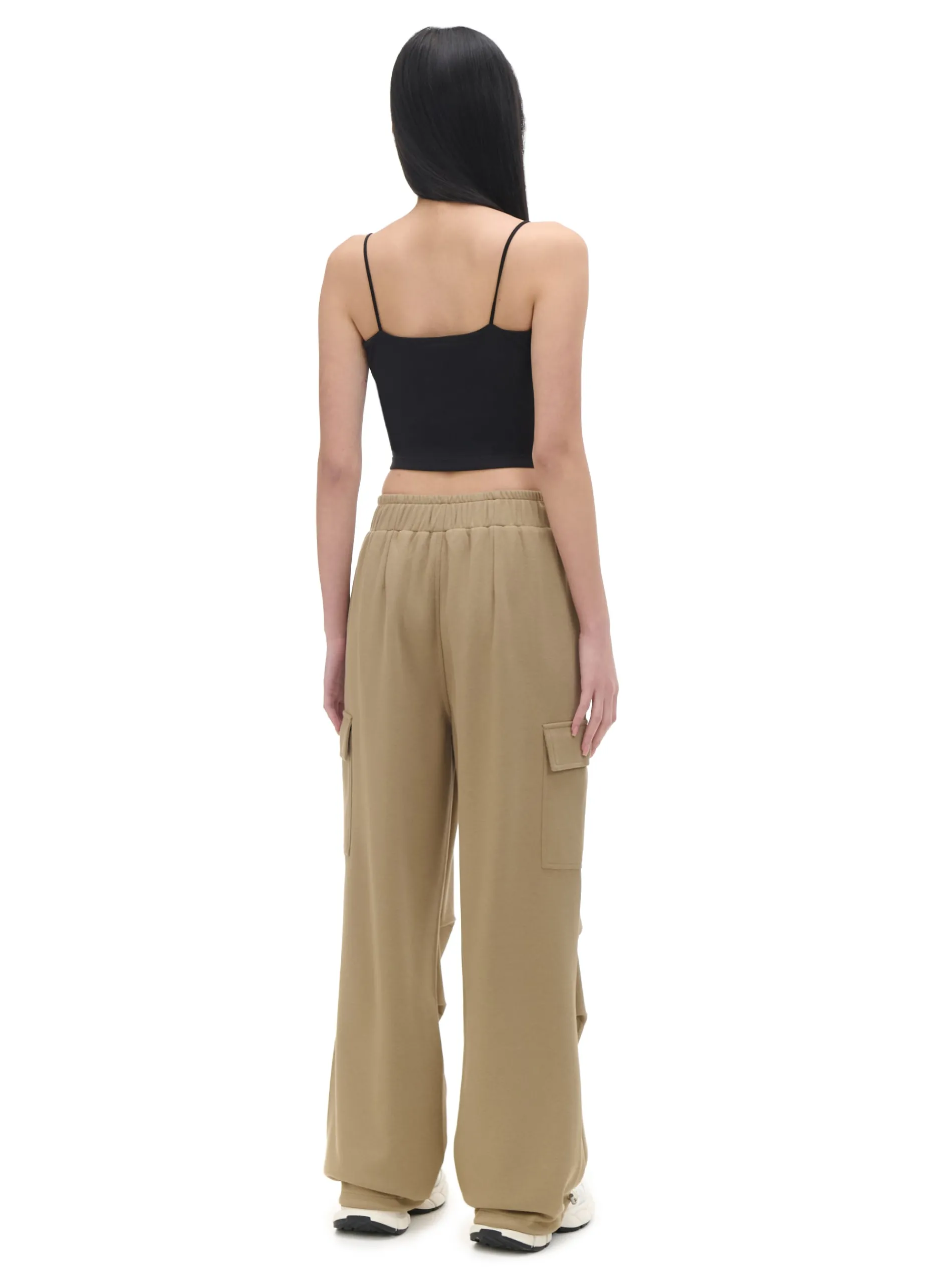 Te damskie spodnie typu cargo w letnim, bursztynowym kolorze wyróżnią Cię w tłumie. materiał z dużą zawartością bawełny luźny krój typu cargo ze ściągaczami uniwersalna gumka w pasie para klasycznych kieszeni i typu cargo na nogawkach ozdobna imitacja zapięcia zagięcia w wersji parachute na kolanach ozdobne taśmy przy kieszeniach Wzrost modelki: 168 cm