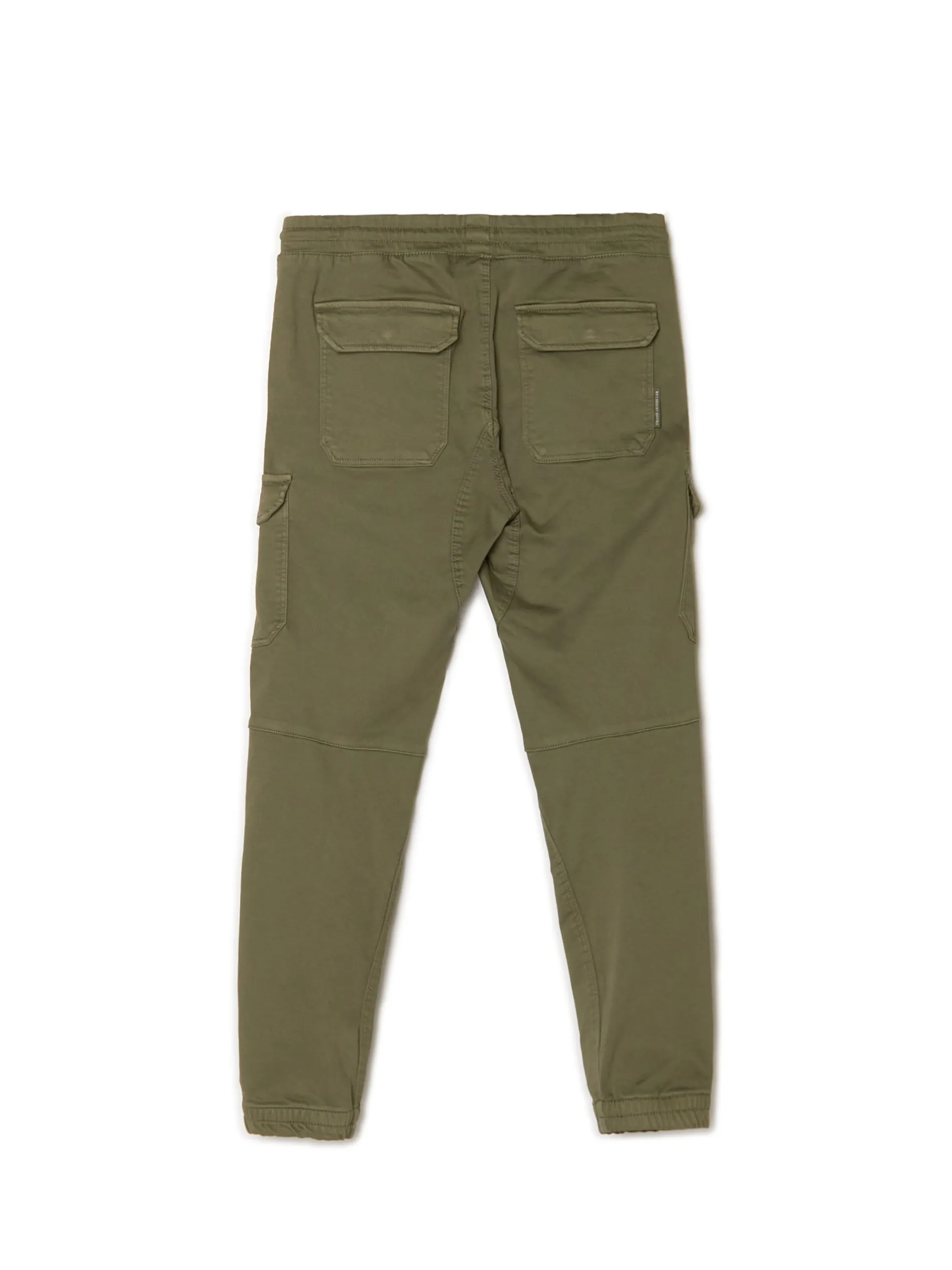 Spodnie męskie o kroju slim jogger, uszyte z tkaniny o wysokiej zawartości bawełny. w pasie gumka i sznurek do regulacji liczne kieszenie, w tym kieszenie typu cargo nogawka ze ściągaczem dostępne inne warianty kolorystyczne Model prezentuje produkt w rozmiarze M/L. Wzrost modela: 185 cm