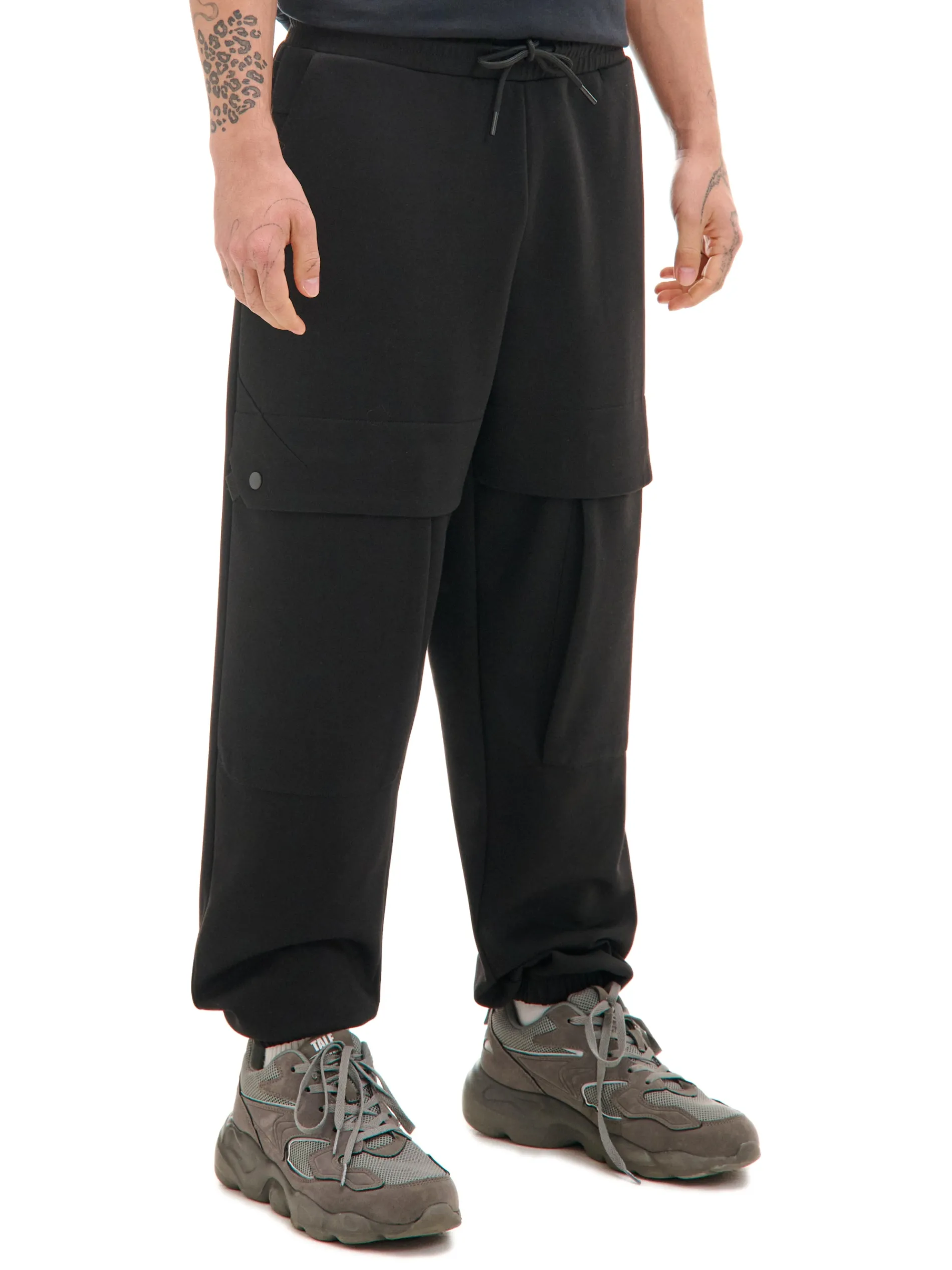 Męskie spodnie dresowe uszyte z podwójnego, gładkiego dżerseju. Te pojemne kieszenie na zatrzaski przechowają Twój telefon i portfel podczas codziennych aktywności. dresowe spodnie typu jogger wygodny krój comfort gumka w pasie ze sznurkiem do regulacji długie nogawki wykończone ściągaczem naszywana kieszeń z tyłu dwie kieszenie z patkami i zapięciem na zatrzaski
