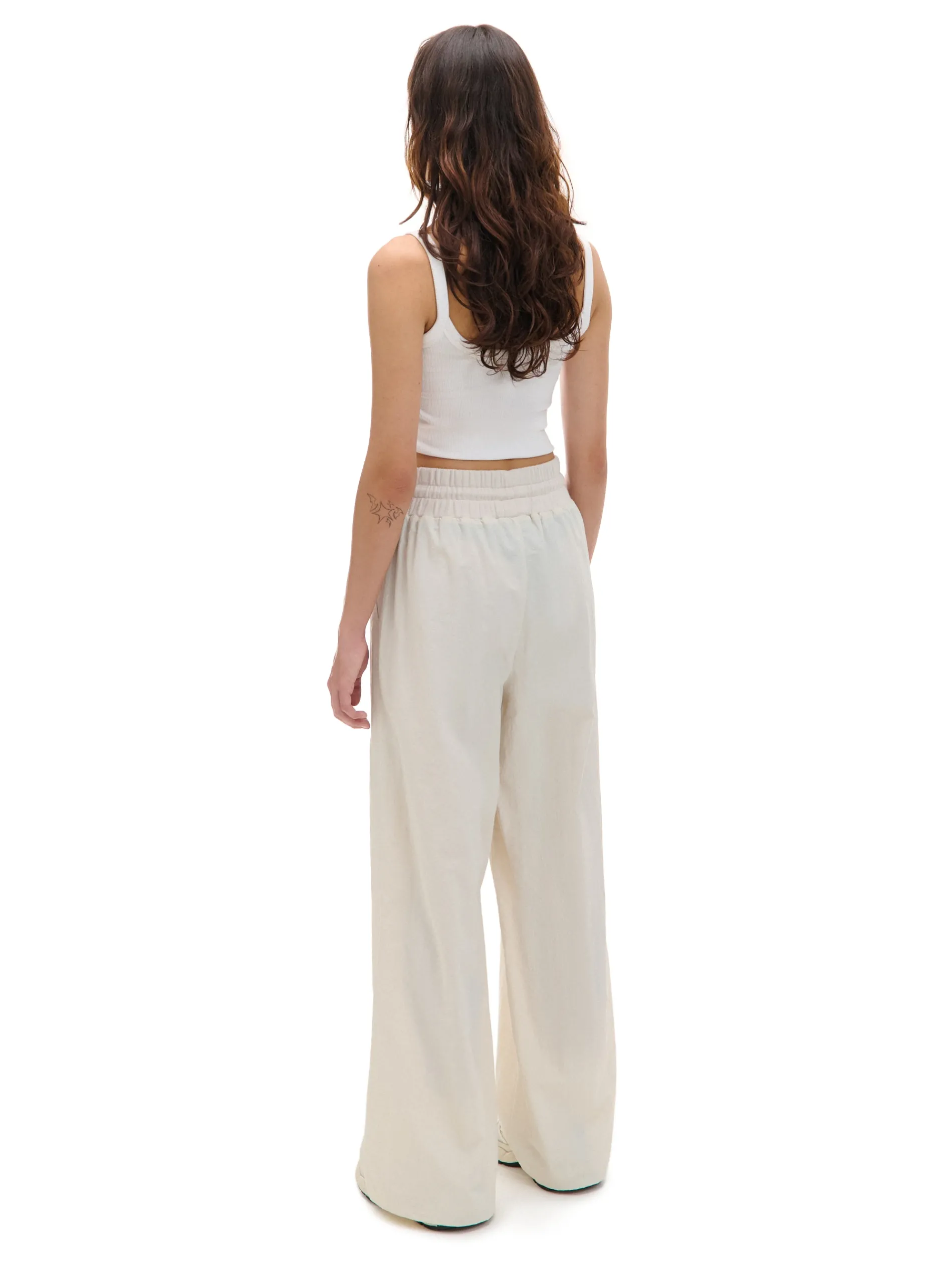 Kremowe damskie spodnie z szerokimi nogawkami, uszyte z trwałej tkaniny. Komfort zapewnia luźny krój, który nie krępuje ruchów. Przygotuj się na nowy sezon! uszyte z gładkiej tkaniny obszerny krój baggy wysoki stan długie, szerokie nogawki elastyczna gumka w pasie sznurek w pasie Tworzy zestaw z modelem 185AR-01X .