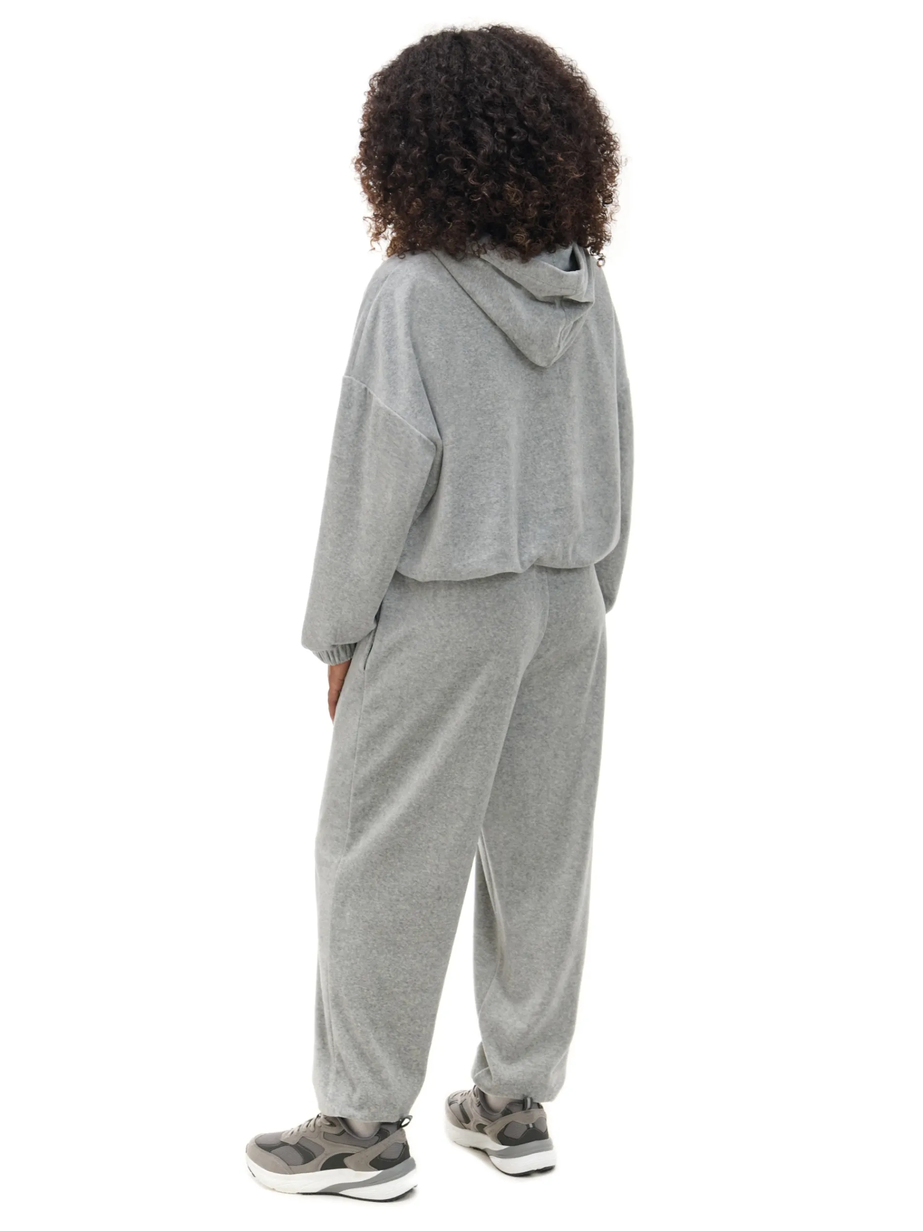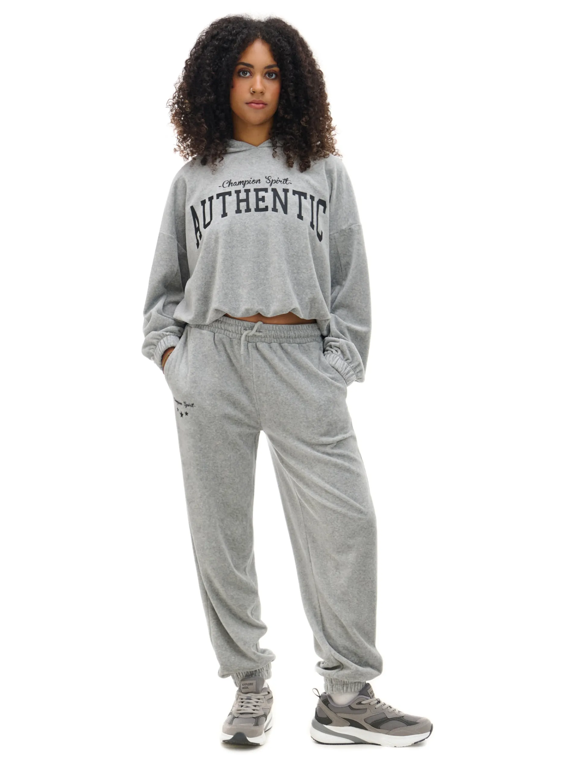 Damskie spodnie dresowe typu jogger uszyte z aksamitnego i miłego w dotyku materiału. Wyposażone w dwie praktyczne kieszenie po bokach. Dodatkowo ściągacze przy nogawkach zapobiegające unoszeniu się materiału. Sztos item na basen, siłkę czy spacer z psem! dresowe spodnie typu jogger dzianinowy materiał z bawełną swobodny, luźny krój wysoki stan elastyczna gumka w pasie ze sznurkiem do regulacji długie nogawki zwężane ku dołowi, wykończone ściągaczem dwie kieszenie boczne Tworzy zestaw z modelem: 965AQ-09X .