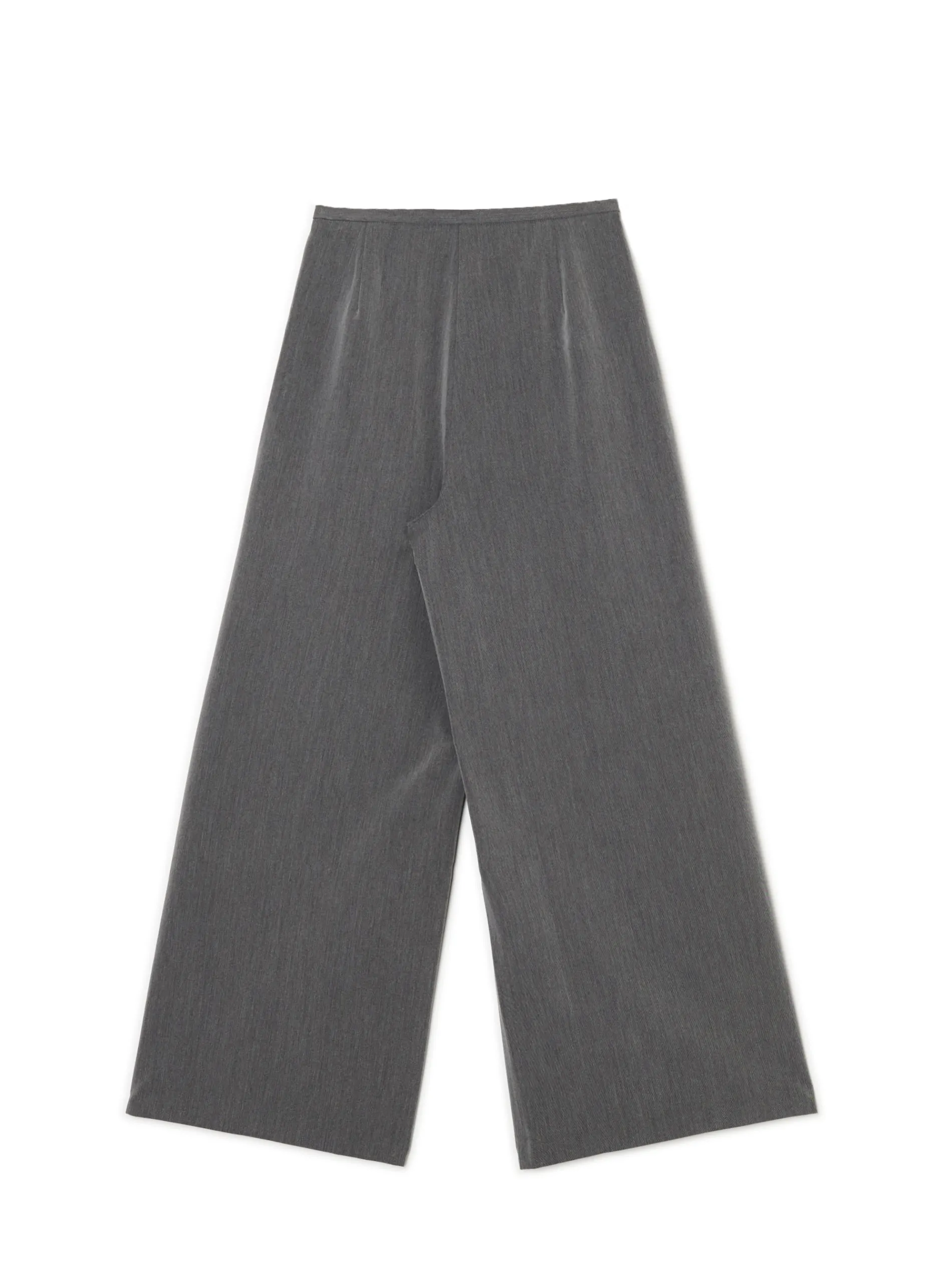 Spodnie damskie z szerokimi nogawkami, uszyte z mocnej tkaniny typu twill z dodatkiem wiskozy i elastycznych włókien. FItuje zarówno z białą koszulą, jak i bardziej casualowymi stylizacjami. spodnie o fasonie tailoring zapięcie na suwak i guzik wewnątrz dodatkowy, ukryty guzik dwie kieszenie po bokach ozdobne marszczenia z przodu zakładki modelujące z tyłu