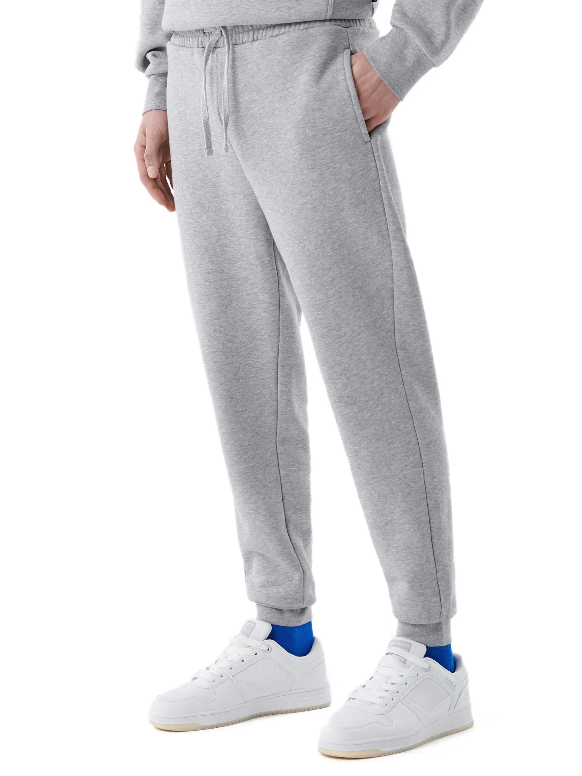 Męskie spodnie dresowe, uszyte z dzianiny o wysokiej zawartości bawełny. luźny, komfortowy krój regularny stan gumka i sznurek w pasie długa nogawka, zakończona ściągaczem trzy kieszenie dostępne w innych kolorach Rozmiar ubrania: M Wzrost modela: 187 cm