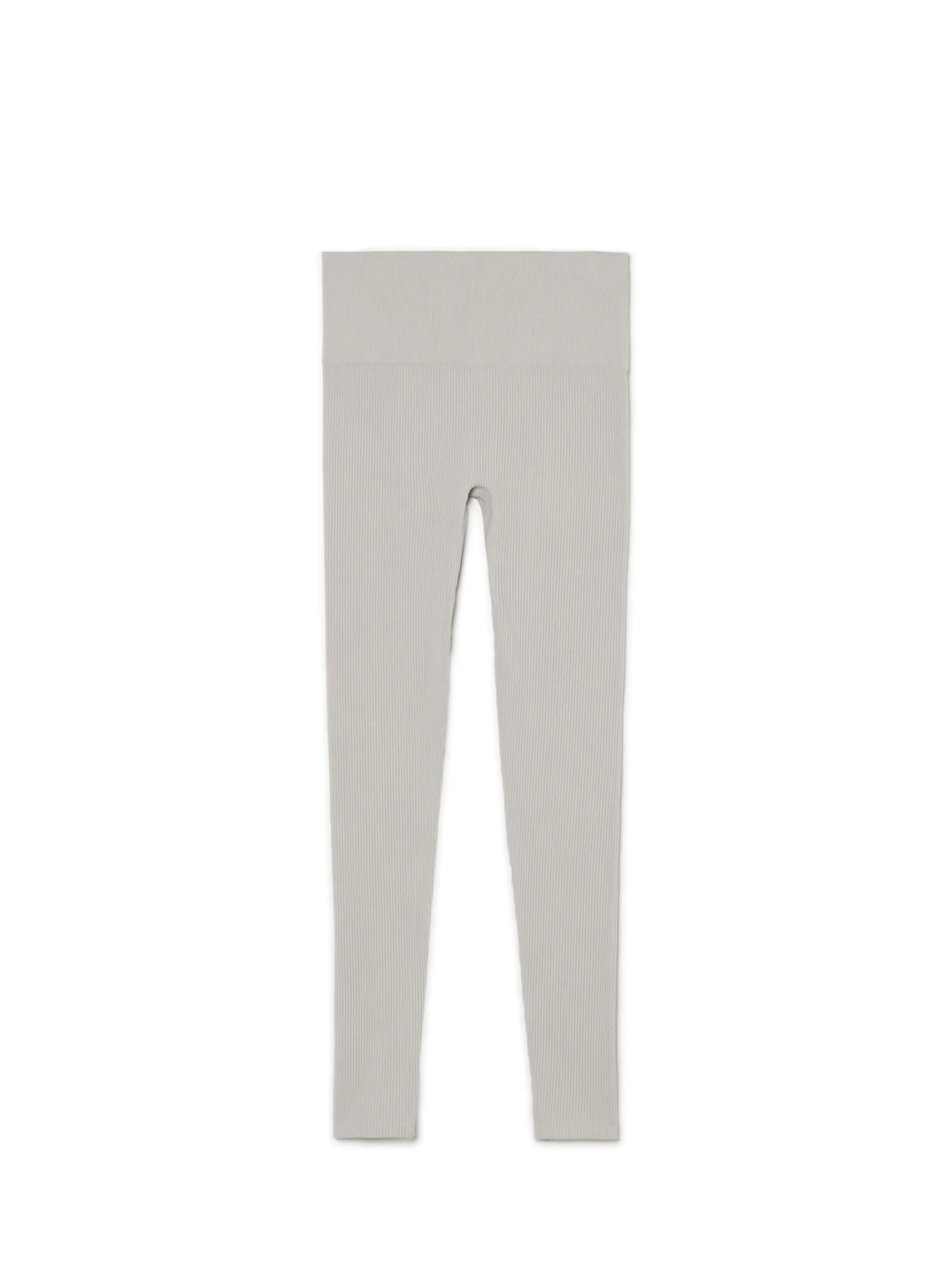 Damskie legginsy, uszyte z prążkowanej dzianiny, mieszanki poliamidu i elastanu. W pasie gumka.