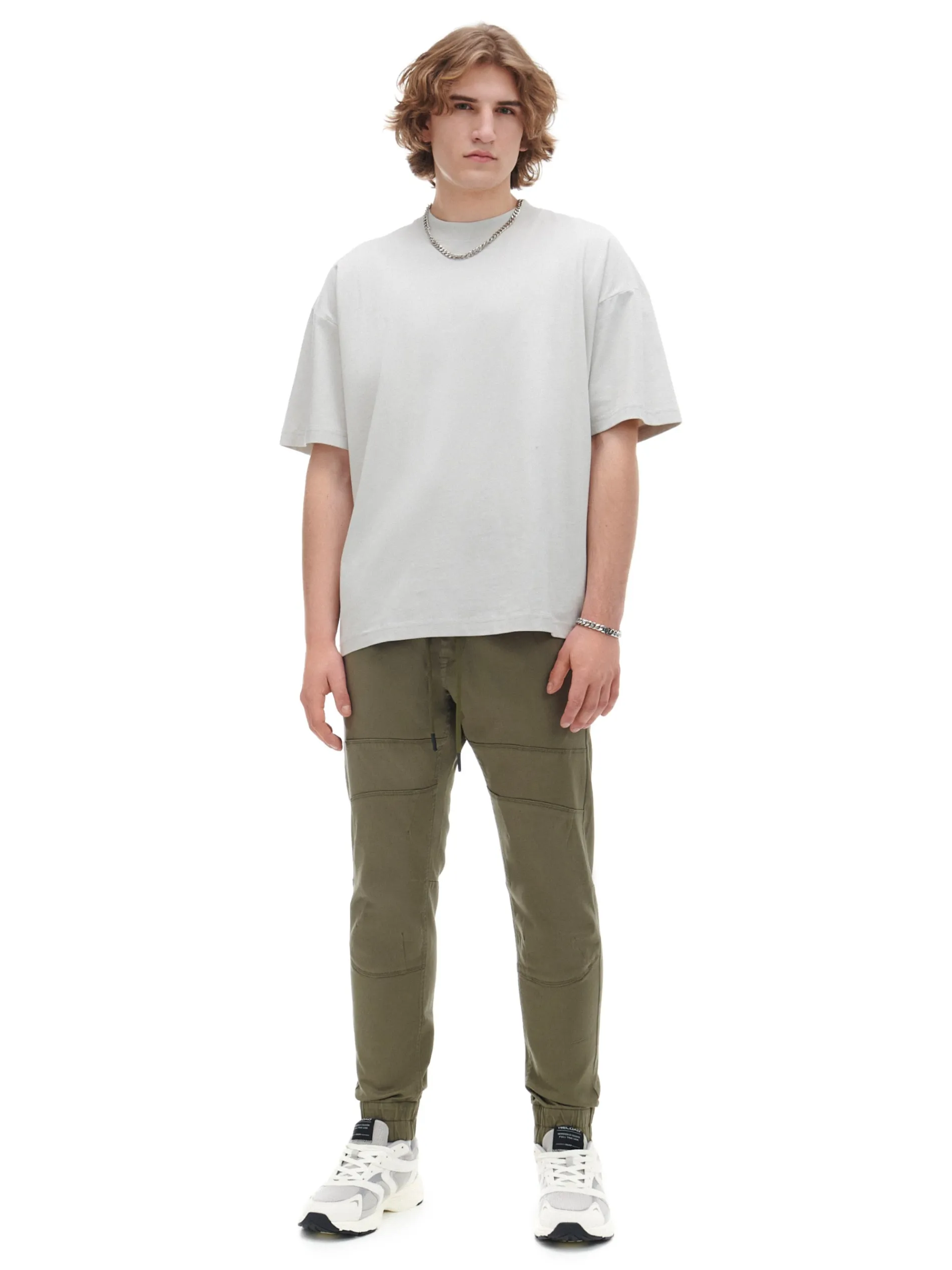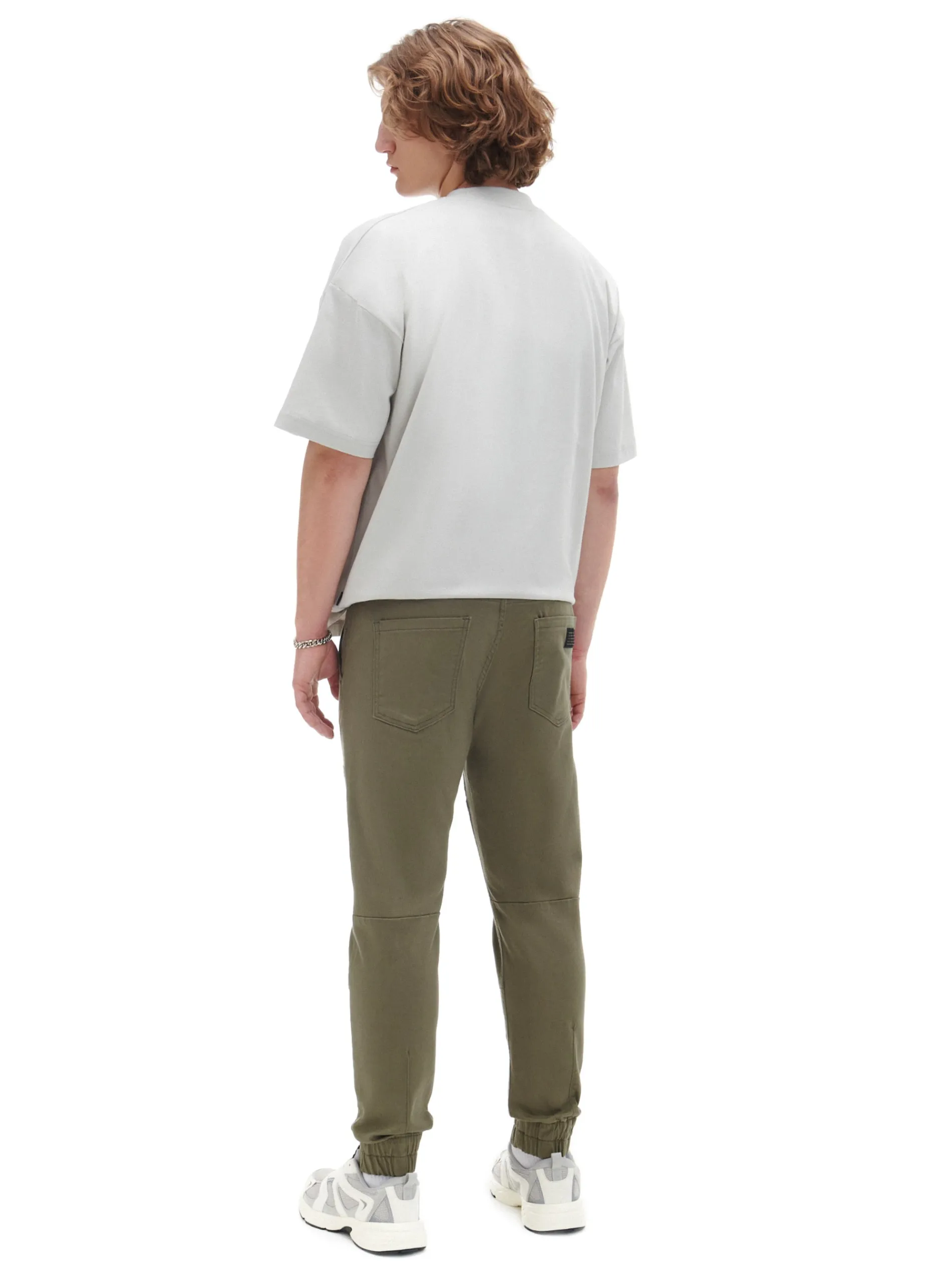 Męskie spodnie o sportowym kroju typu jogger, uszyte z bawełnianej tkaniny z dodatkiem elastycznych włókien. Model dostępny w różnych kolorach. regularny stan w pasie elastyczna gumka i sznurek do regulacji nogawka zakończona ściągaczem z wszytą elastyczną gumką cztery kieszenie poziome przeszycia Wzrost modela: 184 cm
