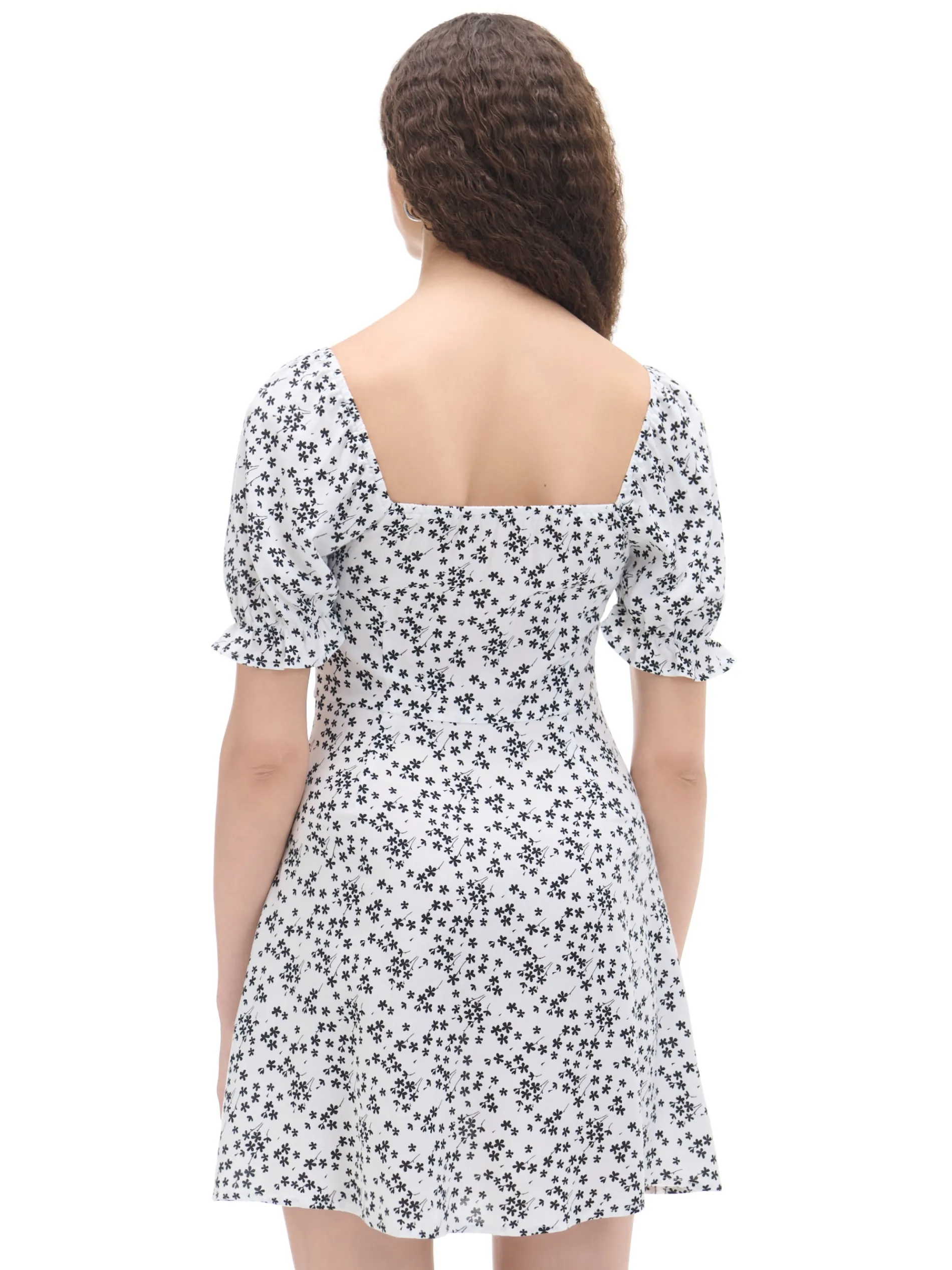 Krótka damska sukienka o swobodnym kroju, uszyta z wiskozy. Dostępna w różnych wersjach kolorystycznych. 100% wiskozy swobodny krój krótkie, bufiaste rękawy dekoracyjne marszczenie pod biustem autorski, kwiatowy print na całości zapięcie na kryty zamek produkt występuje w kilku kolorach Wzrost modelki: 170 cm