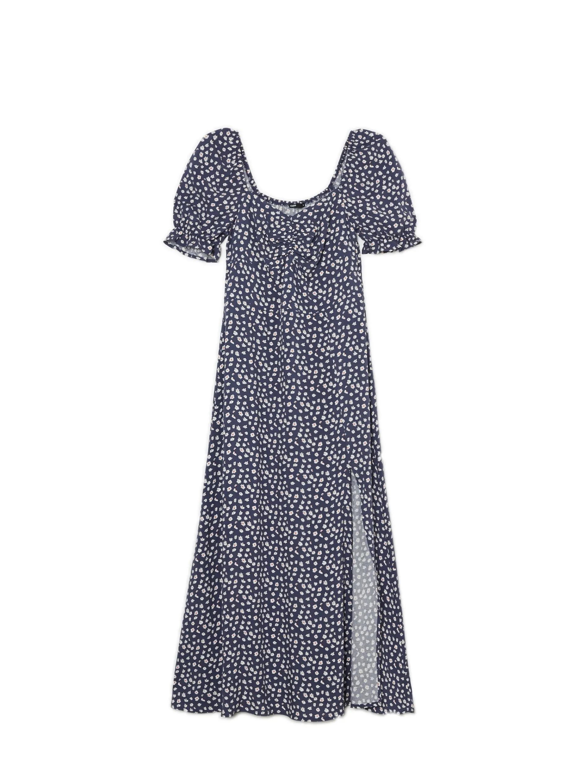 Cropp Sukienki, Kombinezony*Granatowa sukienka midi w stokrotki