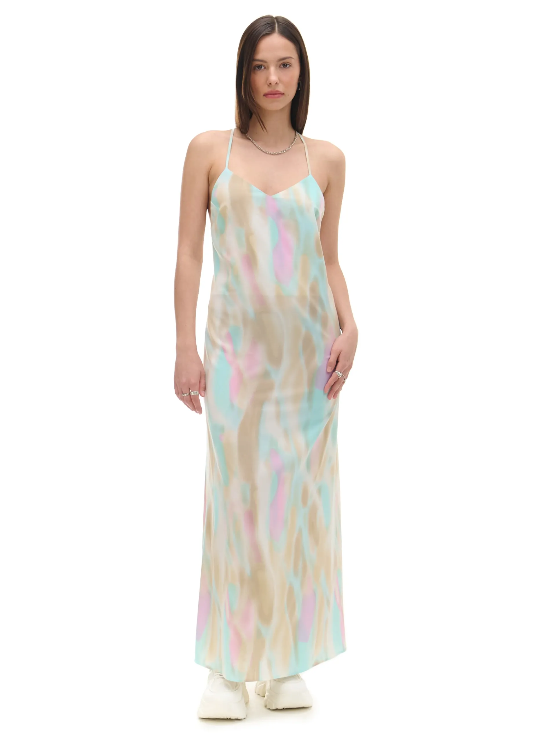 Luźna sukienka na ramiączkach w rozmiarze maxi zawiązywana na plecach to must have letnich wypadów! wykonana z łączonych materiałów luźny fason elastyczna talia z wiązaniem dekolt w serek cienkie, krzyżujące się na plecach ramiączka dekoracyjne wycięcie z przodu