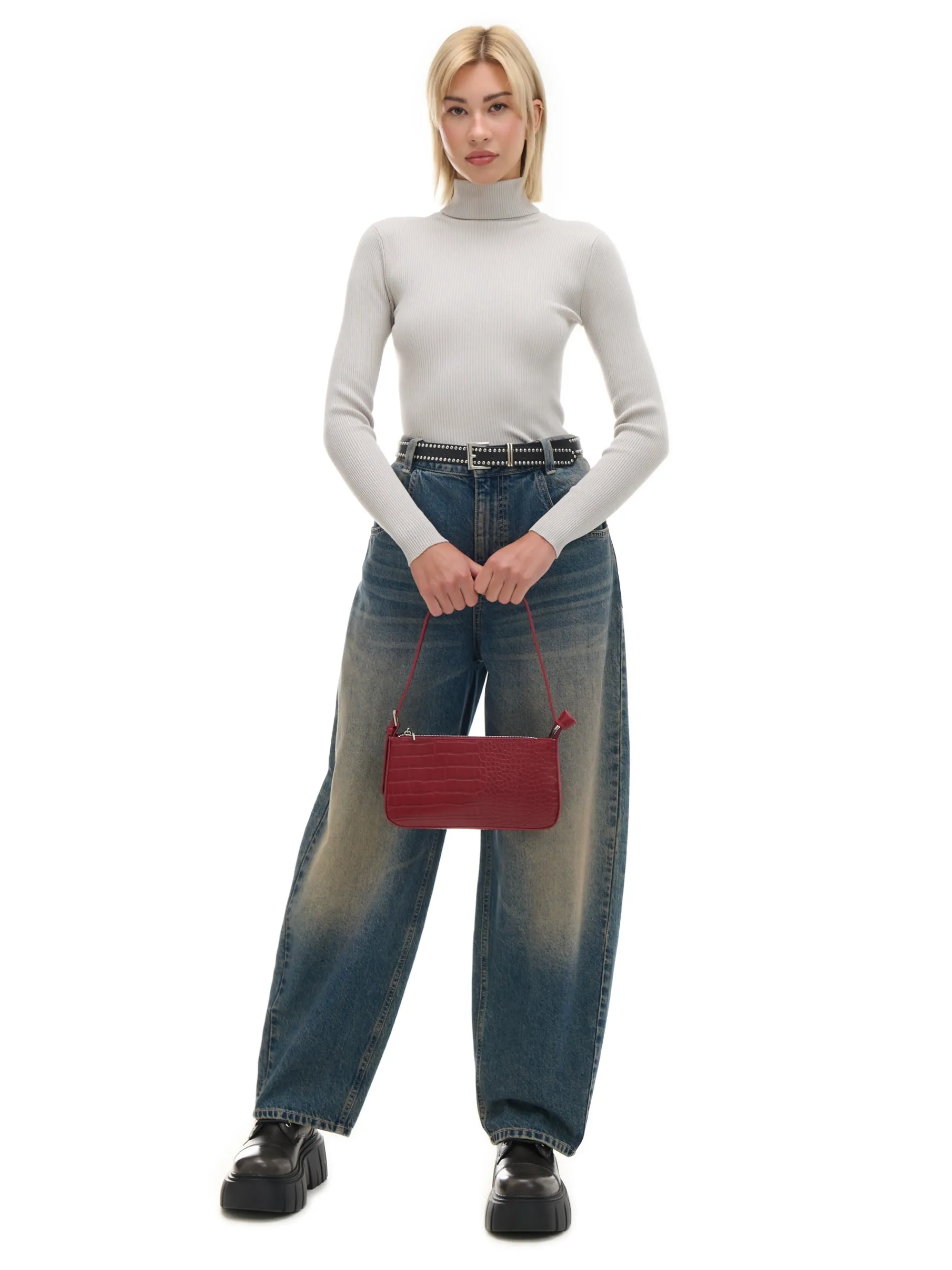 Damski sweter z pógolfem, uszyty z dzianiny o wysokiej zawartości bawełny. regularny krój prążkowana struktura półgolf pod szyją dostępne inne warianty kolorystyczne Wzrost modelki: 177 cm
