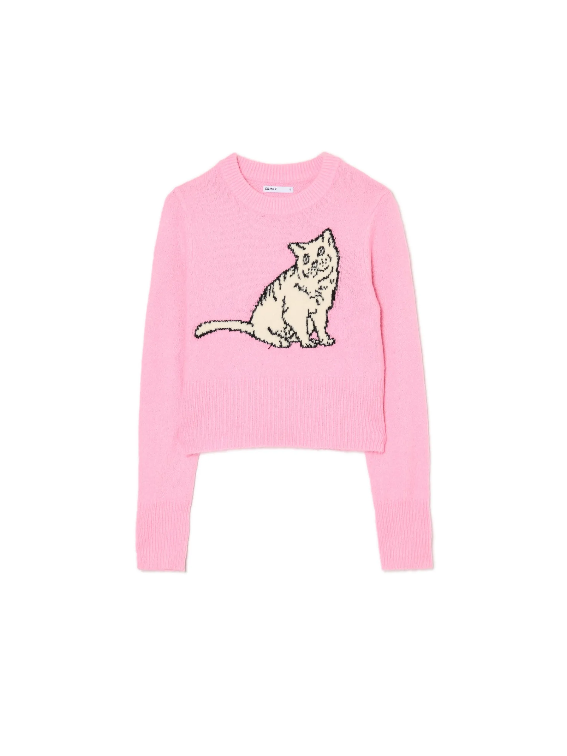 Informacja dla miłośniczek kotów! Mamy dla Ciebie damski sweter uszyty z przyjemnej w dotyku mieszanki dzianin. Dodatkowo ten dopasowany, elastyczny materiał ogrzeje Cię w chłodne dni. Na przodzie nadruk z uroczym kotem. Jeden klik i do koszyka! dzianina z dodatkiem elastycznych włókien dopasowany krój podkreślający sylwetkę okrągły dekolt długie, dopasowane rękawy dół i rękawy wykończone prążkowanym ściągaczem