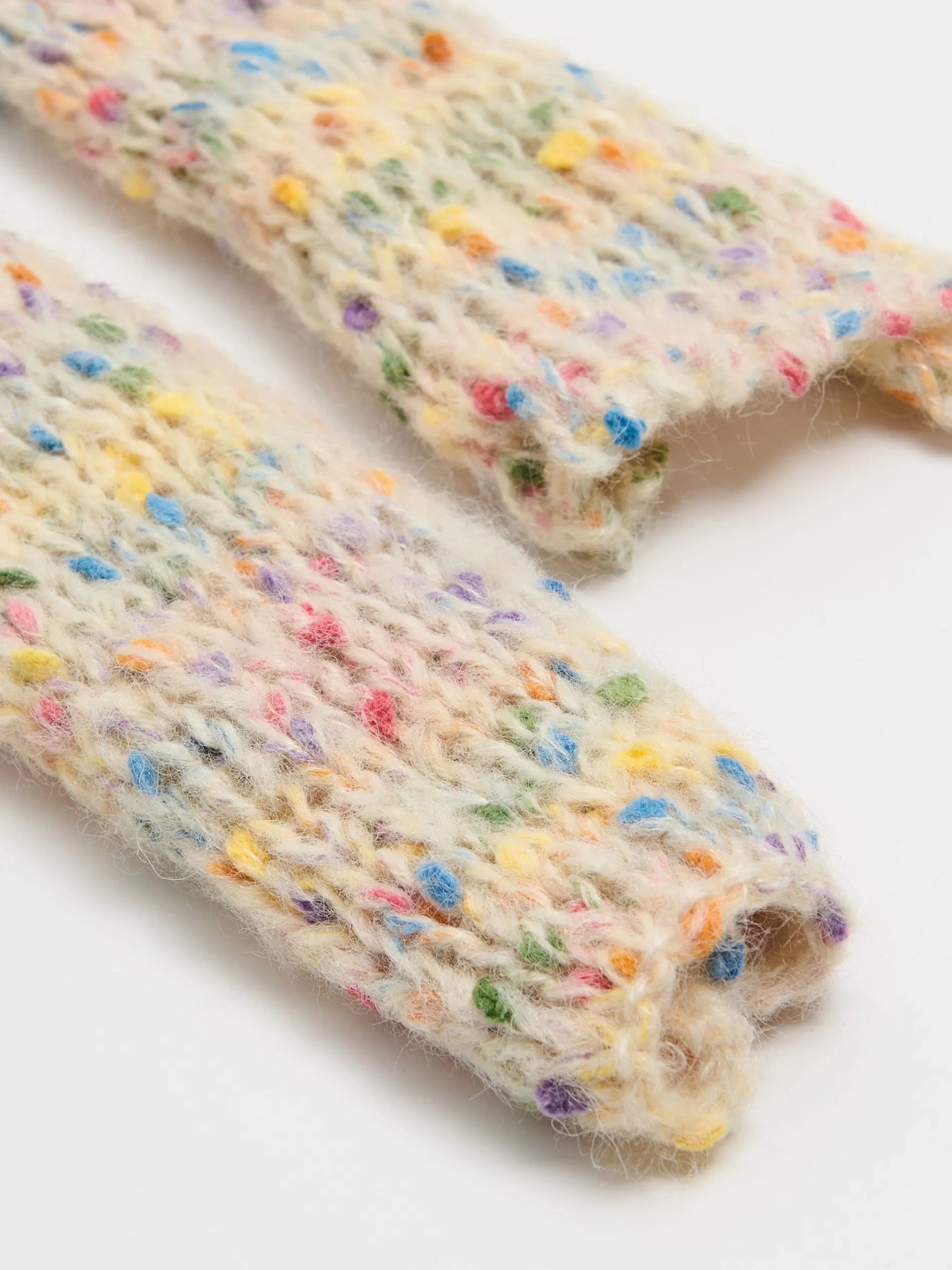 Damski szalik uszyty z delikatnej, miłej w dotyku dzianiny. Te malutkie, kolorowe wypustki oplecione na dodatkowej nici nadają wyjątkowości temu modelowi.