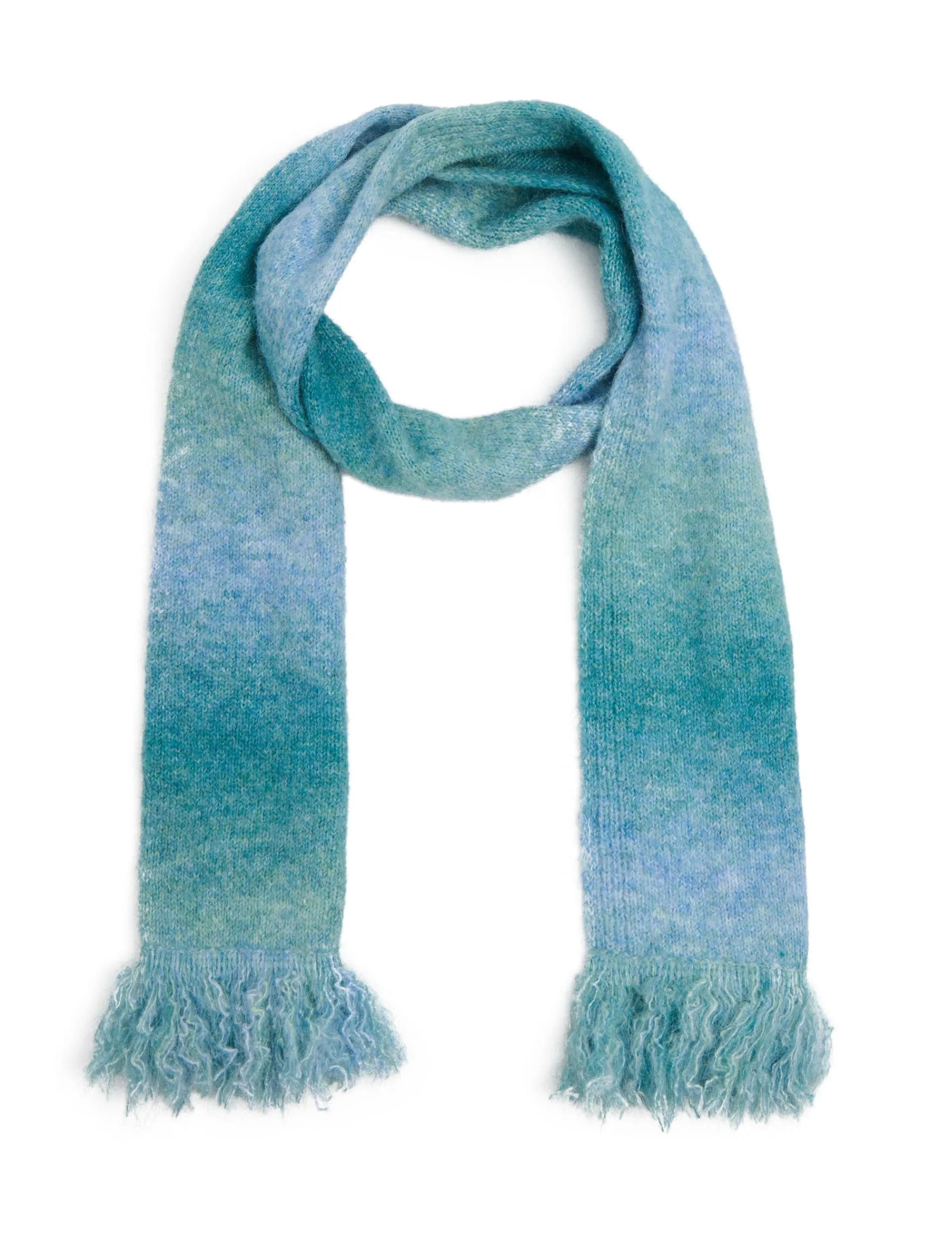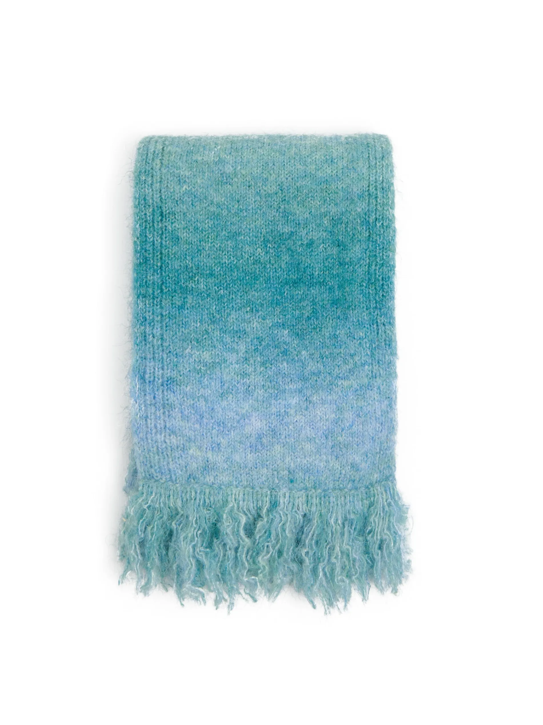 Łap damski szalik uszyty z mieszanki dzianin z dodatkiem wełny. Przyjemny w dotyku materiał i ozdobne frędzle na końcach nawiązują do klasycznego designu. Dekoracyjne cieniowanie na materiale, to znak nowoczesnego looku! uszyty z dzianiny zawierającej domieszkę wełny prosty krój długie, dekoracyjne frędzle na brzegach