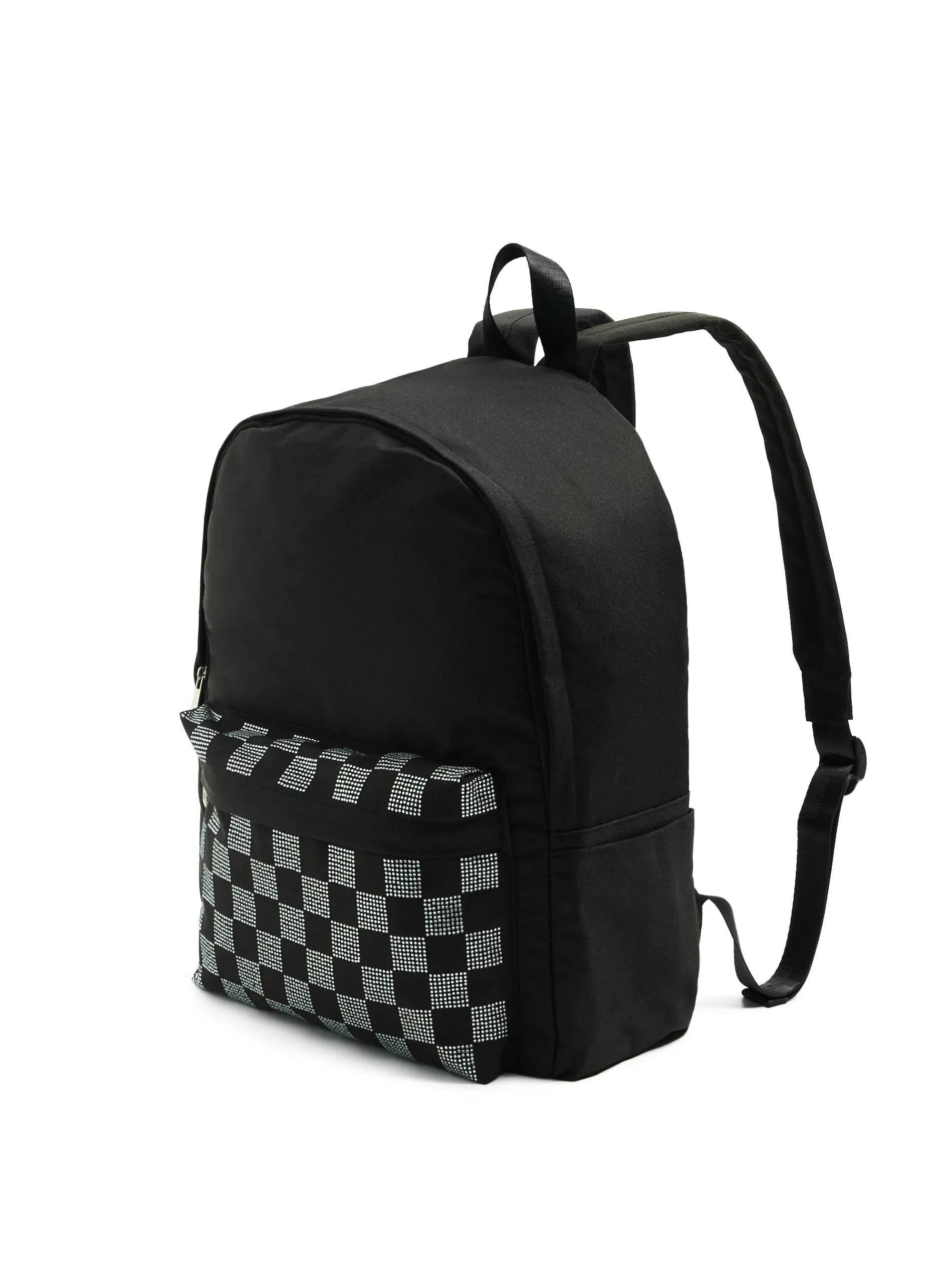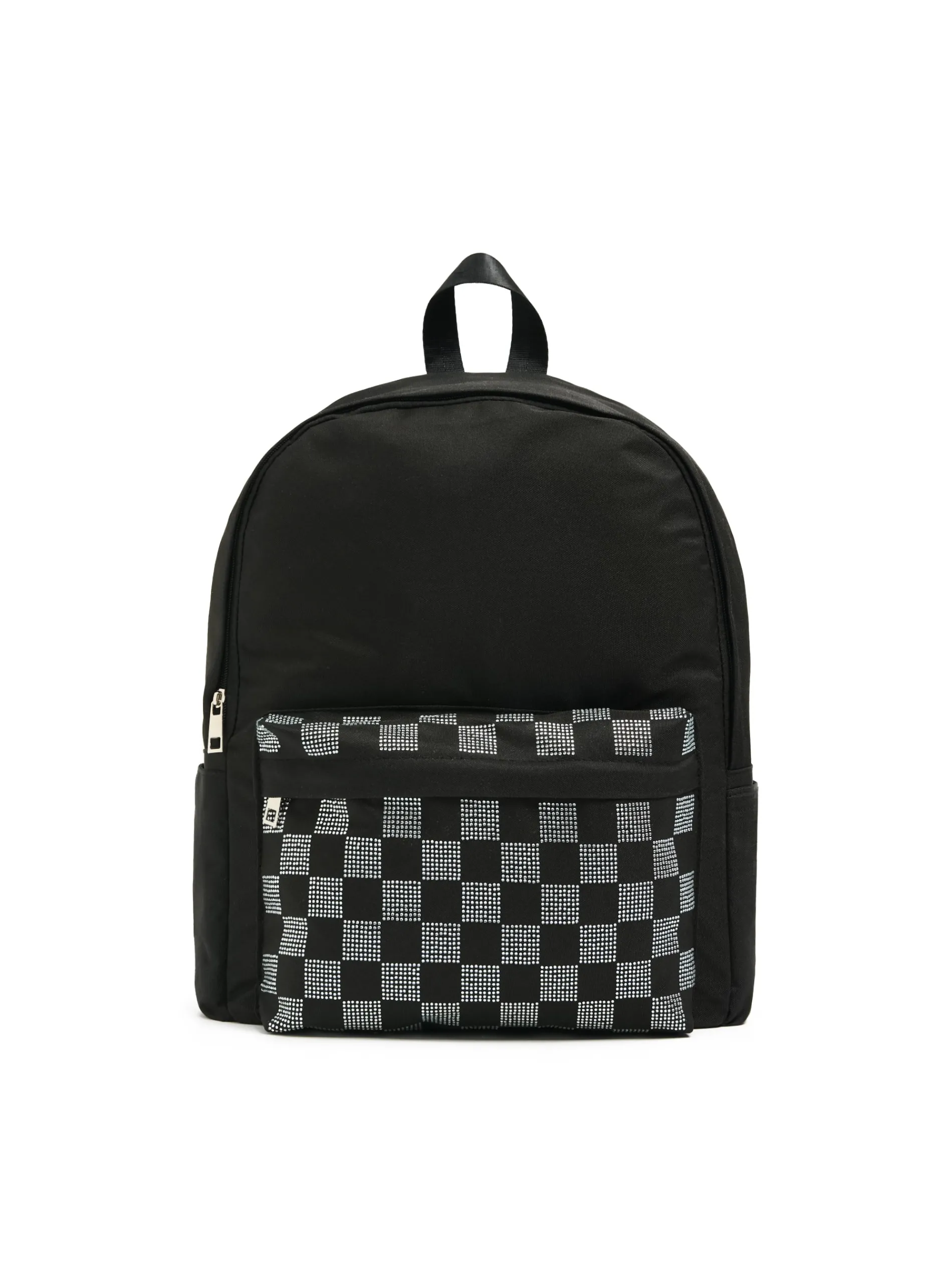 Damski plecak uszyty z tkaniny w czarnym kolorze. Praktyczne kieszenie i delikatny nadruk na kieszeni ze wzorem w kratę. Idealny do szkoły, pracy, czy na uczelnię! uszyty z trwałej tkaniny szelki z regulacją długości główna komora z zapięciem na zamek wewnątrz otwarta kieszeń dodatkowa kieszeń zewnętrzna z zapięciem na zamek otwarte kieszenie po bokach poręczny uchwyt u góry Wymiary plecaka: 43cm x 31cm x 12cm