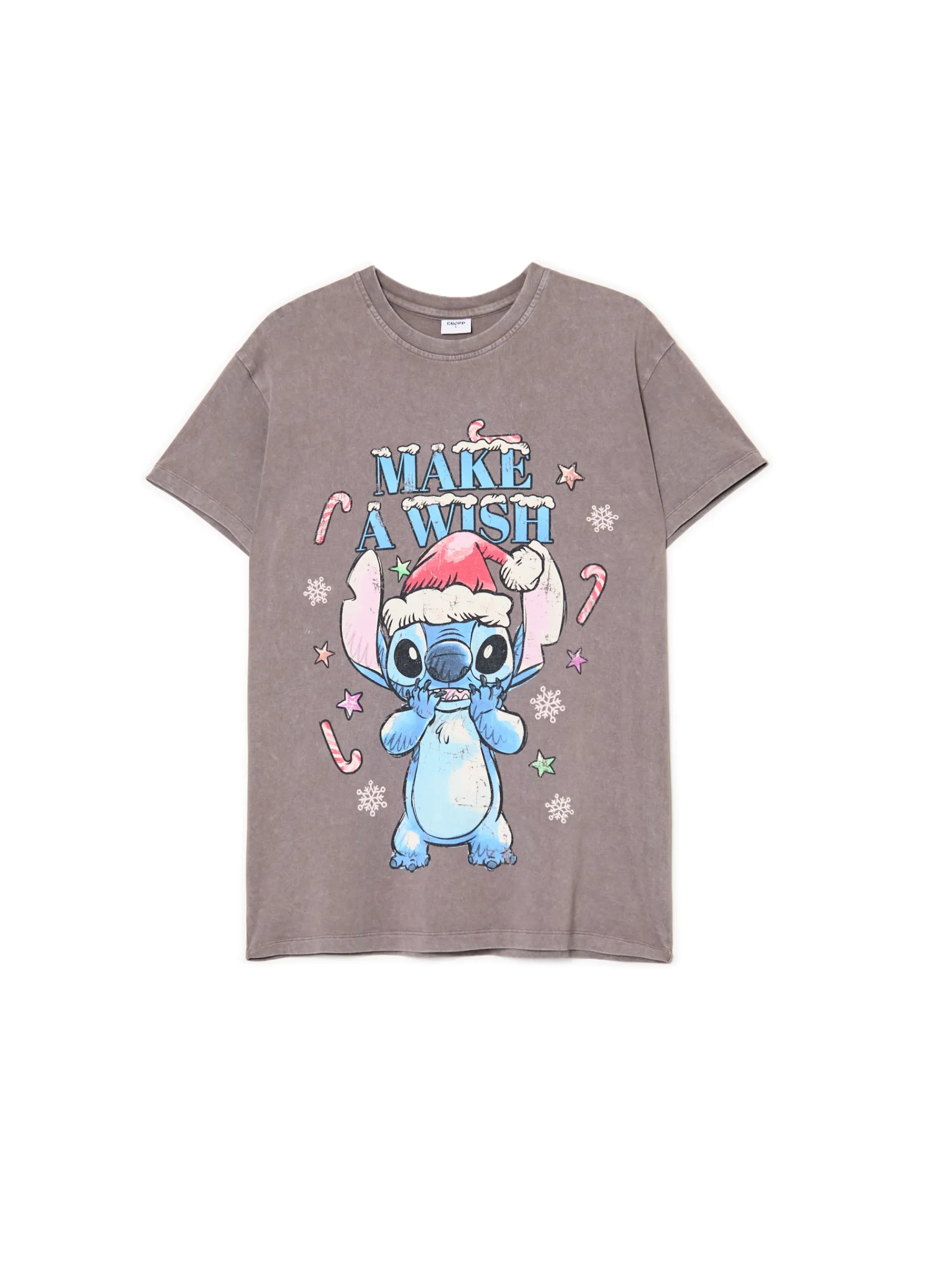 Warto umieścić ten item na liście życzeń do Świętego Mikołaja. Jasnoszara damska koszulka z krótkim rękawem o kroju oversize. Na przodzie bajkowy motyw z serii Disneya „Lilo & Stitch”. Jeden klik i do koszyka! 100% bawełny oversizowy krój okrągły dekolt krótkie, swobodne rękawy z przodu nadruk ze Stitchem nadruk z motywem Xmas © Disney, ©Disney / Pixar, © Disney Based on the „Winnie the Pooh” works by A. A. Milne and E. H. Shepard