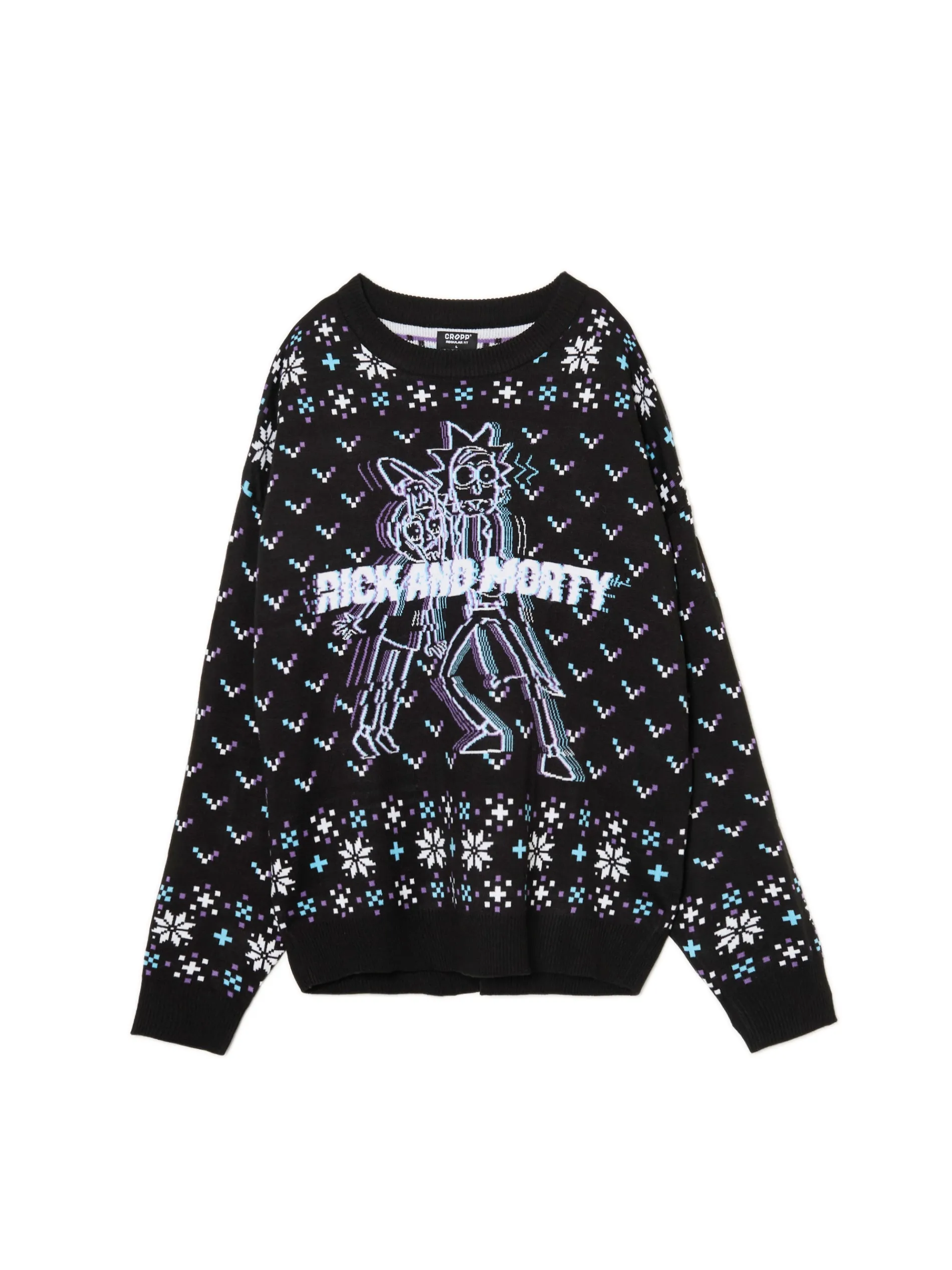 Szalony naukowiec i jego wnuk chętnie spędzą tę święta przy wigilijnym stole w ciekawym towarzystwie. Na tę okazję przygotowaliśmy ciepły męski sweter uszyty z żakardowej dzianiny. Idealny item dla fanów serii Rick i Morty! uszyty z miękkiej dzianiny wygodny krój comfort okrągły dekolt z lamówką długie, swobodne rękawy dół i mankiety wykończone ściągaczem nadruk z motywem Xmas RICK AND MORTY and all related characters and elements © & TM CN. (s24)