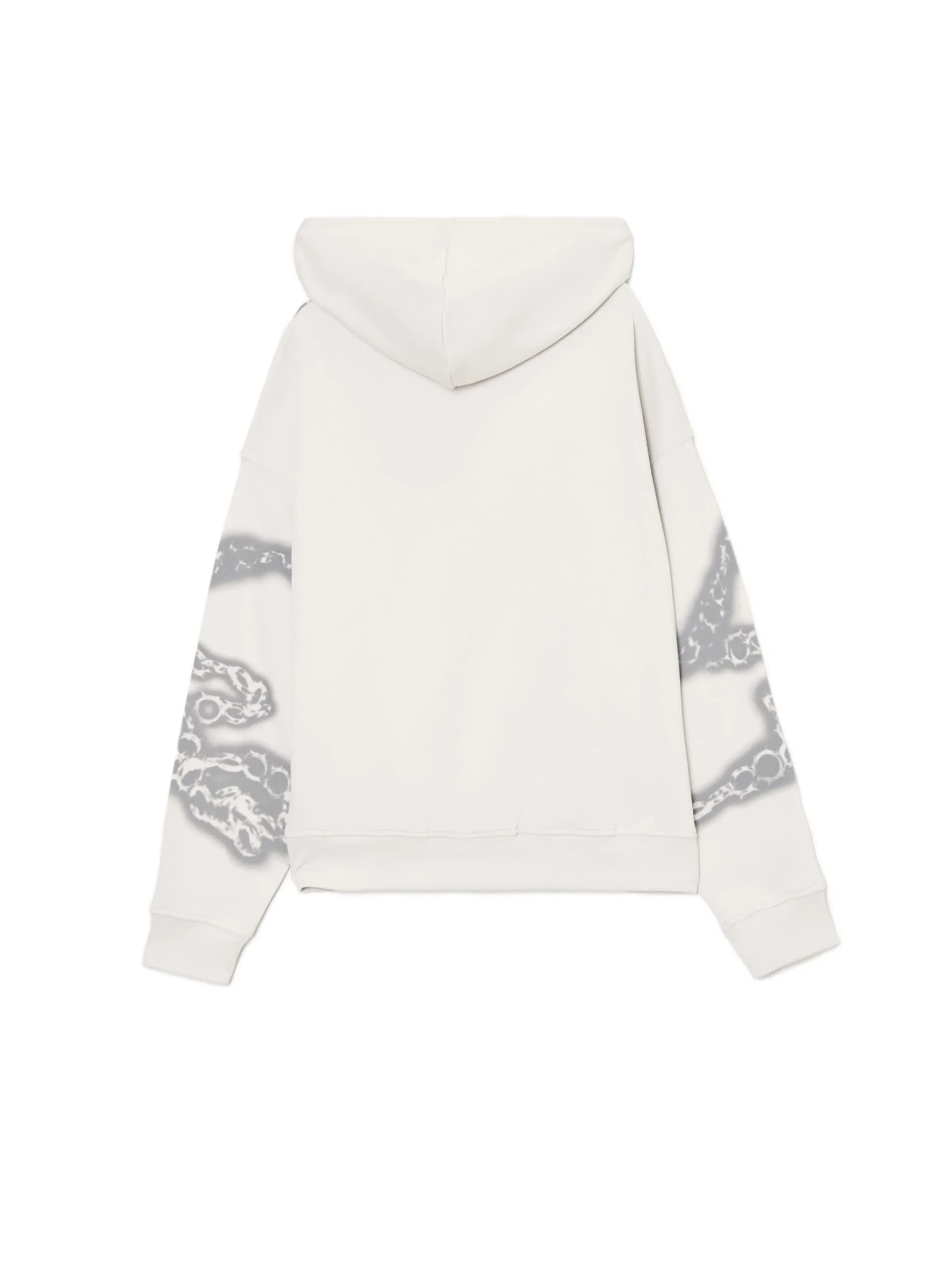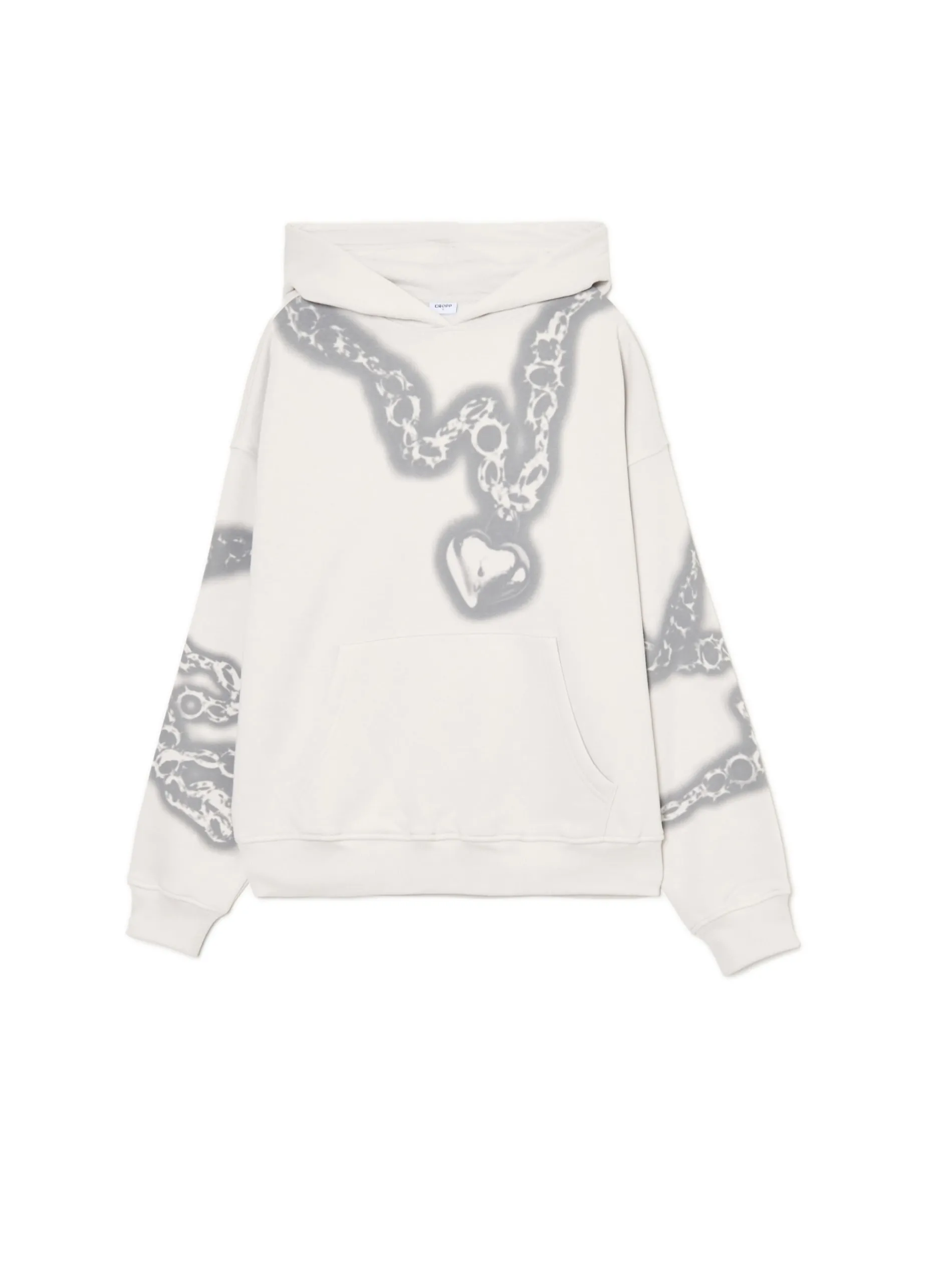 Jasna damska bluza z kapturem uszyta z mieszanki dzianin z przyjemną w dotyku bawełną fleecy w składzie. Z przodu i na rękawach nadruk z motywami łańcucha i serca. dzianinowy materiał z bawełną krój oversize lekkie ocieplenie miękki kaptur długie rękawy z obniżoną linią ramion dół i rękawy wykończone prążkowanym ściągaczem kieszeń kangurka na przodzie nadruk all over Produkt tworzy zestaw z modelem 613AQ-09X . Ten produkt należy do kolekcji UNISEX – zalecamy wybranie mniejszego rozmiaru niż zazwyczaj, jeśli chcesz uniknąć efektu oversize.