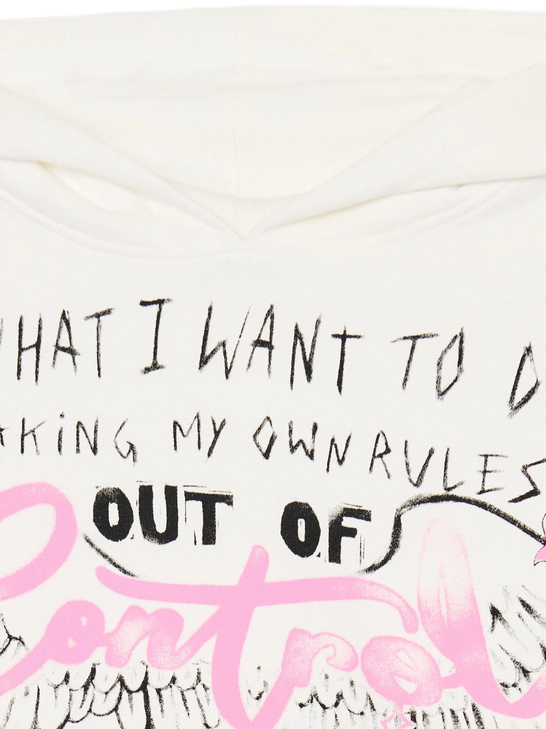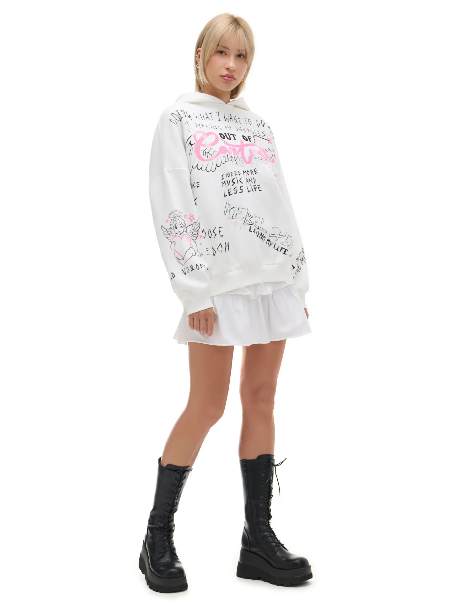Damska bluza z kapturem o kroju oversize, uszyta z mieszanki dzianin z nadrukiem na przodzie i rękawach, jak ze szkolnego zeszytu. Otuli Cię w chłodniejsze dni! uszyta z miękkiej dzianiny z bawełną krój oversize obszerny kaptur długie, swobodne rękawy dół wykończony ściągaczem oryginalny print Ten produkt należy do kolekcji UNISEX – zalecamy wybranie mniejszego rozmiaru niż zazwyczaj, jeśli chcesz uniknąć efektu oversize.