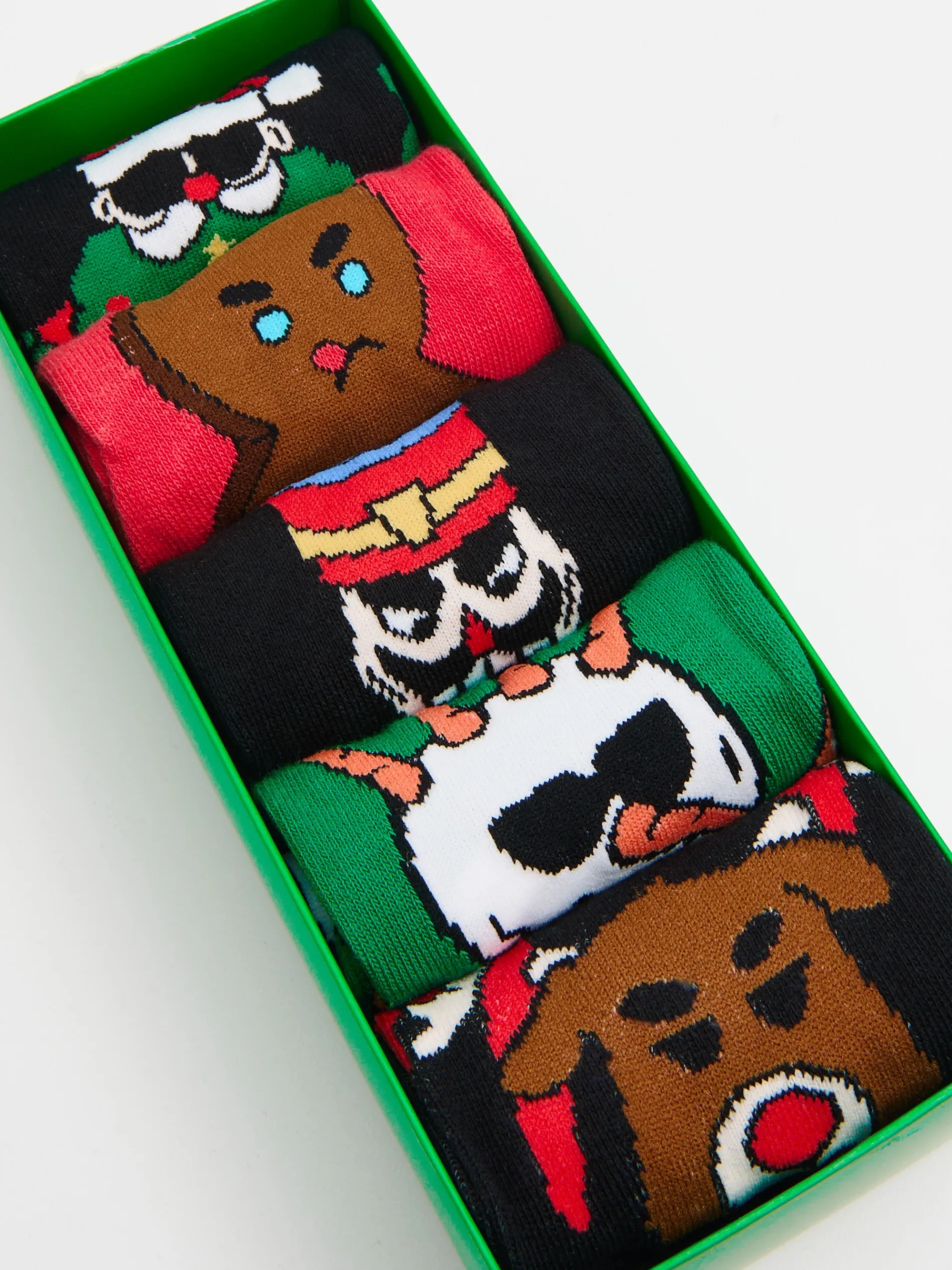 Idealny zestaw prezentowy w wyjątkowym, świątecznym opakowaniu! W boxie pięć par męskich damskich skarpet wykonanych z miękkiej w dotyku dzianiny w kolorze czarnym. Każdy set ma odjechany nadruk z motywem świątecznym. Miksuj dowolnie! dzianina z dodatkiem elastycznych włókien dłuższy, prosty krój nadruk z motywem Xmas