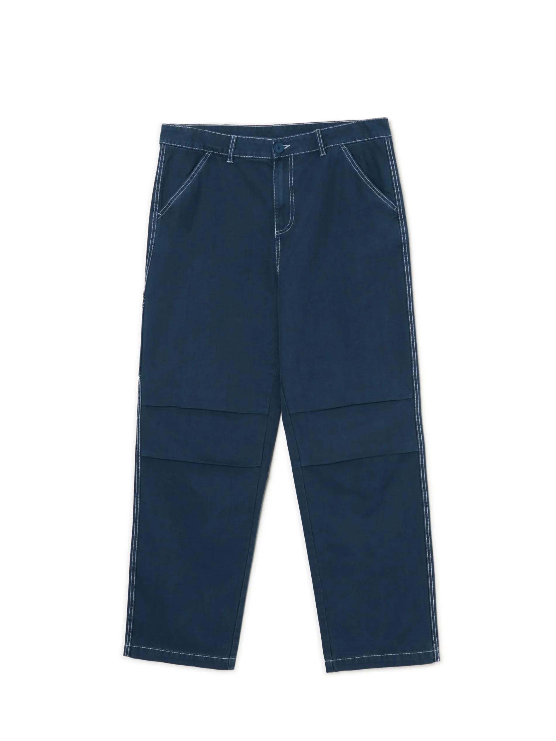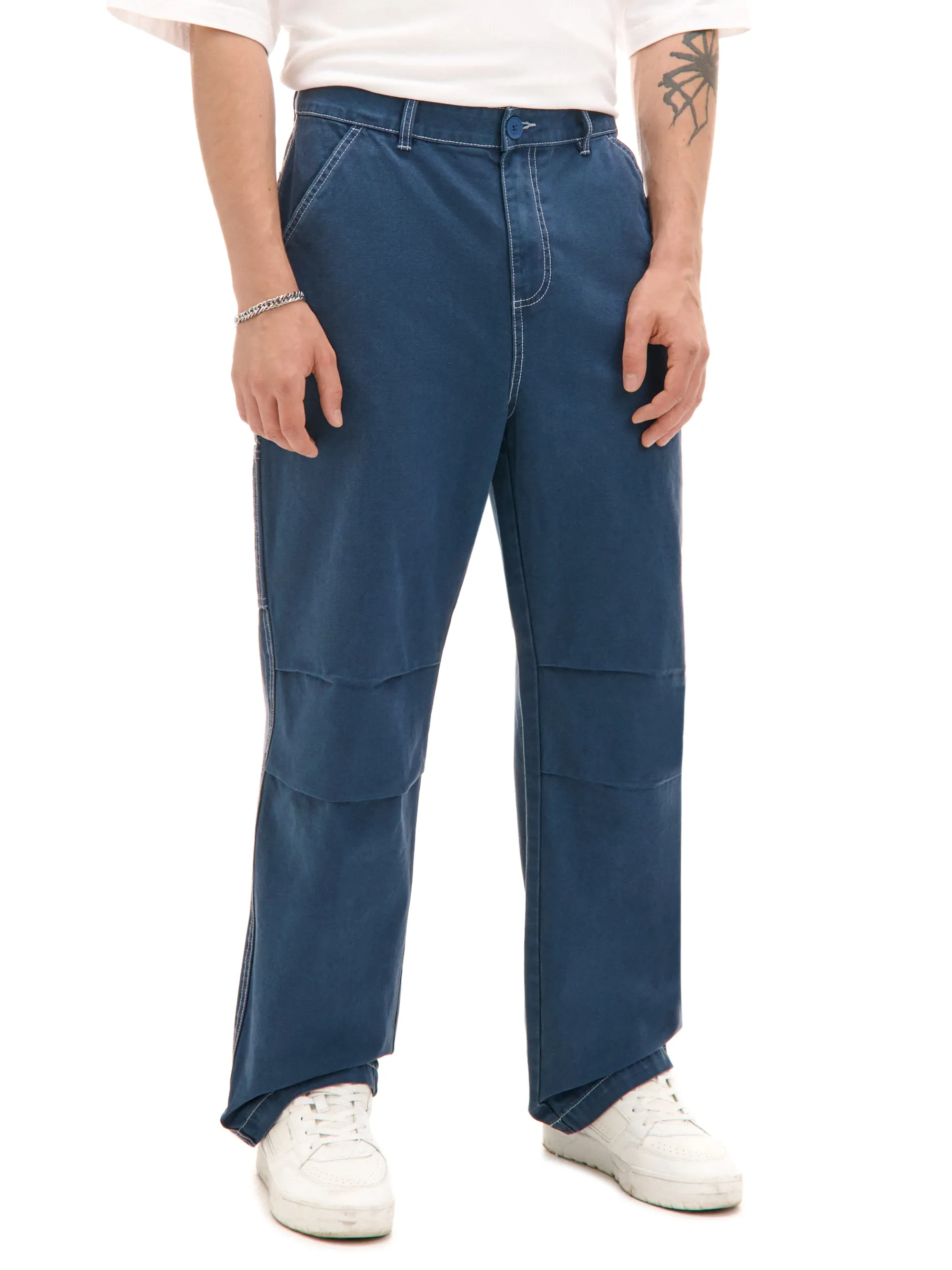 Efektowne i wygodne męskie spodnie na każdą okazję. Wyposażone w luźne nogawki, praktyczne zapięcie i kieszenie na niezbędne itemy. Dodatkowe wstawki przy kolanach i kontrastowe przeszycia nadają im oryginalnego vibe’u. krój loose fit zapięcie na zamek i guzik długie, swobodne rękawy skośne kieszenie z przodu naszywane kieszenie z tyłu kieszeń carpenter szlufki na pasek kontrastowe przeszycia