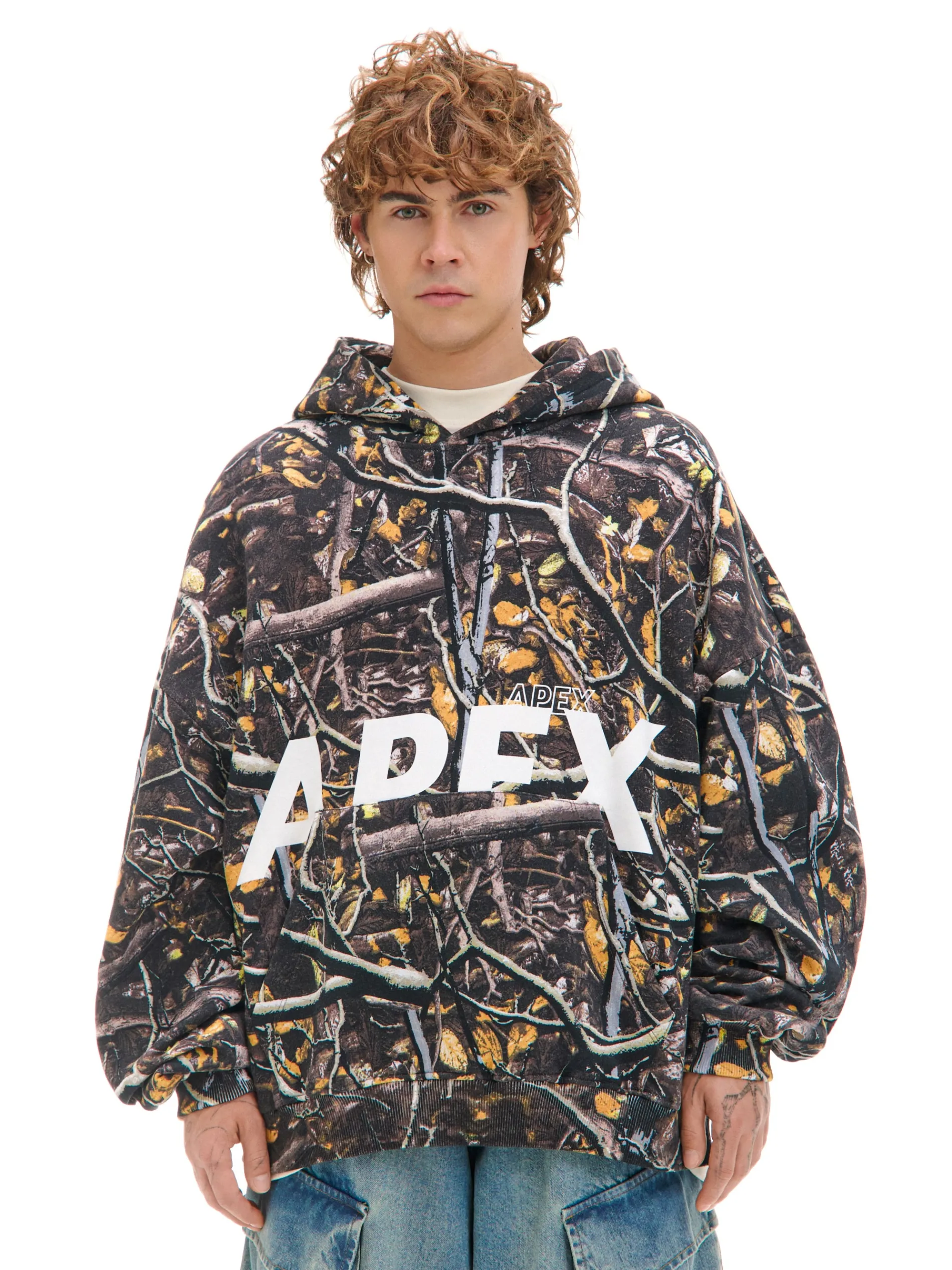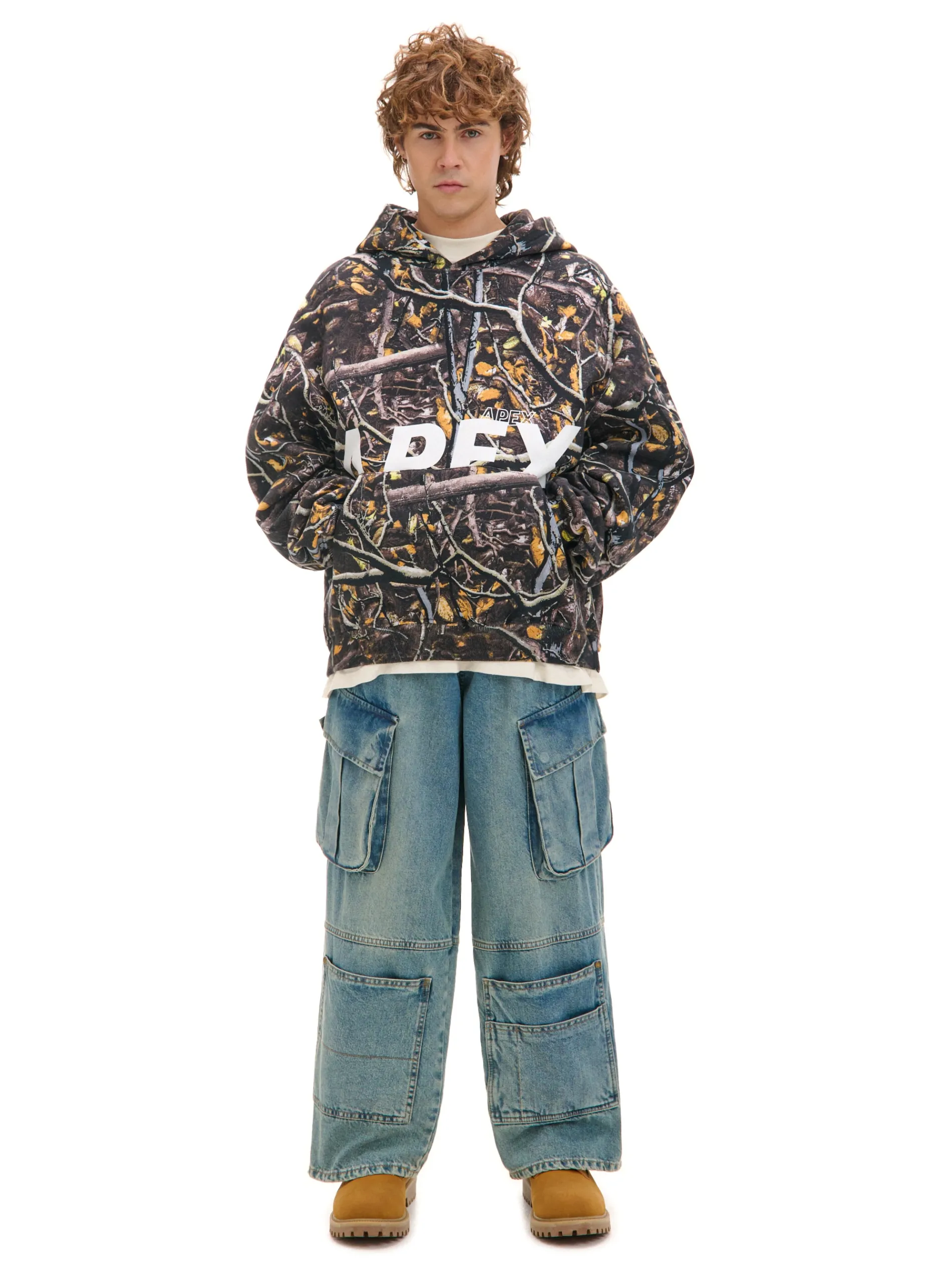 Męska bluza z kapturem uszyta z dzianiny o wysokiej zawartości miękkiej bawełny typu french terry. Na całości print z leśnym motywem, a z przodu kontrastowy, biały napis. Item tylko dla prawdziwych dzików! uszyta z miękkiej dzianiny z bawełną obszerny krój boxy miękki kaptur długie rękawy z obniżoną linią ramion kieszeń kangurka na przodzie dół i rękawy wykończone prążkowanym ściągaczem nadruk z motywem roślinnym na całej powierzchni tekstowy nadruk z przodu