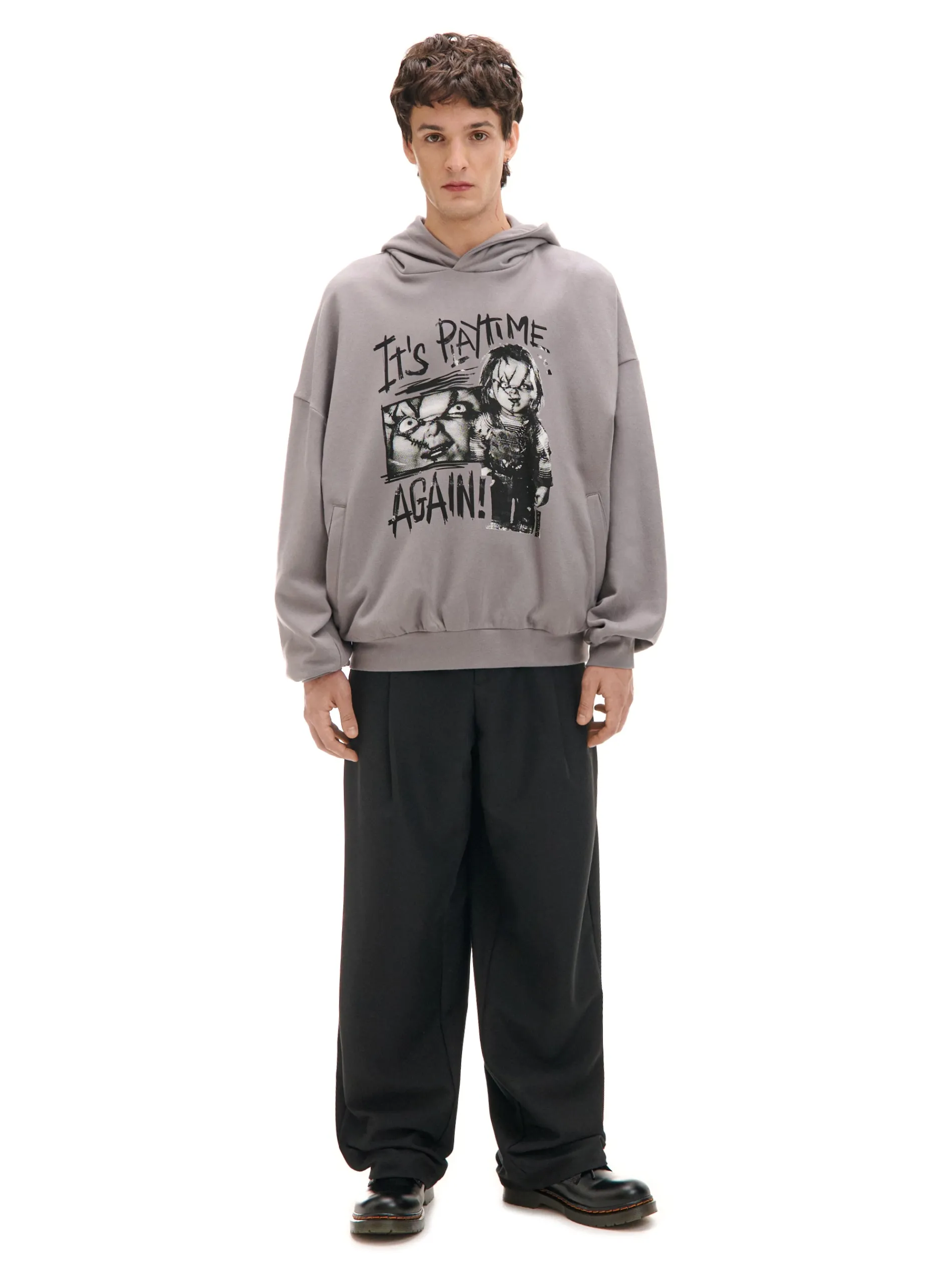 Laleczka Chucky chętnie pobawi się na imprezie halloweenowej. Męska bluza hoodie uszyta z miękkiej i trwałej mieszanki dzianin w jasnoszarym kolorze. Na przodzie licencjonowana grafika z tą creepy lalką. Łap ten item! dzianinowy materiał z bawełną obszerny krój boxy miękki kaptur długie rękawy z obniżoną linią ramion dwie kieszenie boczne dół i rękawy wykończone prążkowanym ściągaczem nadruk z motywem Halloween CHUCKY FRANCHISE © UNIVERSAL CITY STUDIOS LLC. ALL RIGHTS RESERVED