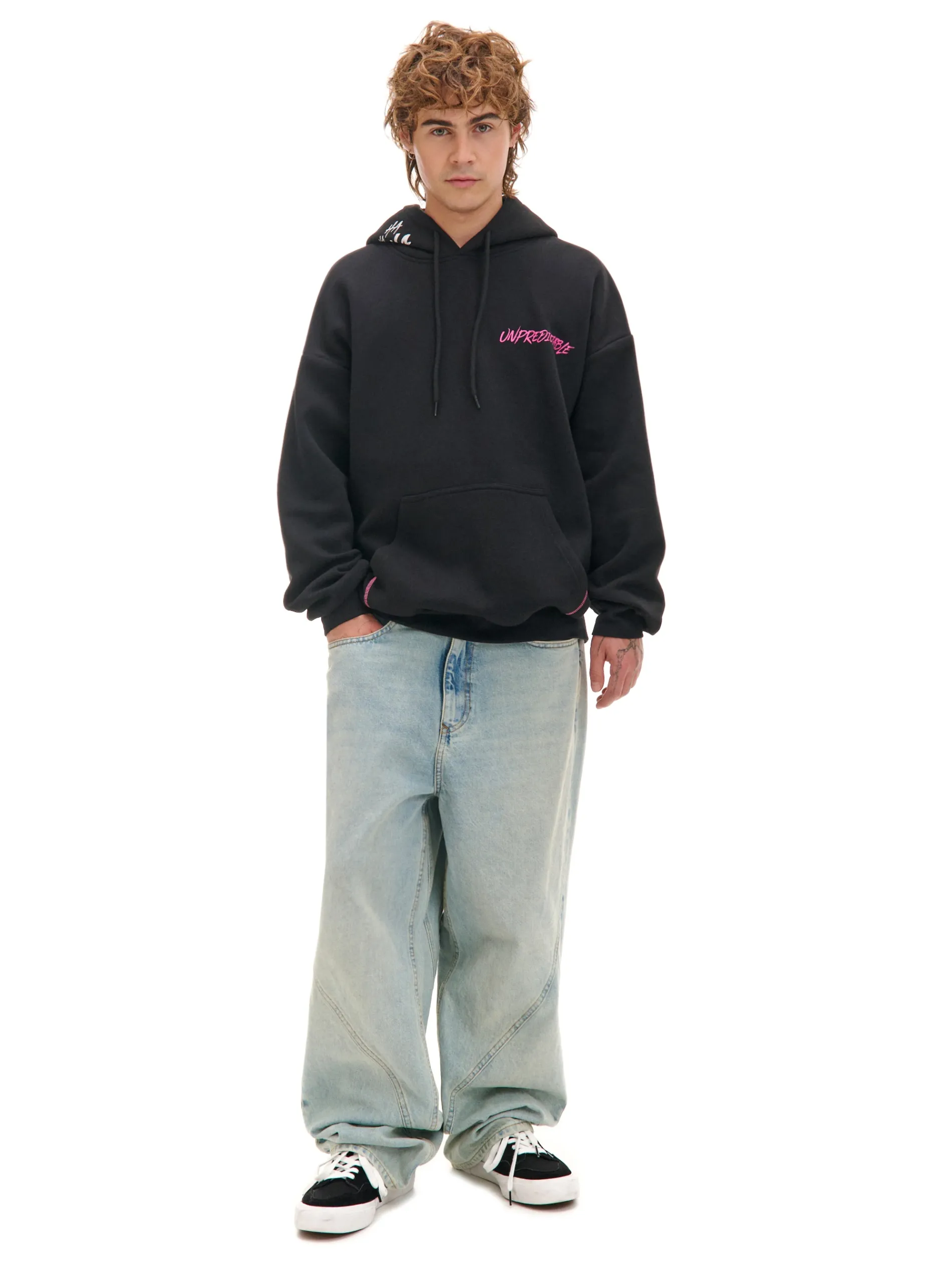 Męska bluza hoodie uszyta mieszanki dzianin z dodatkiem miękkiej bawełny. Wyposażona w tekstowe, licencjonowane nadruki na przodzie i kapturze oraz duży, kolorowy nadruk na plecach. „Przyprawiliśmy tej twarzy trochę uśmiechu” by Joker. dzianinowy materiał z bawełną swobodny, luźny krój miękki kaptur z troczkami długie rękawy z obniżoną linią ramion kieszeń kangurka na przodzie dół i rękawy wykończone prążkowanym ściągaczem nadruk z motywem filmowym z przodu i na plecach delikatny efekt sprania BATMAN and all related characters and elements © & TM DC. WB SHIELD: © & TM WBEI. (s24)