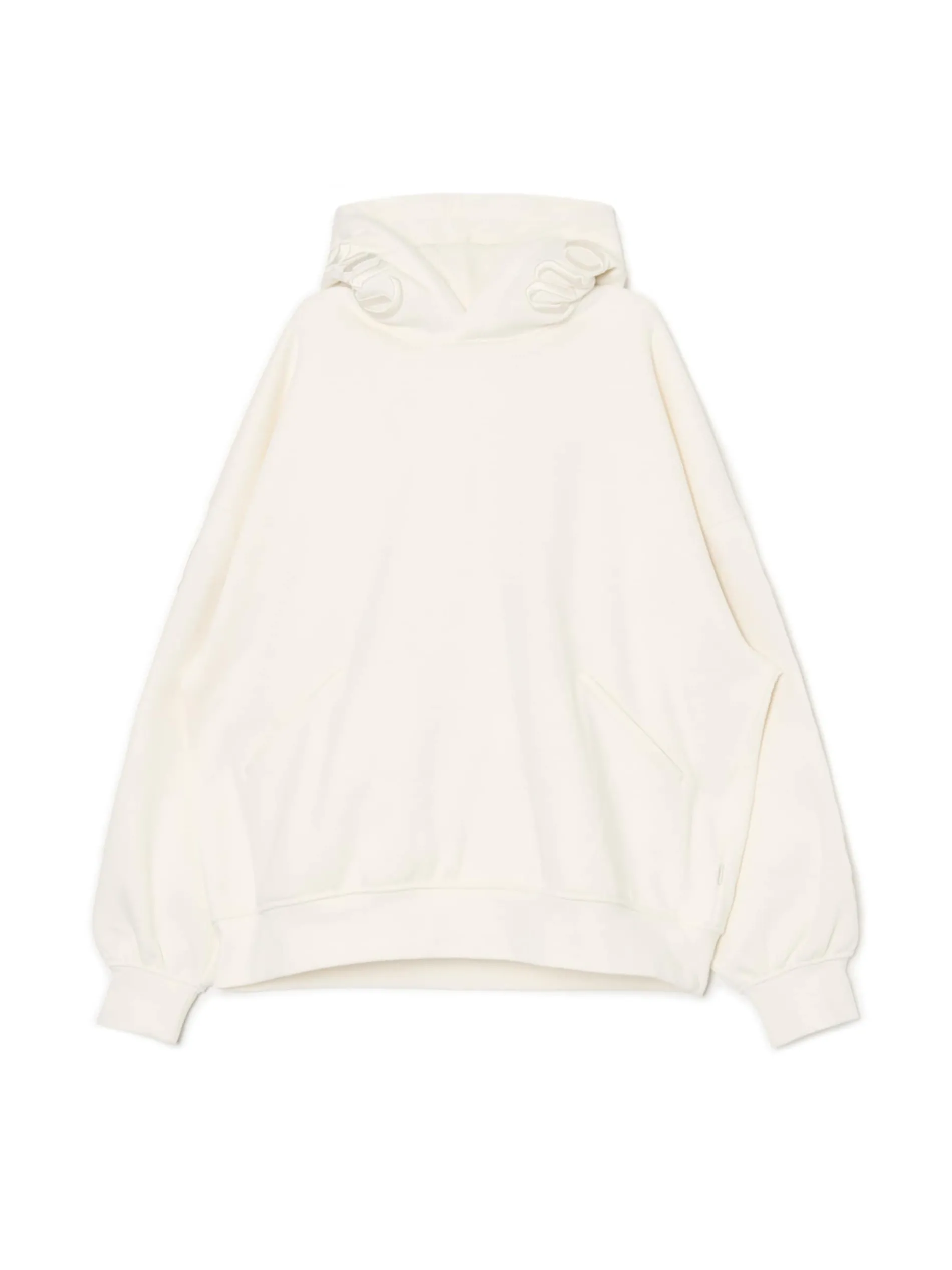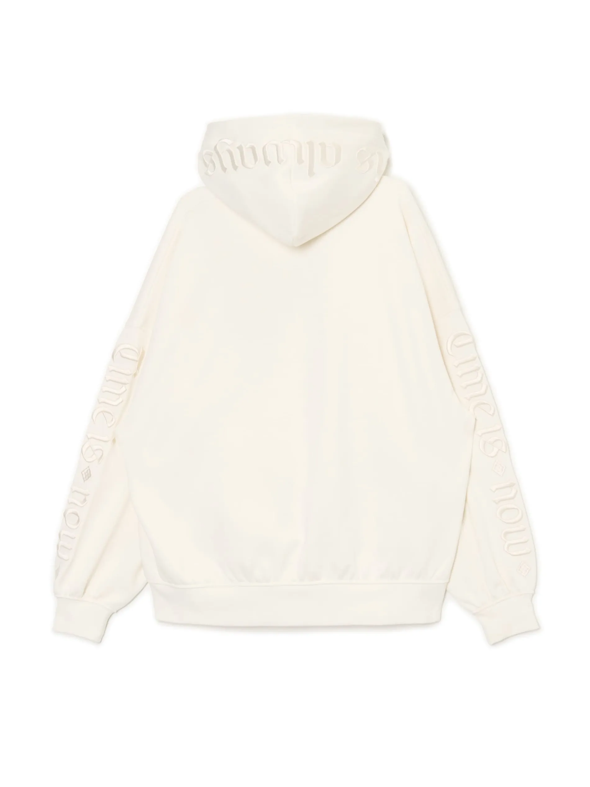 Męska bluza z kapturem uszyta z mieszanki dzianin z dodatkiem bawełny fleecy. Wyjątkowe w tym modelu są dekoracyjne hafty w formie napisów na rękawach i kapturze. uszyta z miękkiej dzianiny z bawełną obszerny krój boxy miękki kaptur dół i mankiety wykończone ściągaczami dwie kieszenie po bokach ozdobne naszywki na rękawach i kapturze