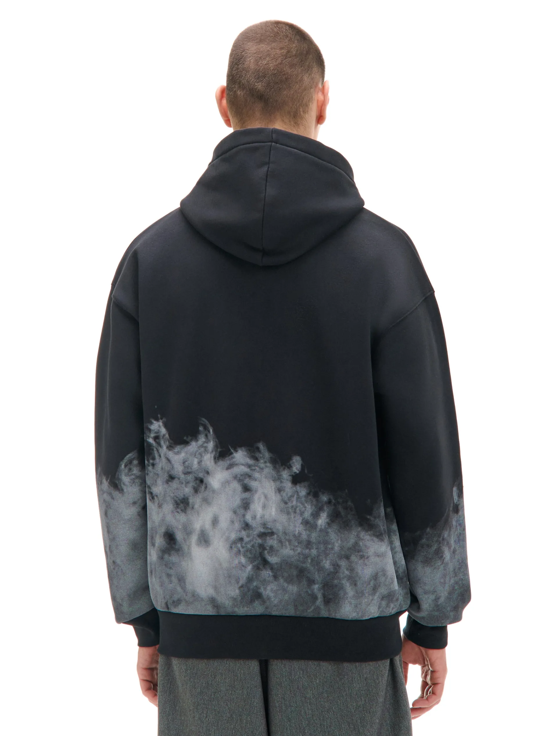 Męska bluza z kapturem uszyta z mieszanki dzianin z dodatkiem miękkiej bawełny fleecy. Ozdobna naszywka z przodu i oryginalny nadruk w formie dymu na całej powierzchni wyróżniają ten model. dzianinowy materiał z bawełną swobodny, luźny krój miękki kaptur dół i mankiety wykończone ściągaczami z przodu naszywka drobny nadruk all over