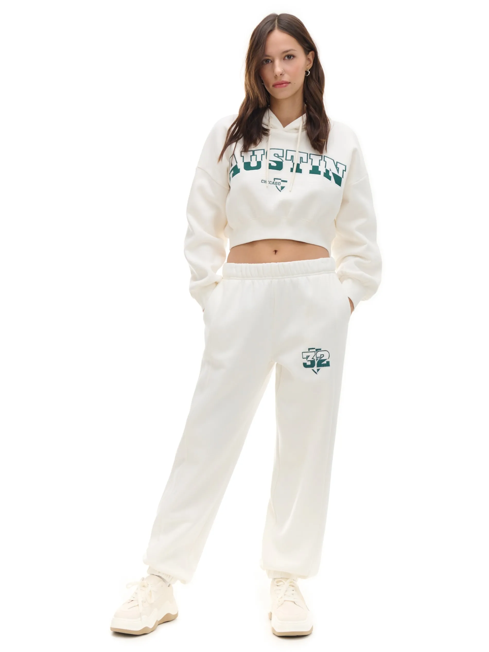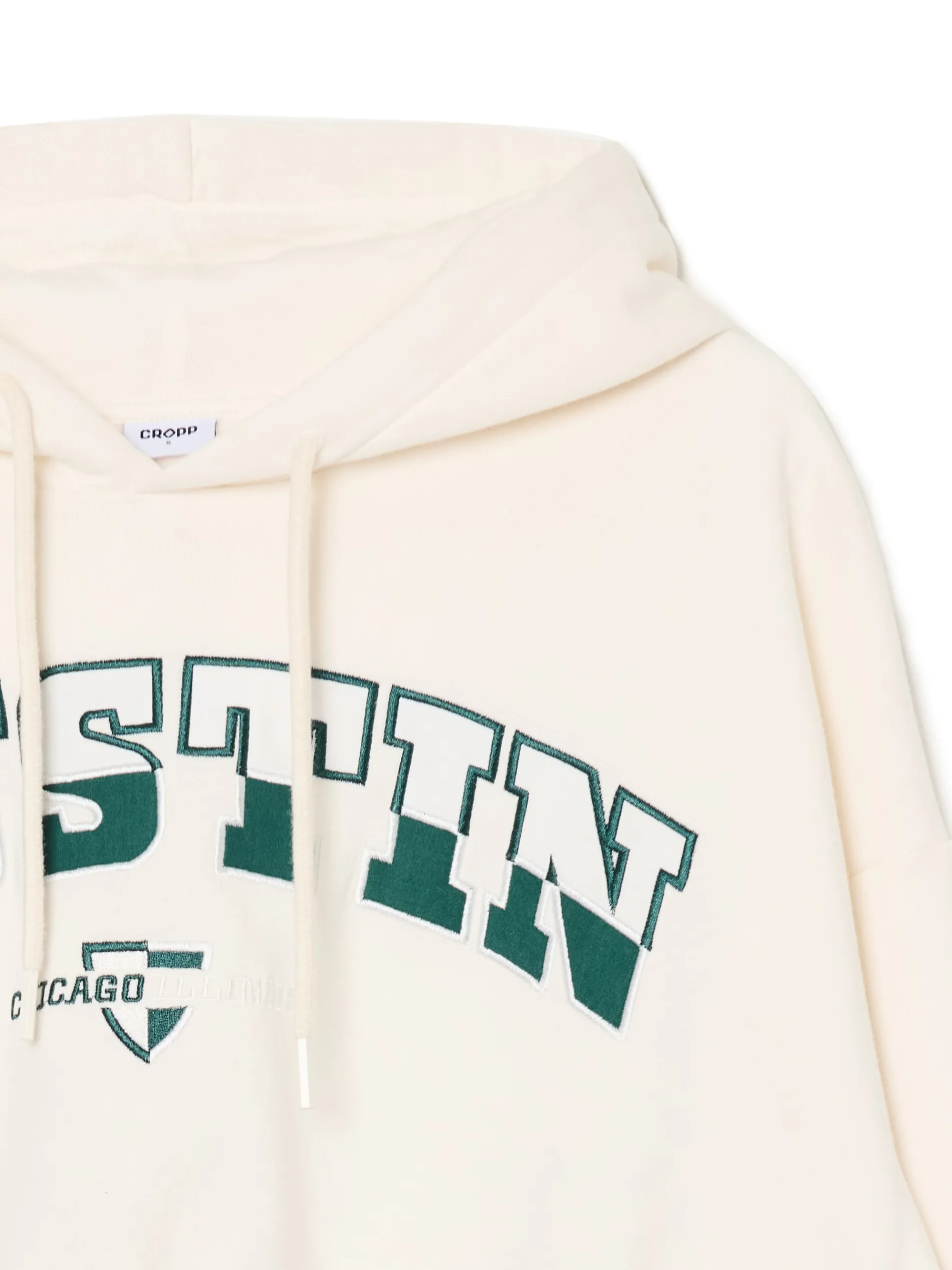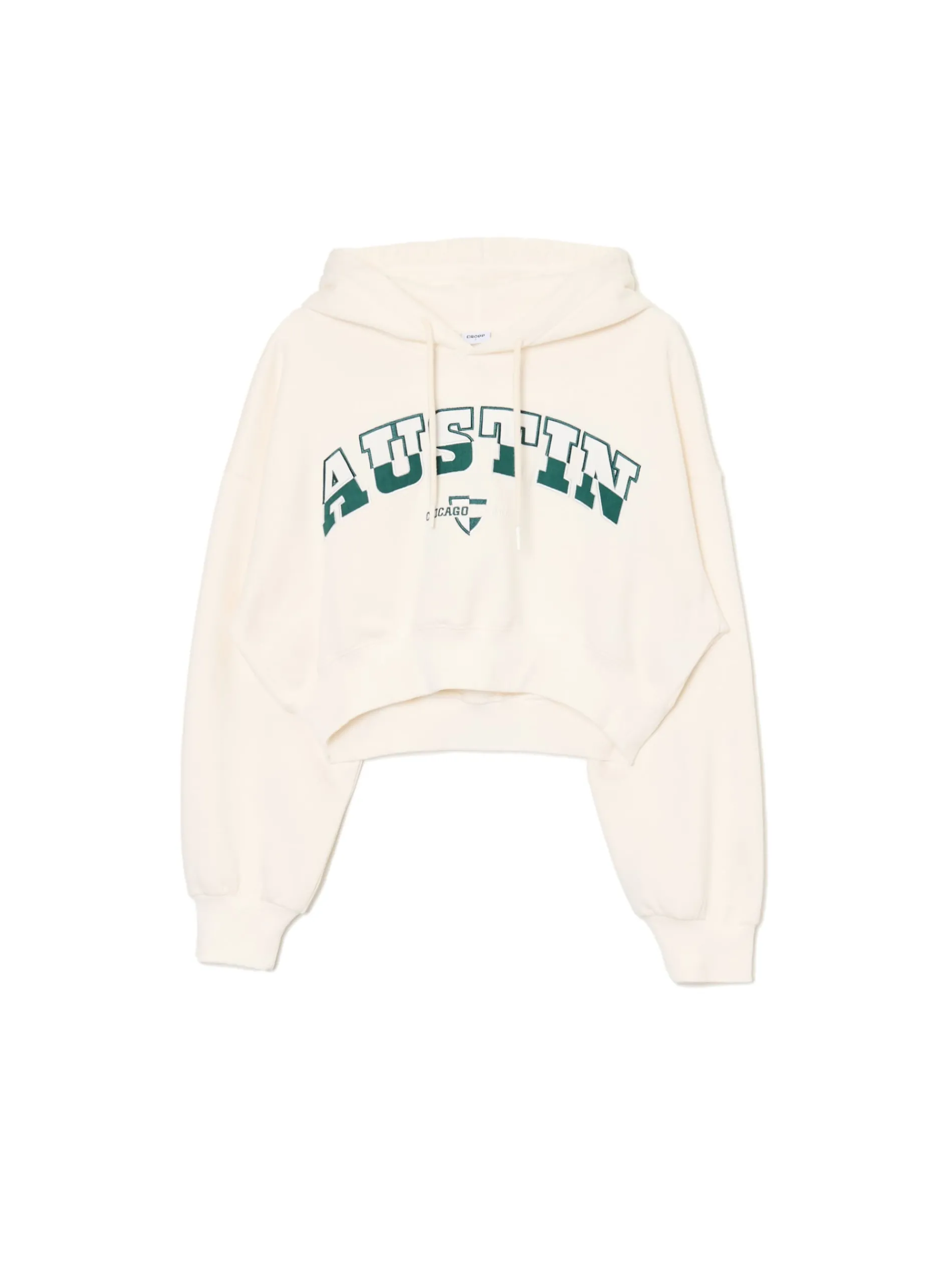 Kremowa damska bluza z kapturem, uszyta z miękkiego i trwałego materiału z dodatkiem bawełny fleecy. Wygodny, krótszy krój i wyraziste napisy na przodzie to wyróżniki tego modelu. dzianinowy materiał z bawełną krótki krój miękki kaptur z troczkami dół i rękawy wykończone ściągaczem z przodu nadruki tekstowe Tworzy zestaw z modelem 609AR-01X .