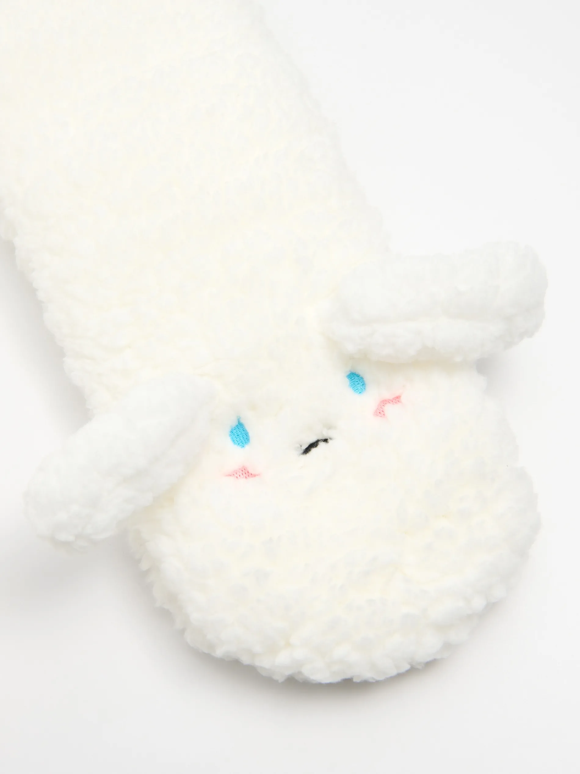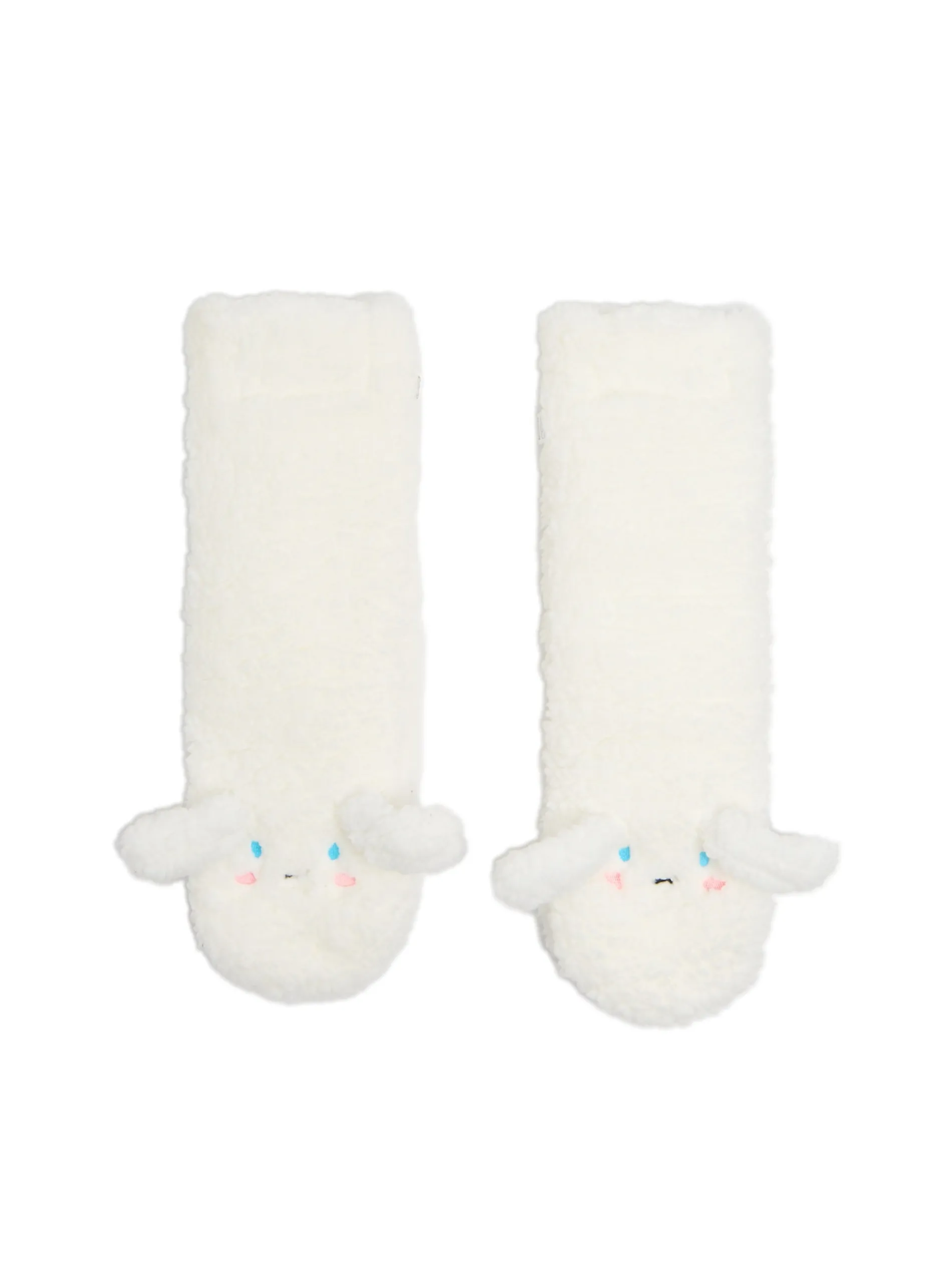 Rozwiązanie na zmęczone nogi po całym dniu – tylko te pluszowe skarpety! Uszyte z miękkiego w dotyku materiału, na spodzie z gumkami antypoślizgowymi. Ozdobny haft i uszka imitują uroczego pieska Cinnamoroll.