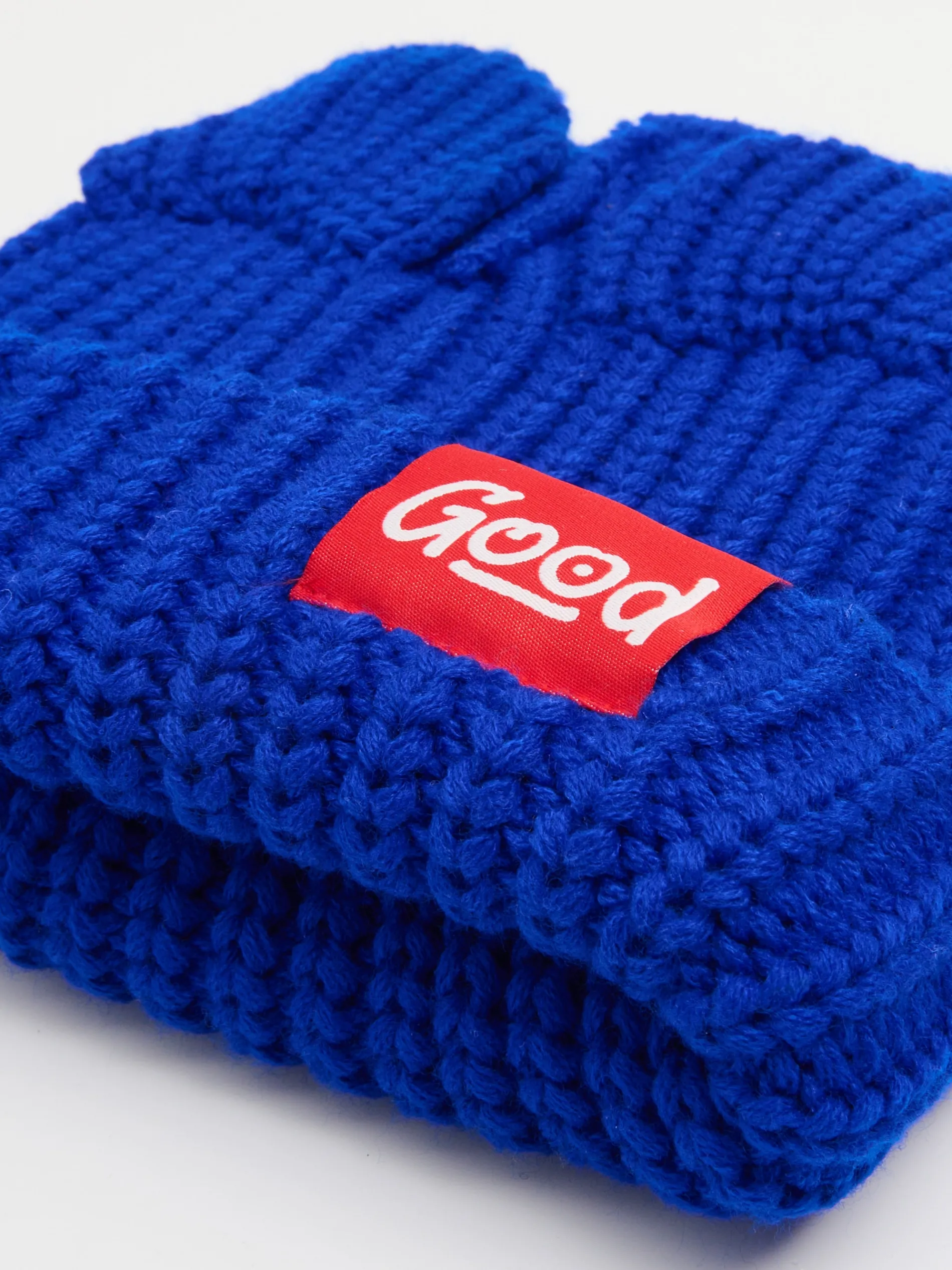 Męska czapka typu beanie na sezon zimowy, uszyta z miękkiej i przyjemnej w dotyku dzianiny w odcieniu niebieskiego. Ozdobą tego modelu jest naszywka z nadrukiem tekstowym i oryginalne kocie uszy. Mamy kilka tipów jak ją nosić: dla mężczyzn z krótkimi włosami – z mankietem lub bez i na całej powierzchni głowy dla mężczyzn z długimi włosami – bez mankietu i wysoko na czole dla mężczyzn z kręconymi włosami – z mankietem lub bez i wysoko na czubku głowy