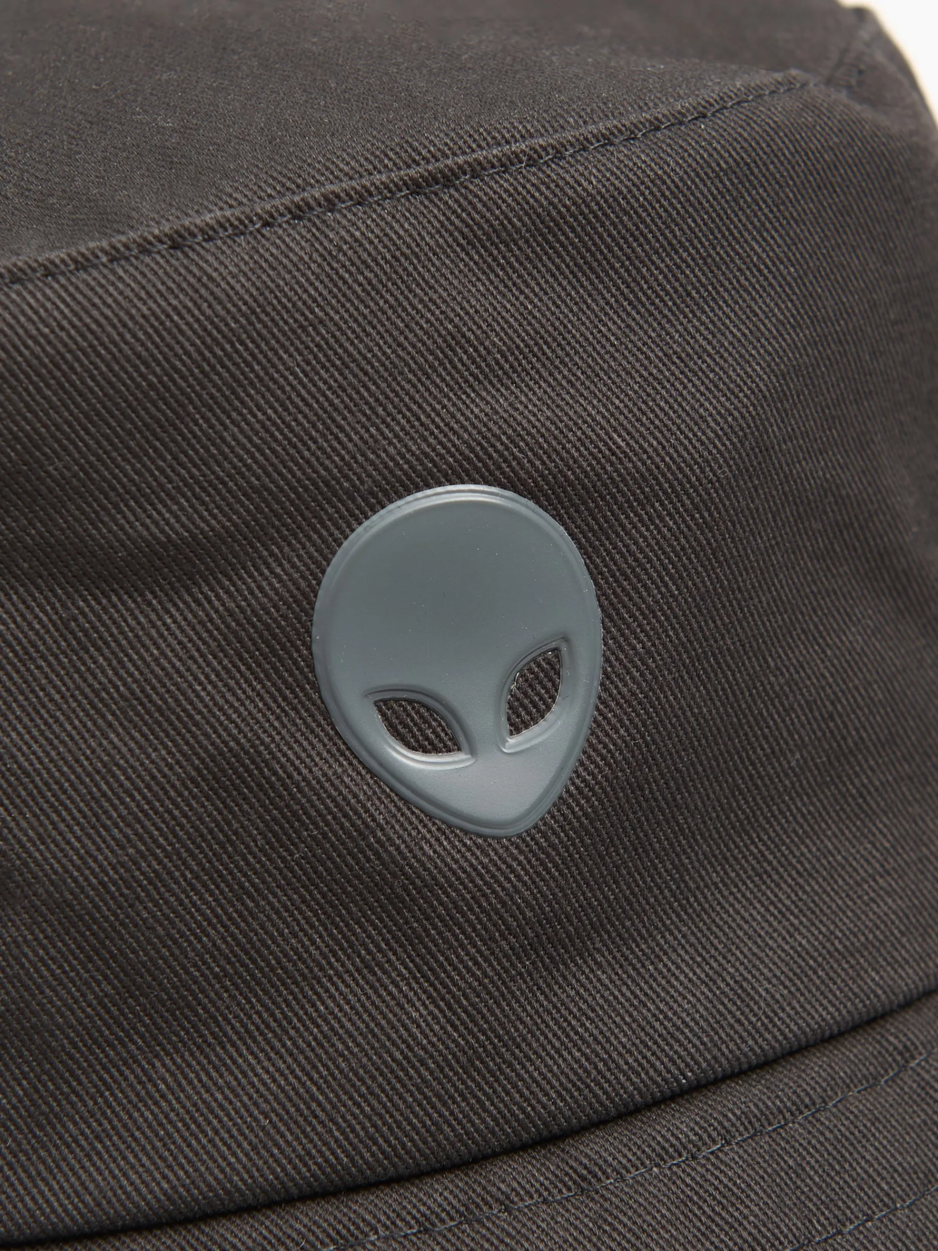 Męski kapelusz typu bucket hat, uszyty w 100% z bawełny. Z przodu naszywka w kształcie głowy kosmity. Idealny dla fanów cywilizcji pozaziemskich.