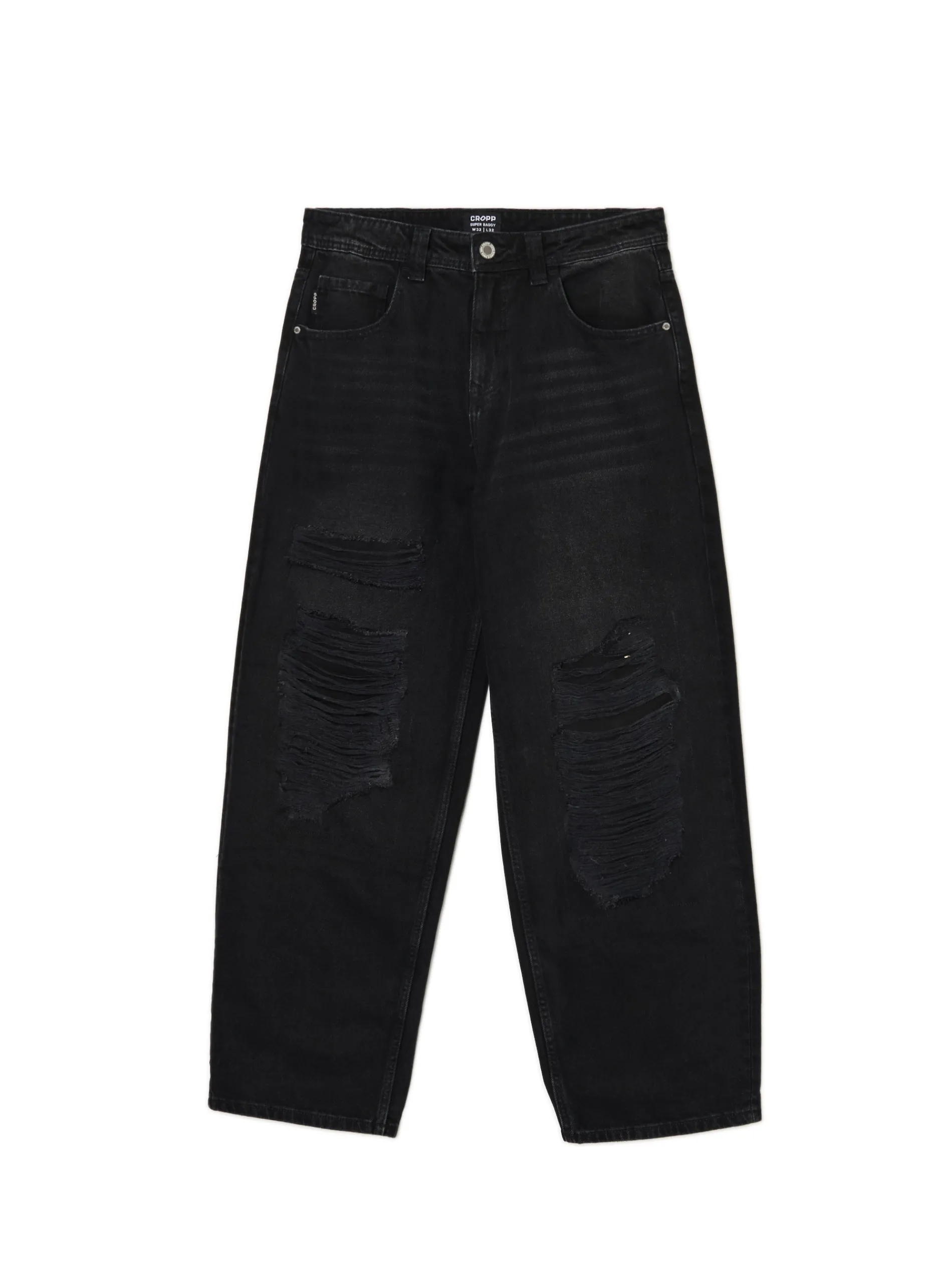 Męskie spodnie jeansowe typu super baggy. Super szerokie, super wygodne, super streetowe – materiał z efektem sprania, a na nogawkach dekoracyjne dziury i postrzępienia. Jeden klik i do koszyka! 100% bawełny obszerny krój super baggy zapięcie na zamek i guzik długie, szerokie rękawy cztery kieszenie jedna mała kieszeń na drobniaki szlufki na pasek efekt sprania na całości przetarcia, dziury i postrzępienia