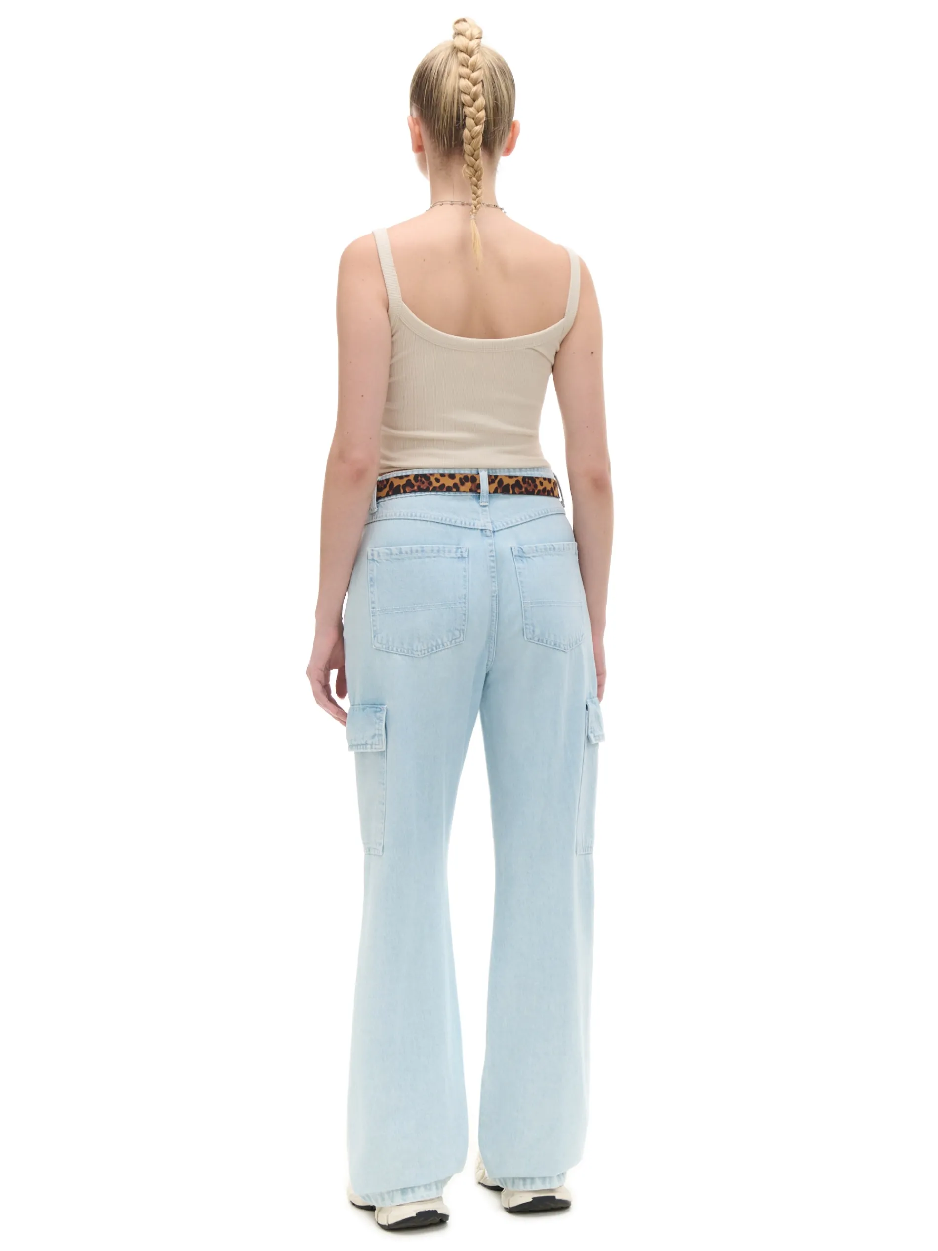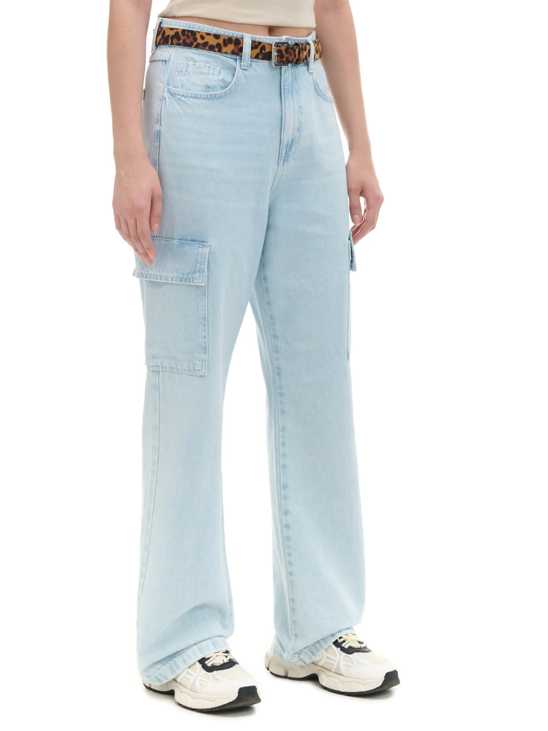 Damskie spodnie jeansowe uszyte z bawełnianej tkaniny. Szerokie nogawki, praktyczne kieszenie i szlufki blisko siebie – praktyczne rozwiązanie na pasek lub zmęczone ręce po całym dniu. 100% bawełny obszerny krój baggy zapięcie na zamek i guzik długie, szerokie nogawki pięć kieszeni dodatkowe kieszenie cargo na nogawkach efekt sprania Potrzebna Ci wersja petite? Jest tu: 745AQ-05J .