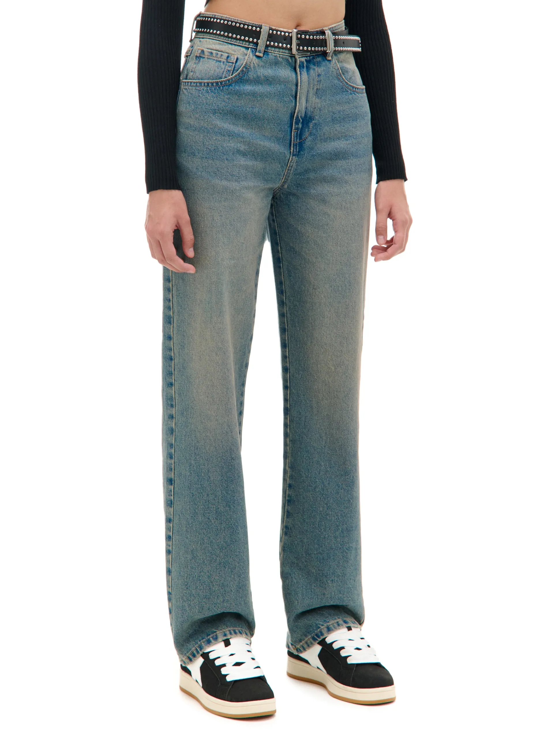Spodnie damskie jeansowe o kroju straight, uszyte z bawełny. Wysoki stan, zapięcie na zamek i guzik, 5 kieszeni, prosta nogawka, czyli klasyk na każdą okazję! 100% bawełny prosty krój wysoki stan podkreślający talię zapięcie na zamek i guzik szlufki na pasek pięć kieszeni delikatny efekt sprania Potrzebna Ci wersja petite? Jest tu: 746AQ-50X . Szukasz wersji tall? Kliknij tutaj: 749AQ-50X .