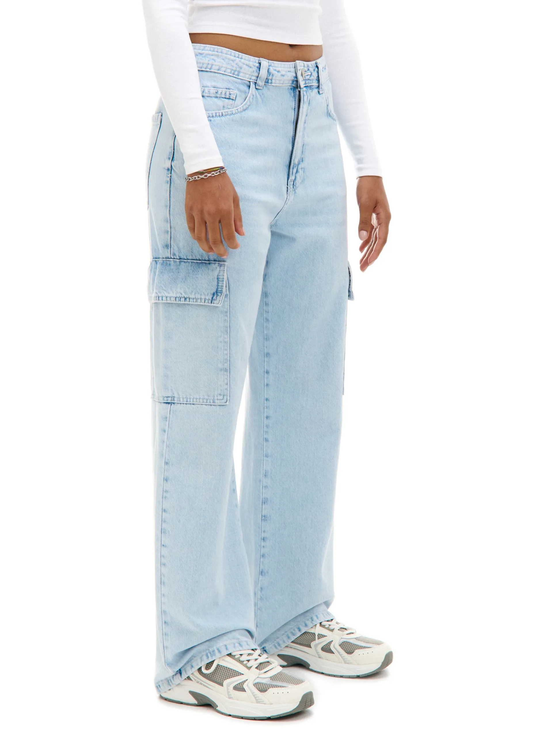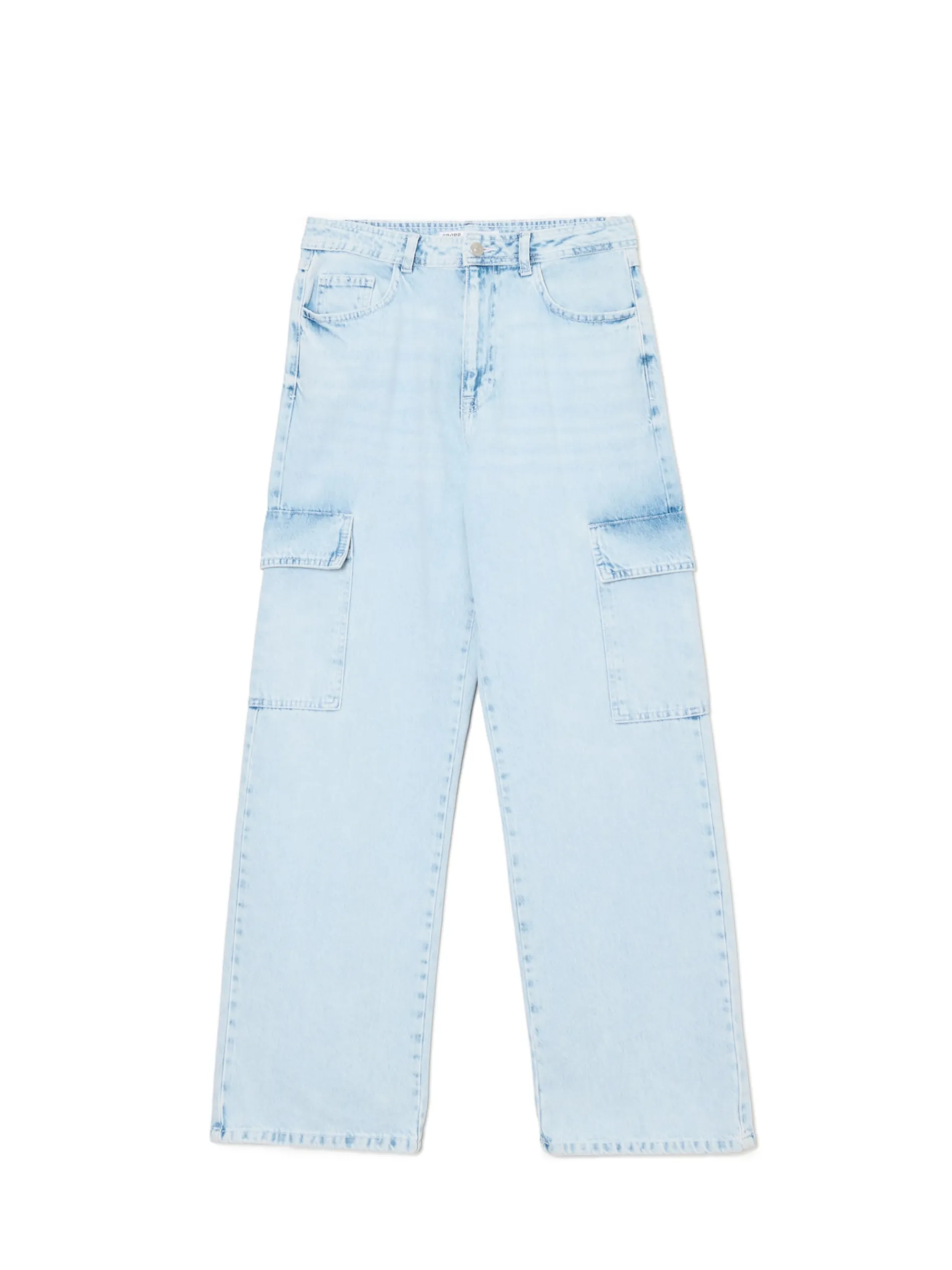 Damskie spodnie jeansowe o kroju baggy, uszyte z bawełnianej tkaniny z delikatnym efektem sprania. Luźne i wygodne, sprawdź! 100% bawełny obszerny krój baggy model petite – odpowiedni dla niższych osób zapięcie na zamek i guzik długie, szerokie nogawki pięć kieszeni dodatkowe kieszenie cargo na nogawkach szlufki na pasek delikatny efekt sprania Czekasz na wersję regular? Już jest: 733AQ-05J .