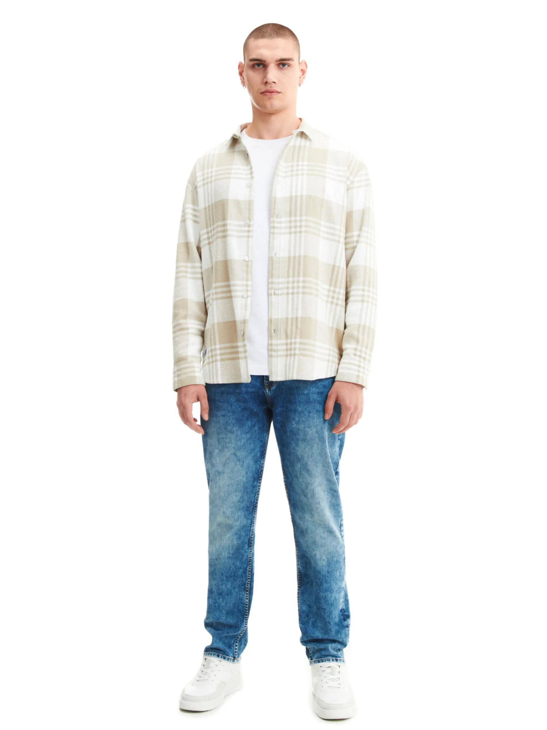 Męskie spodnie jeansowe, uszyte z tkaniny o bardzo wysokiej zawartości bawełny. krój regular regularny stan, zapięcie na zamek i guzik prosta nogawka pięć kieszeni delikatny efekt sprania materiału