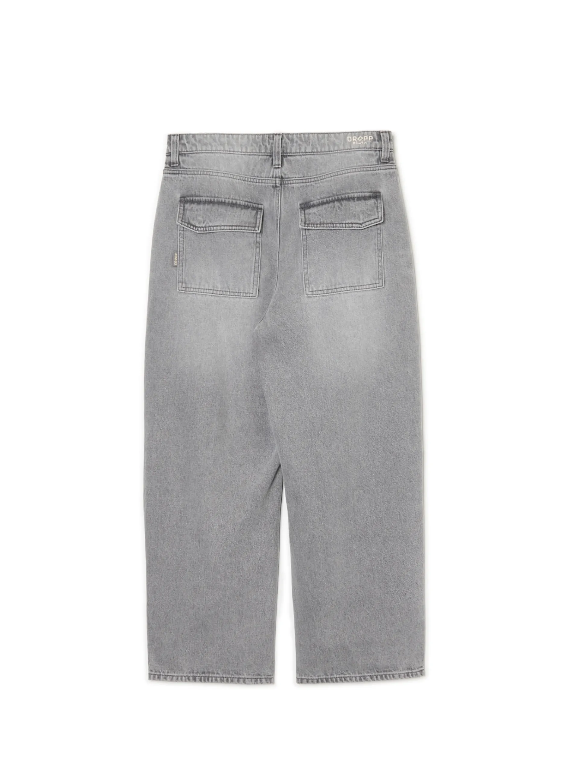 Denimowe męskie spodnie o kroju skater. Fason charakteryzuje się mocno obniżonym krokiem i bardzo szeroką nogawką. Byle było luźno! 100% bawełny obszerny krój baggy zapięcie na zamek i guzik długie, szerokie nogawki skośne kieszenie z przodu dwie kieszenie z patkami i zapięciem na zatrzaski ozdobne zakładki efekt sprania na całości