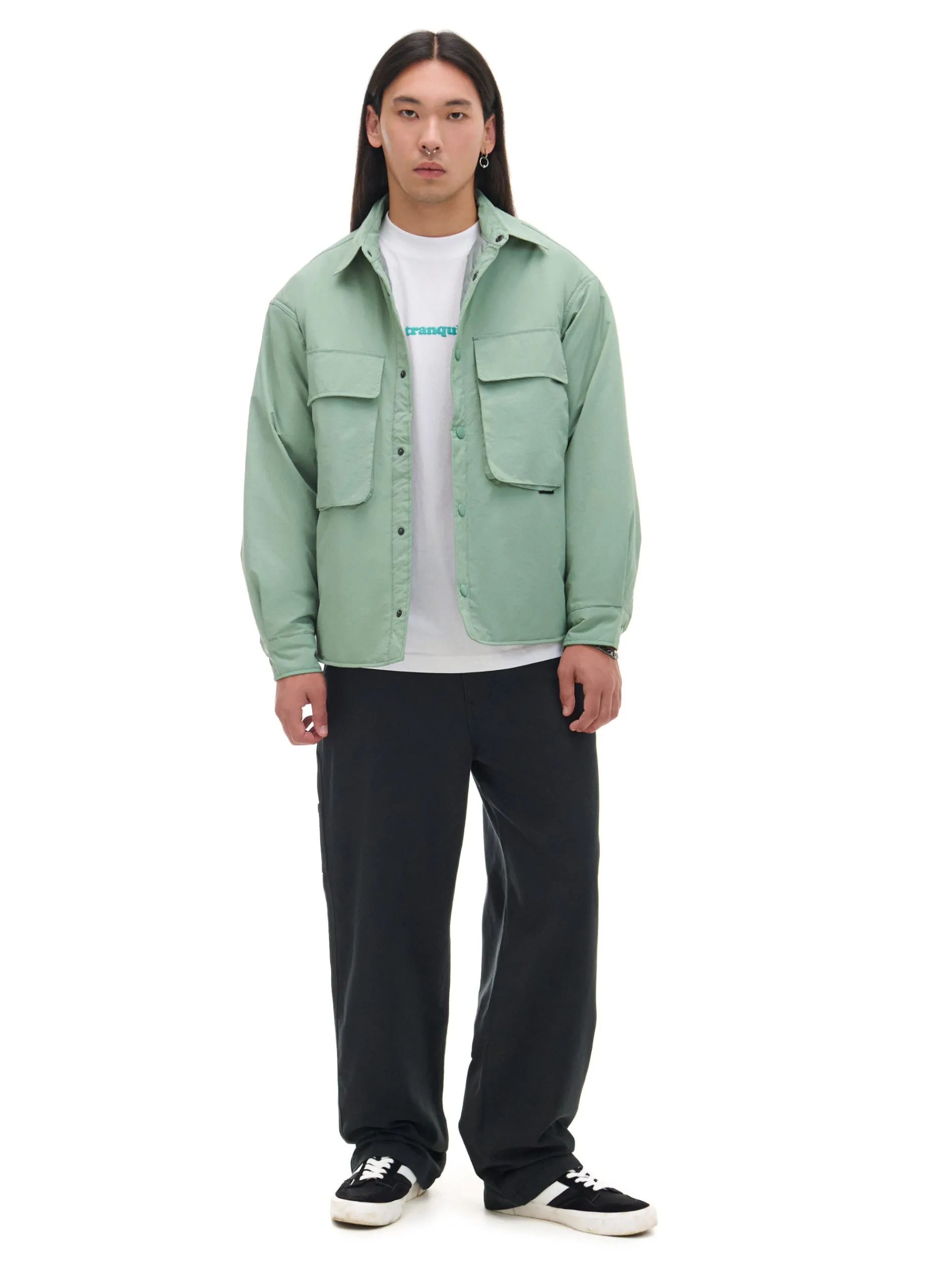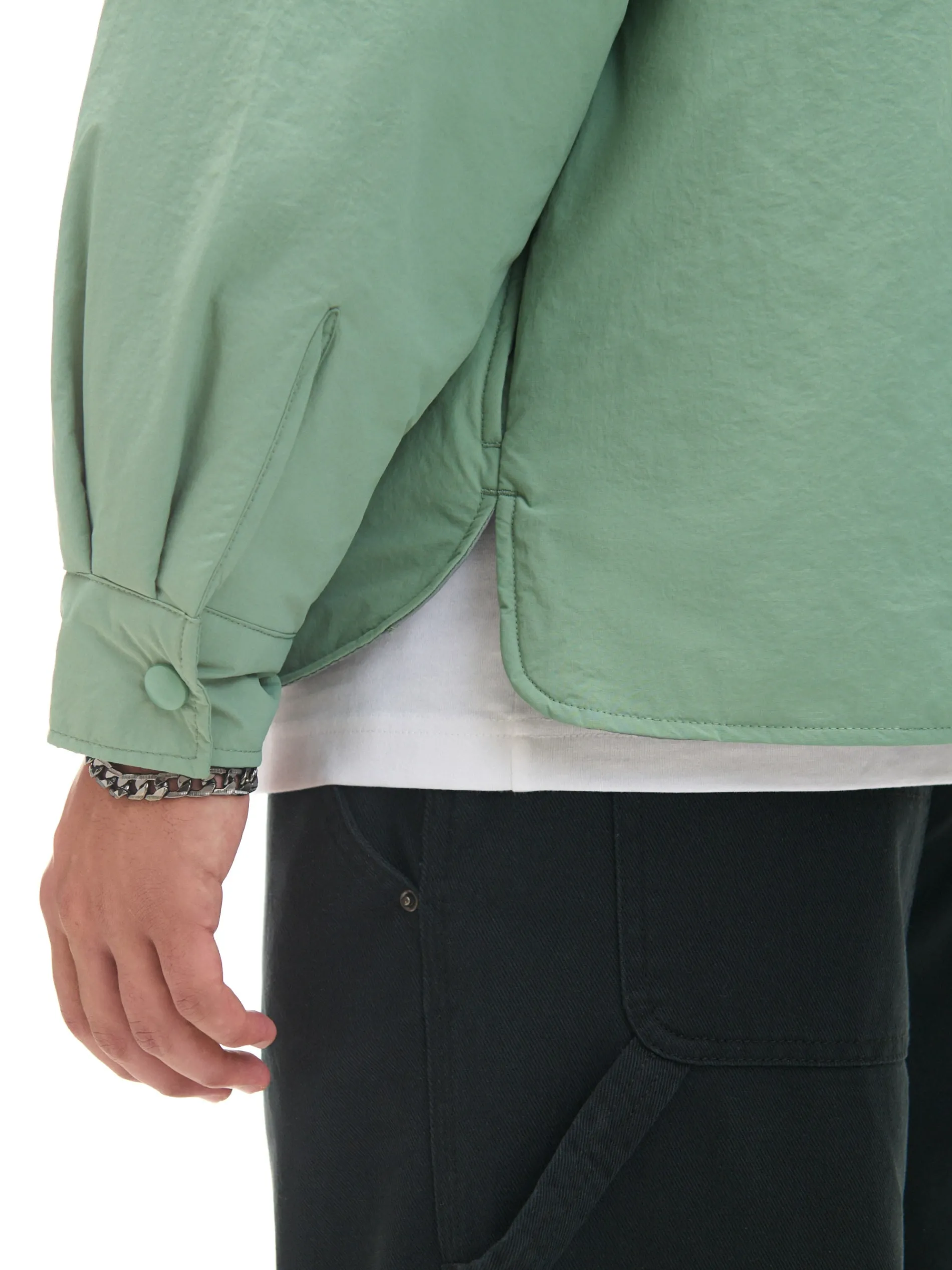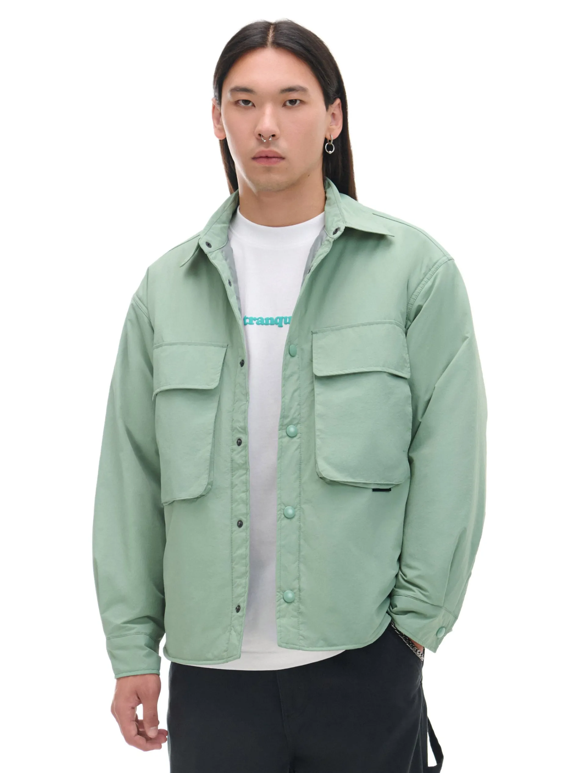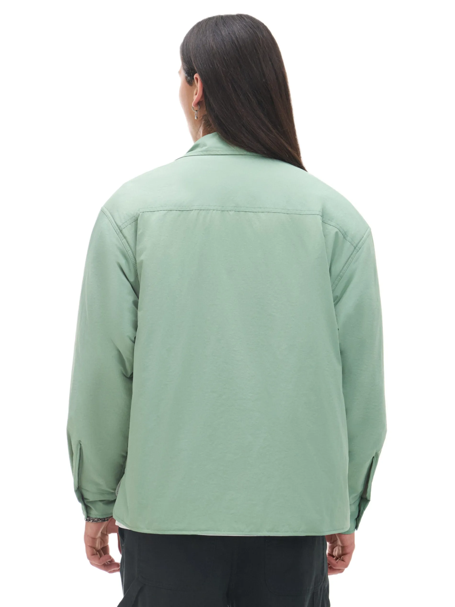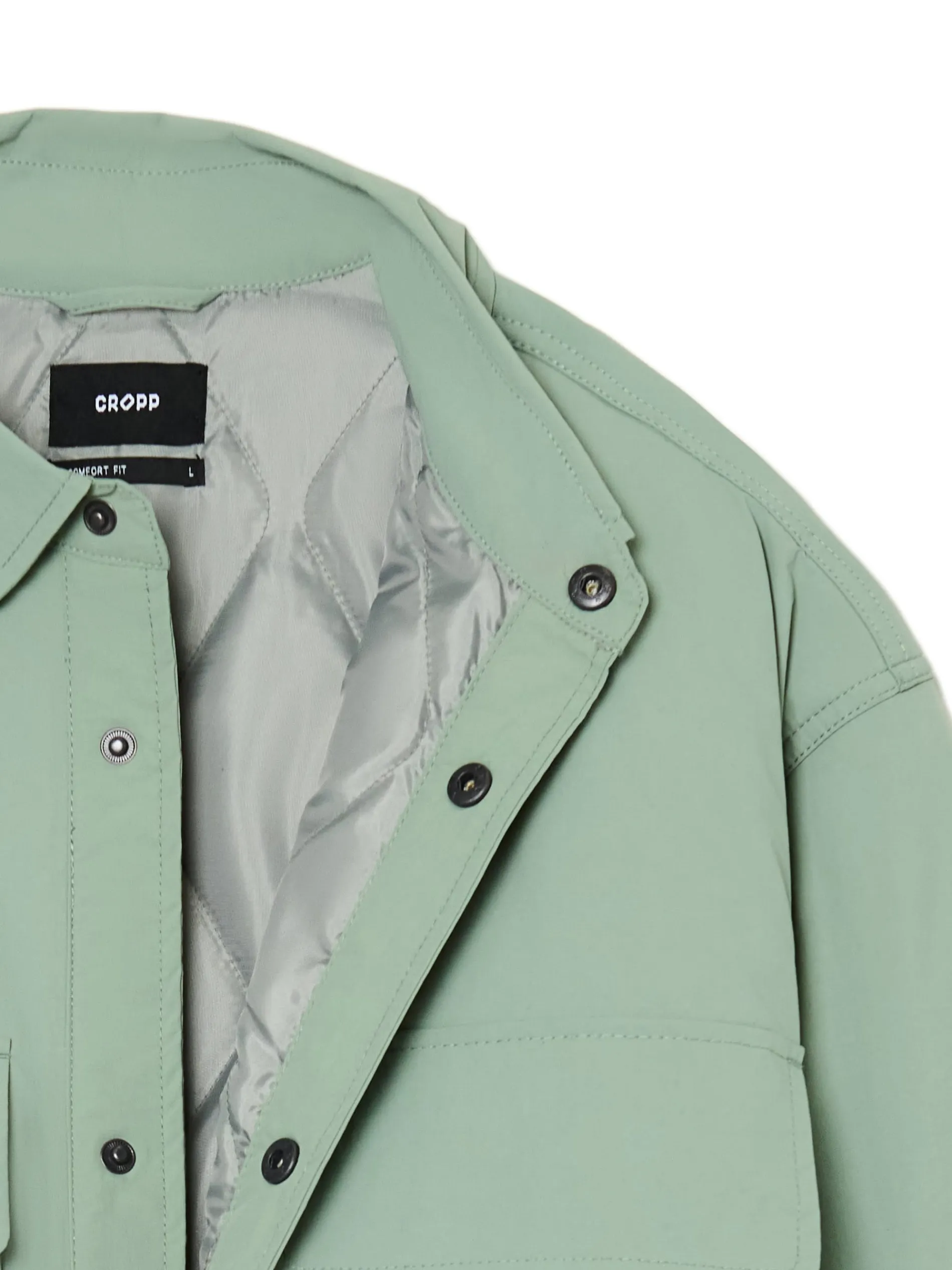 Gładka męska koszula o kroju comfort, uszyta z trwałej, marszczonej tkaniny. Posiada delikatnie ocieplaną, pikowaną podszewkę w ciekawym wzorze. Dodatkowo genialne rozwiązanie z 6 kieszeniami w jednym modelu – 2 podwójne na piersi i 2 w bocznych szwach. wewnątrz pikowana podszewka lekkie ocieplenie zapinana na zatrzaski na całej długości klasyczny kołnierzyk długie rękawy z zatrzaskami przy mankietach 6 kieszeni, w tym kieszenie cargo dwie duże naszywane kieszenie okryte patkami otwarte kieszenie po bokach
