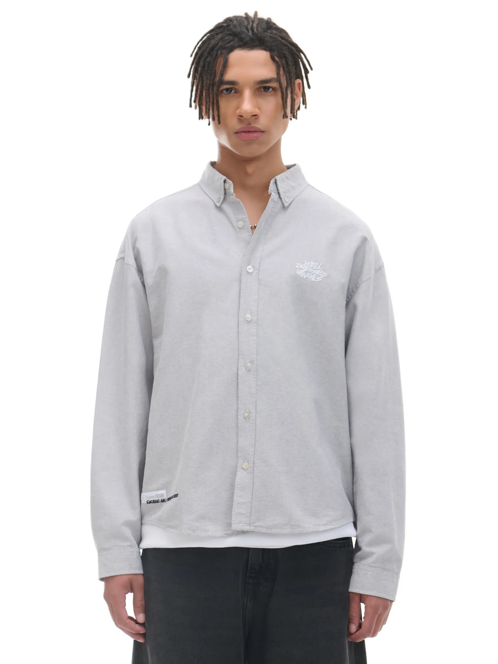 Gładka męska koszula o kroju comfort z kołnierzykiem, uszyta z bawełnianej tkaniny typu oxford. Ozdobne nadruki i naszywki nadają jej casualowego stylu. 100% bawełny wygodny krój comfort jednorzędowe zapięcie na guziki klasyczny kołnierzyk długie rękawy zakończone mankietem z guzikami ozdobne naszywki i nadruki