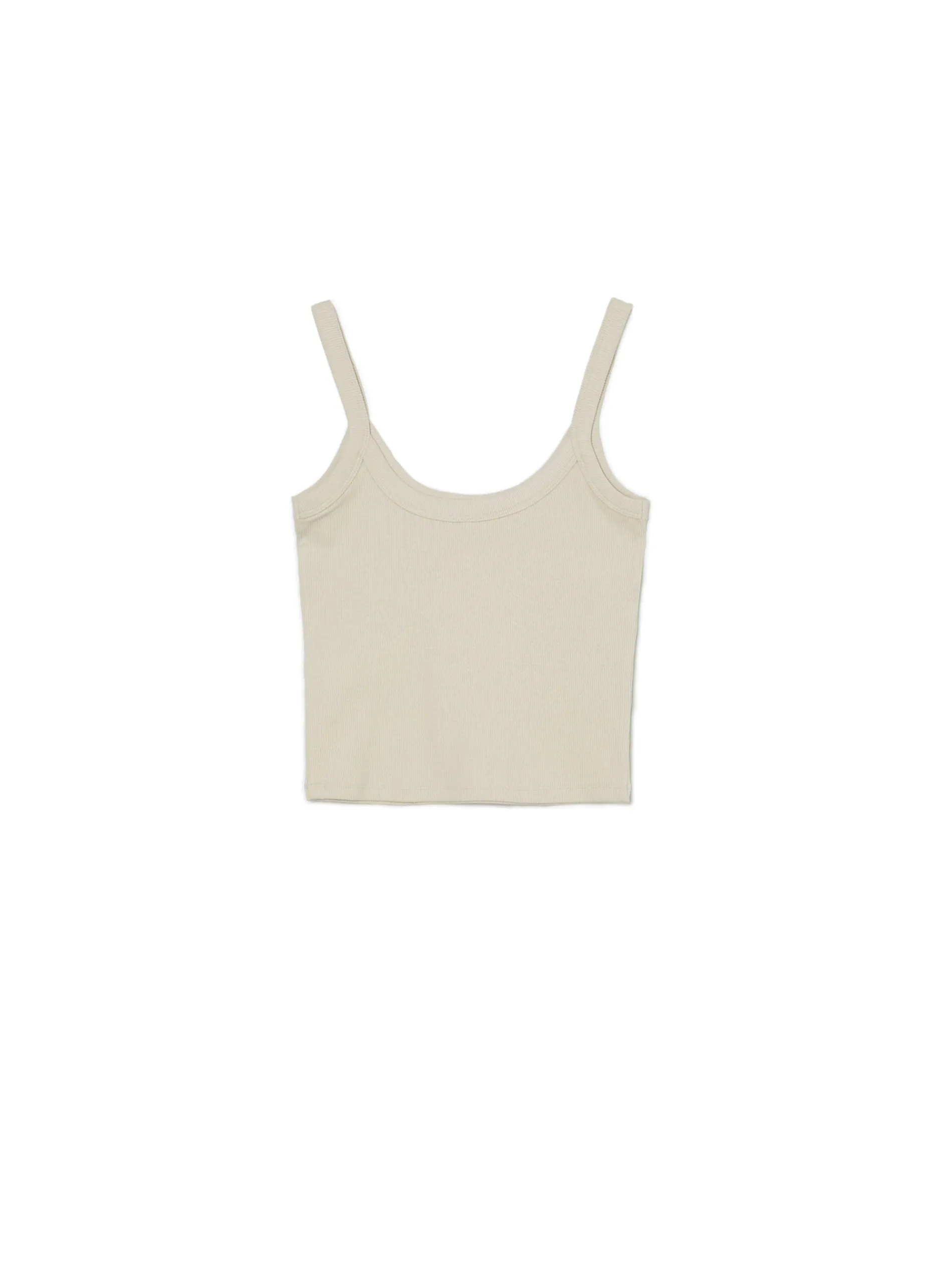 Damski top w stonowanym, gładkim kolorze na ramiączkach. Ta prążkowana dzianina o dopasowanym kroju podkreśli Twoją sylwetkę! elastyczna, prążkowana dzianina koszulka typu basic cienkie ramiączka okrągły dekolt z lamówką dostępne inne warianty kolorystyczne Wzrost modelki: 172 cm
