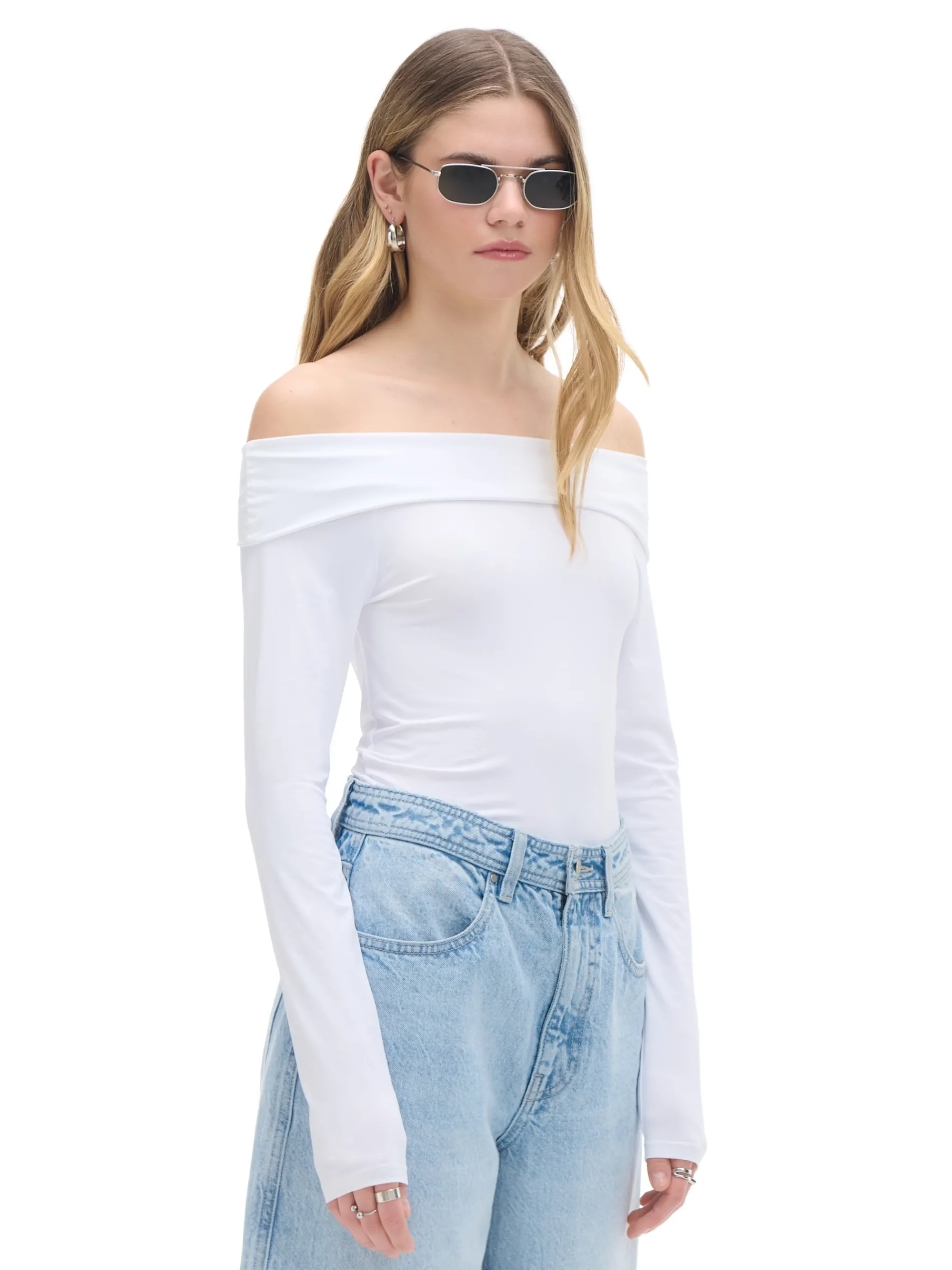 Damska bluzka typu carmen z długimi rękawami uszyta z mieszanki tkanin. Długie, wygodne rękawy i oryginalna, szeroka zakładka przy dekolcie to hity tego modelu! dzianina z dodatkiem elastycznych włókien dopasowany krój podkreślający sylwetkę dekolt typu carmen długie rękawy z obniżoną linią ramion wyraźnie zaznaczone ramiona szalowy kołnierz