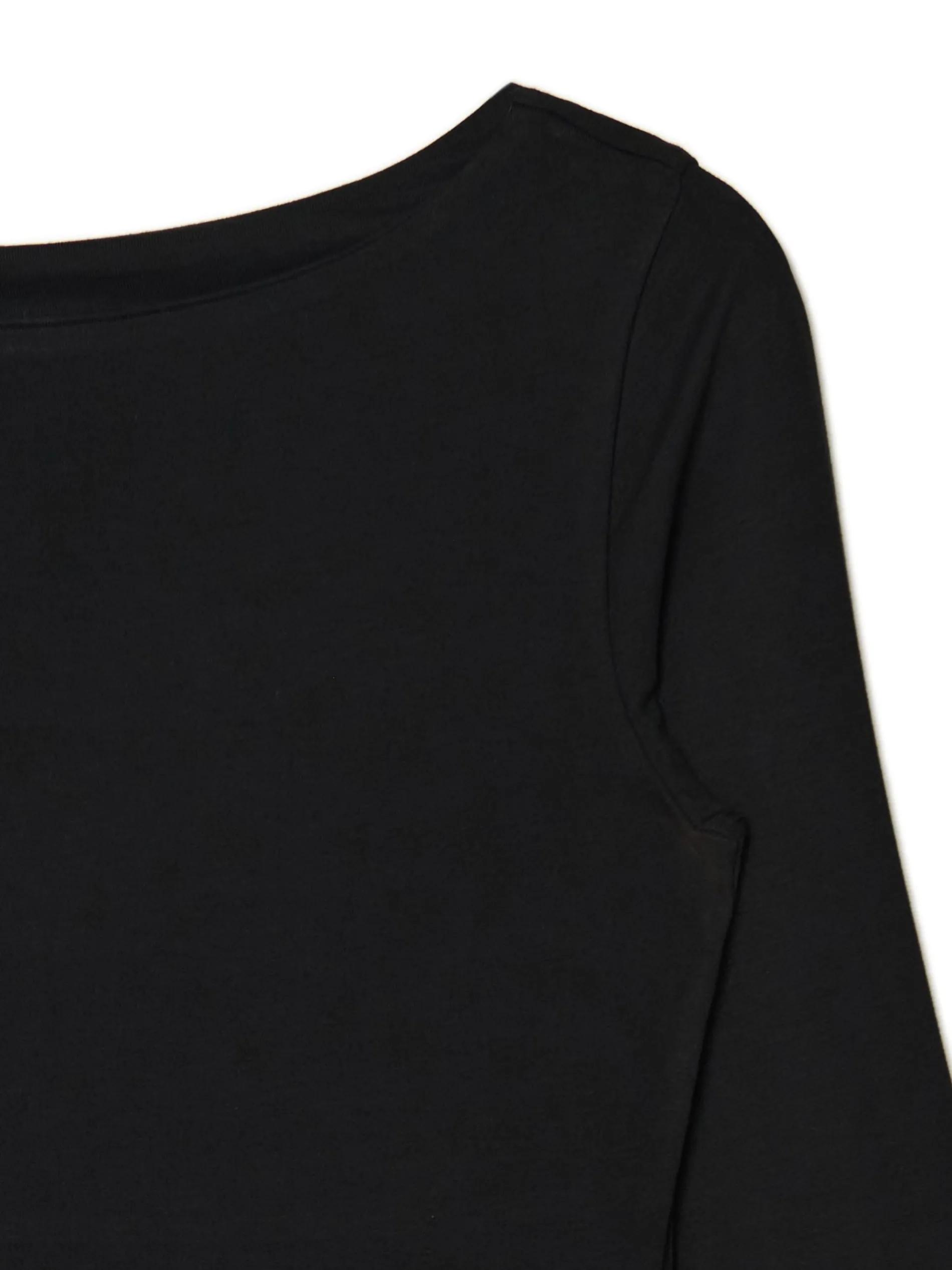Damska bluzka z długimi rękawami o krótszym, dopasowanym fasonie z dekoltem w łódkę. Idealny item na chłodniejsze wieczory. wiskoza z domieszką elastycznych włókien dopasowany krój podkreślający sylwetkę dekolt w łódkę długie, dopasowane rękawy Wzrost modelki: 177 cm